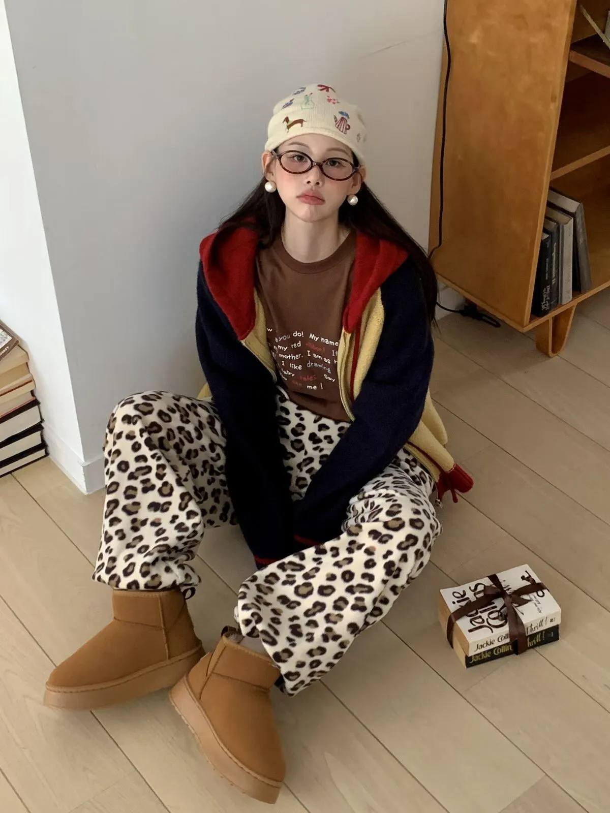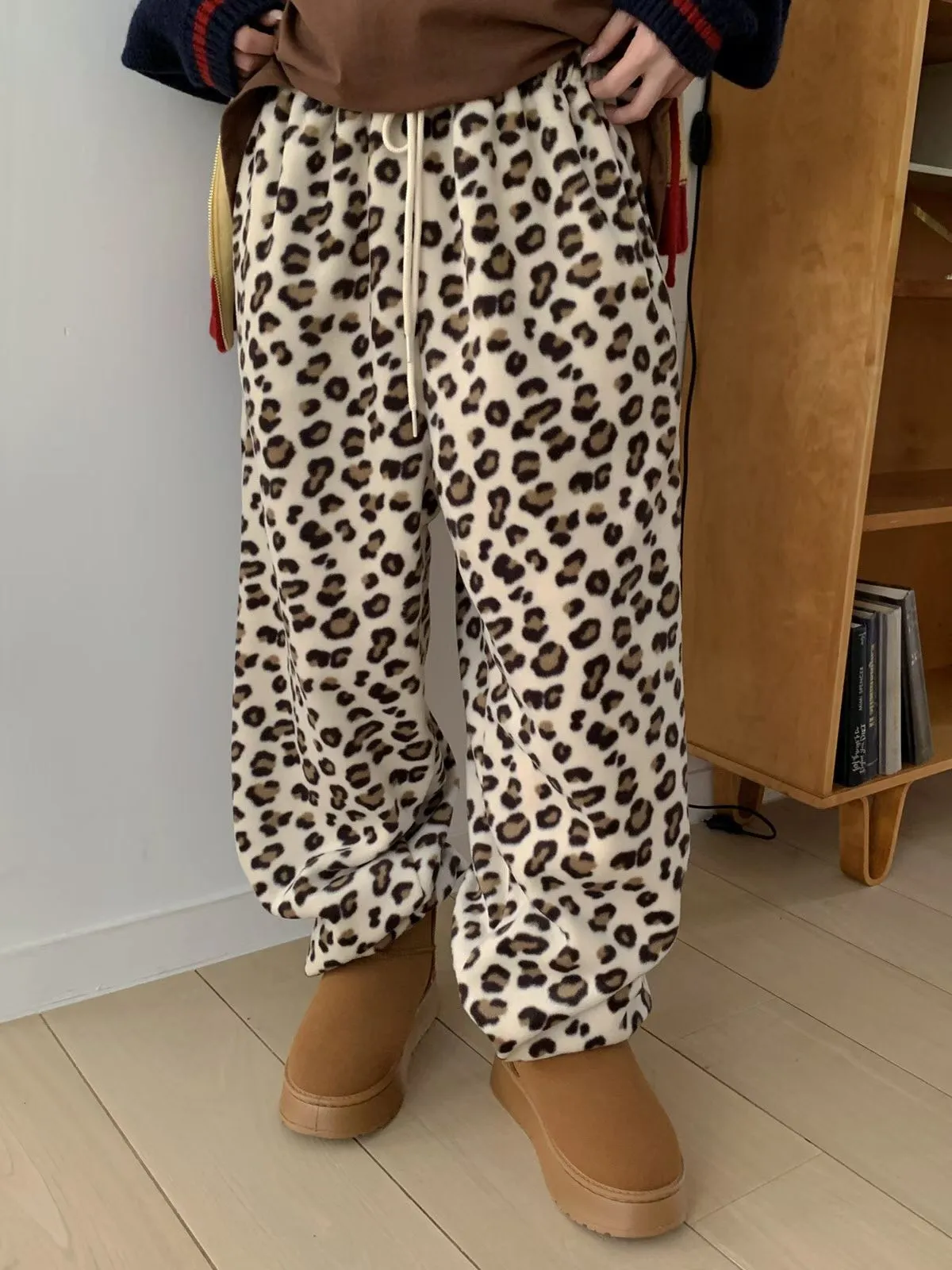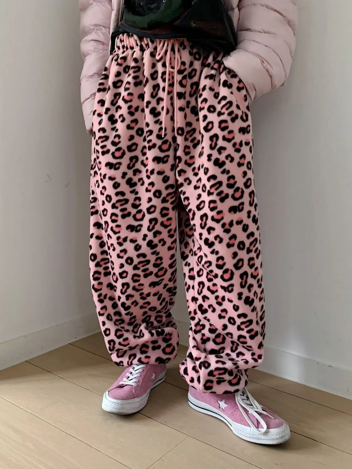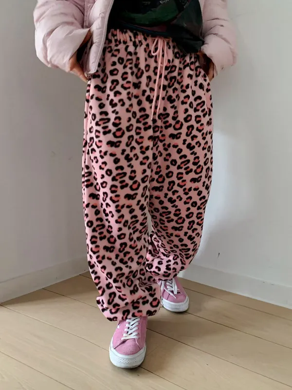 25LE22 壓縮雙面絨豹紋縮口棉長褲 3色