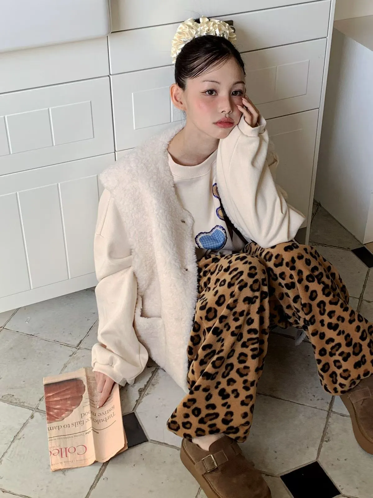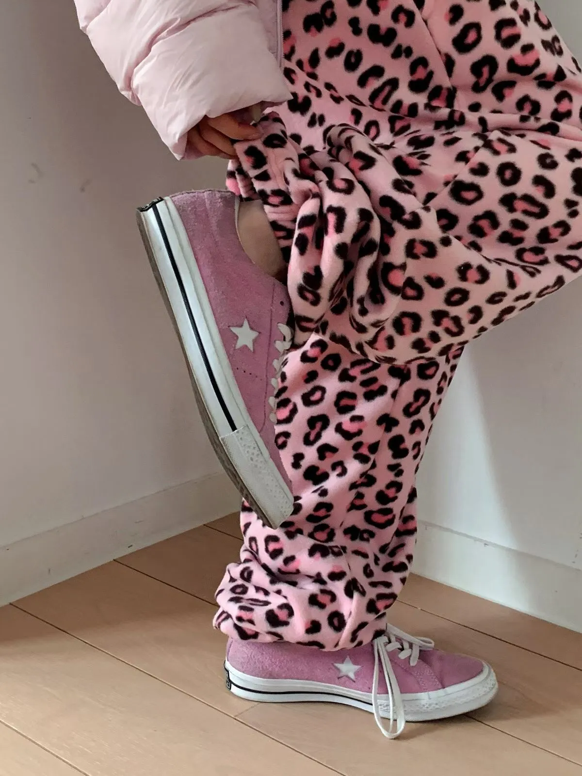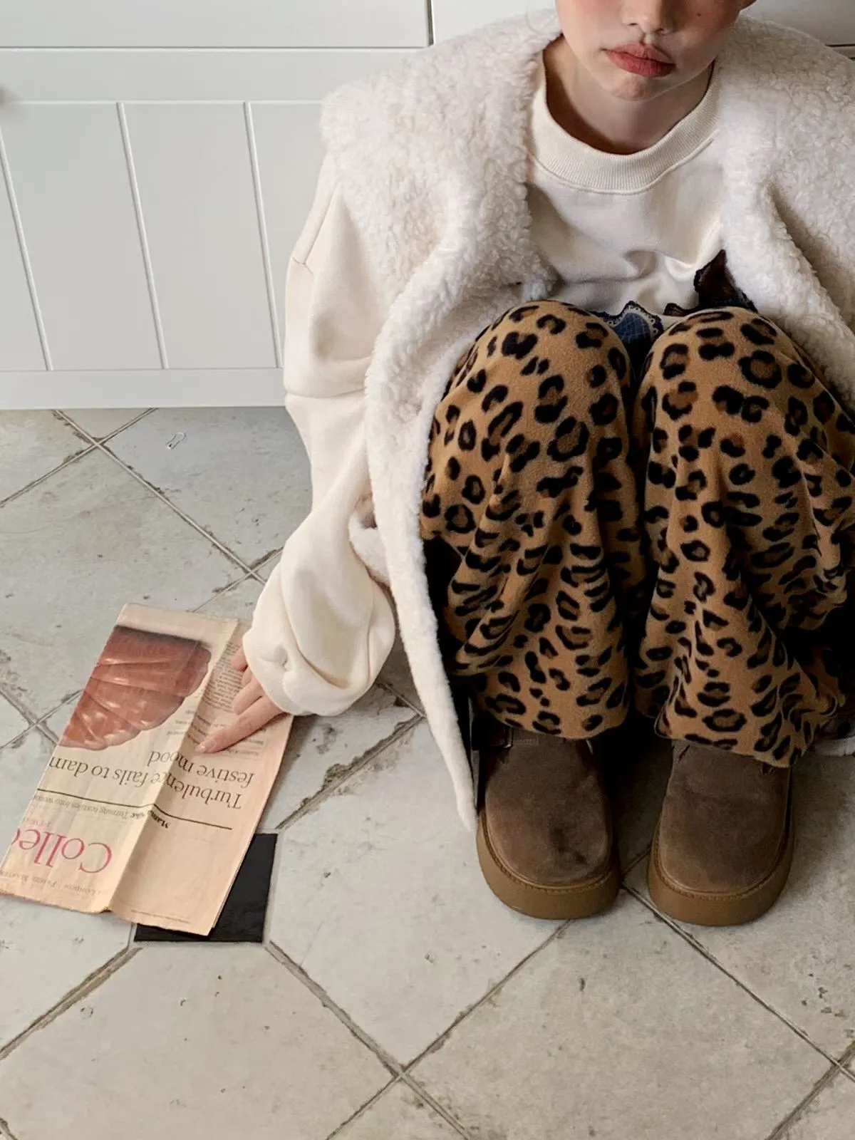 25LE22 壓縮雙面絨豹紋縮口棉長褲 3色