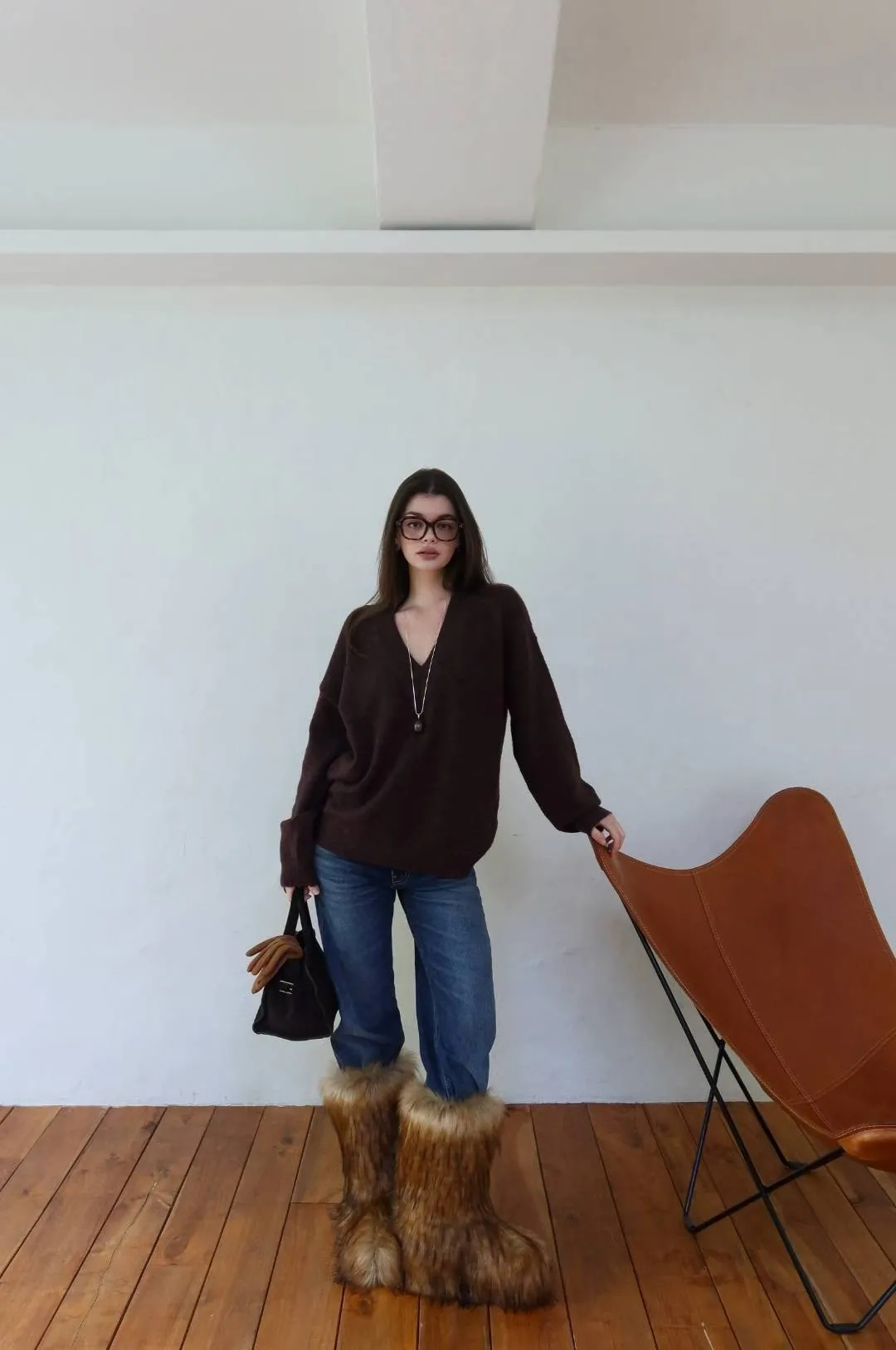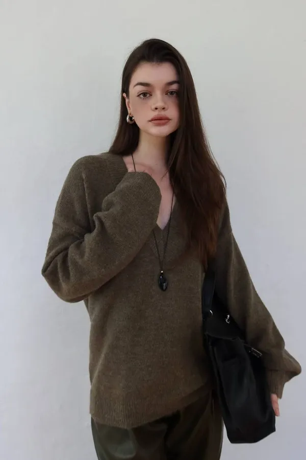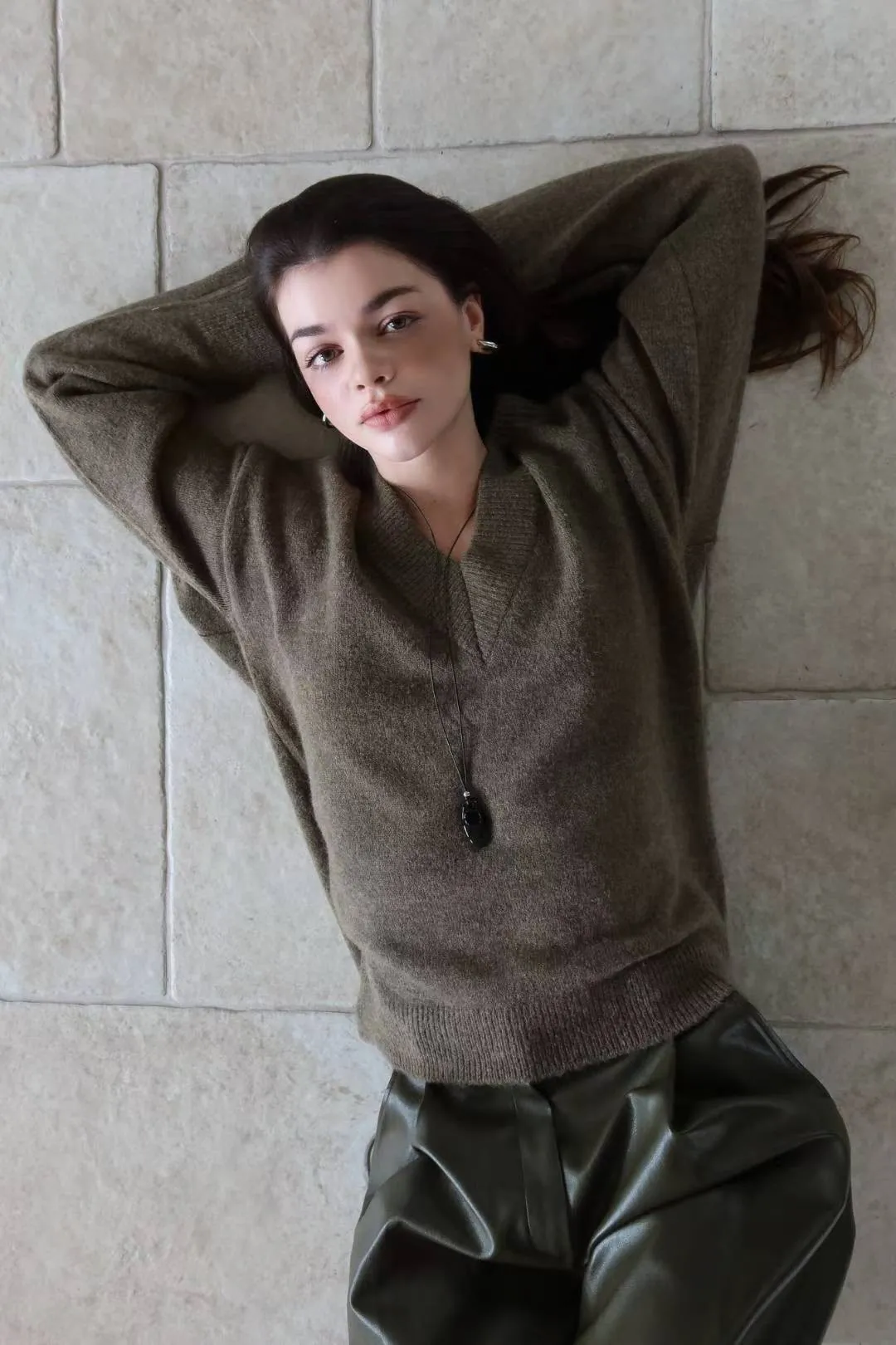 25LF01 嬰兒羊駝V領素針織毛衣 4色