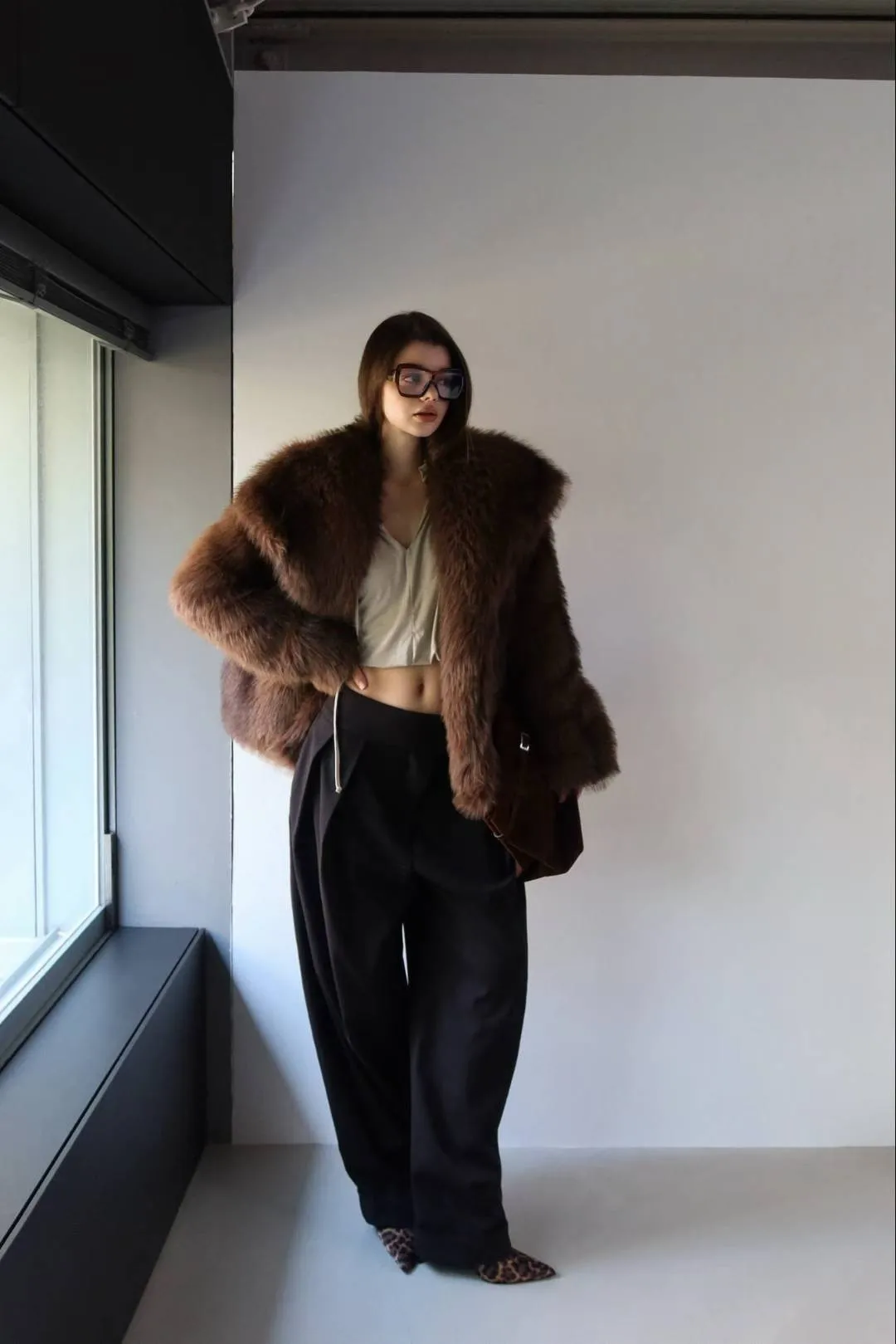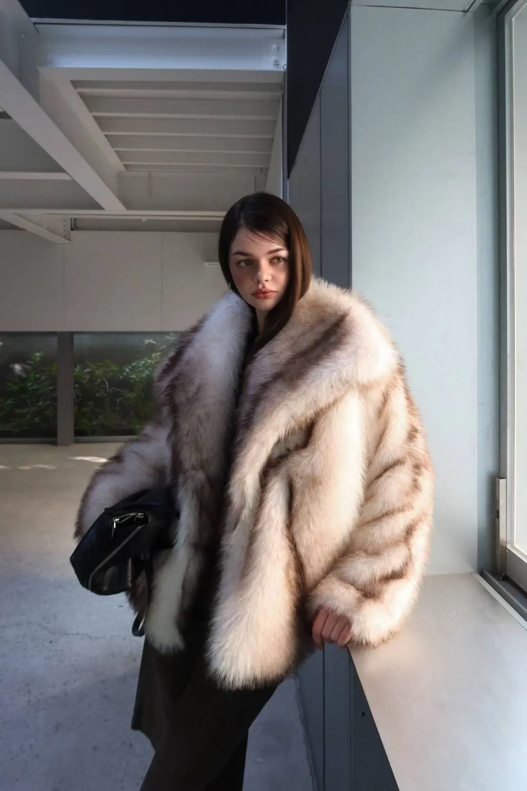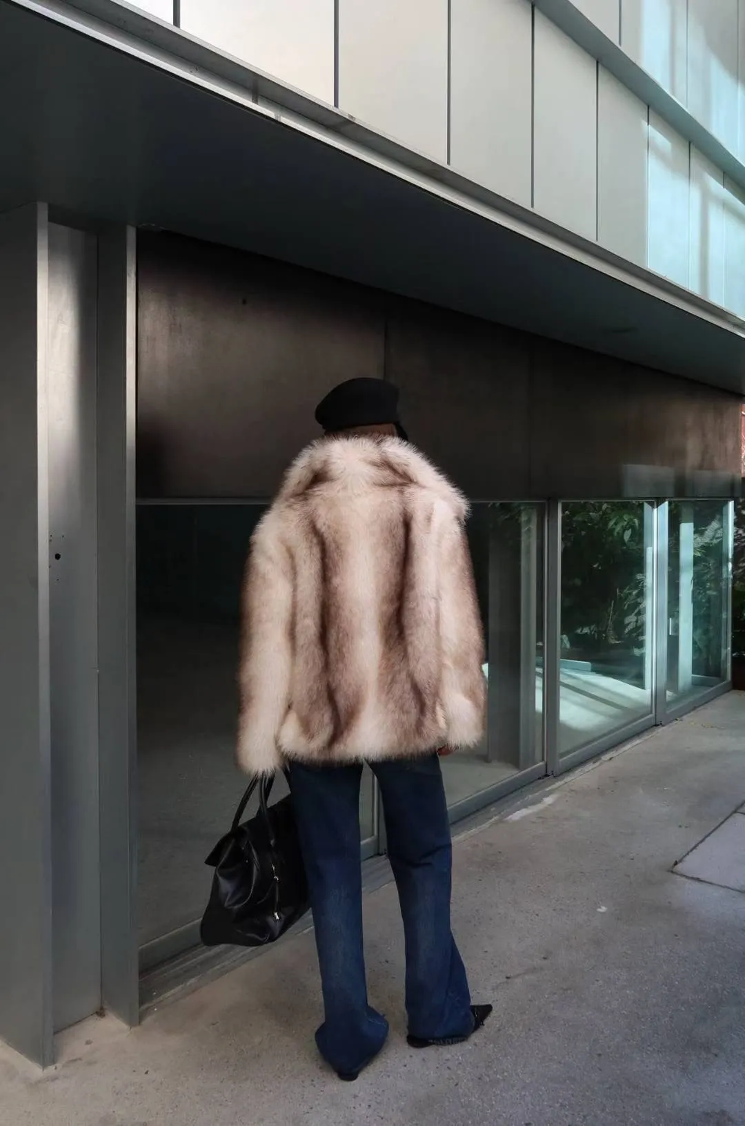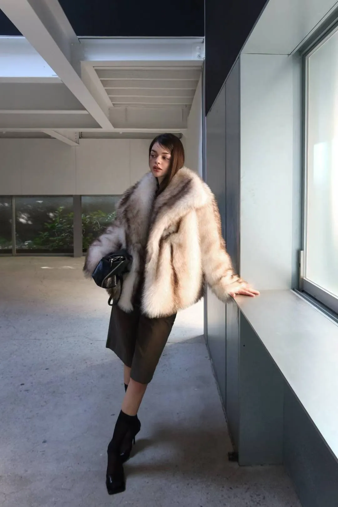 25LF06 狐狸毛環保皮草大開領外套 2色