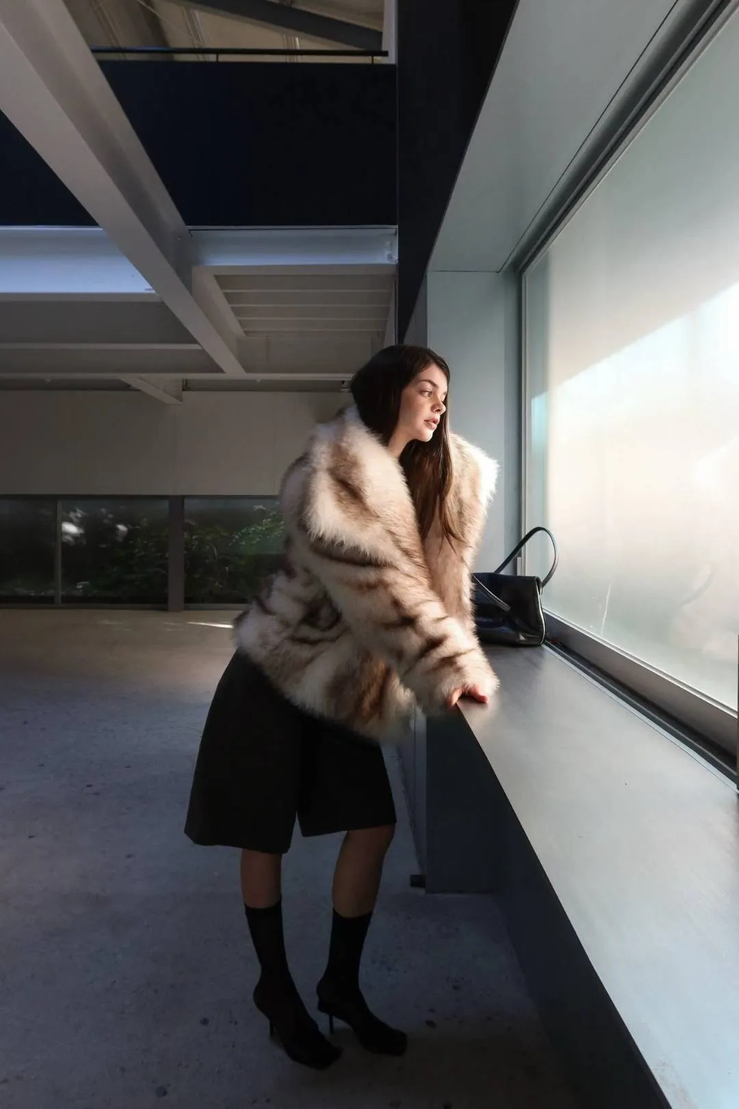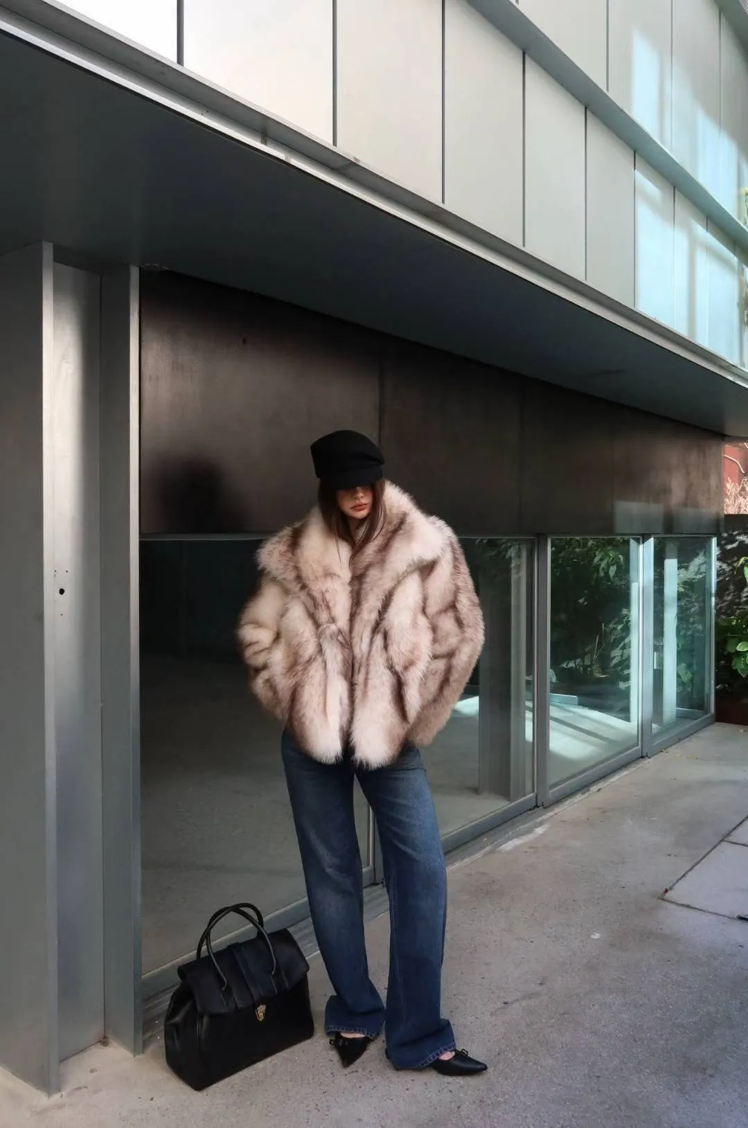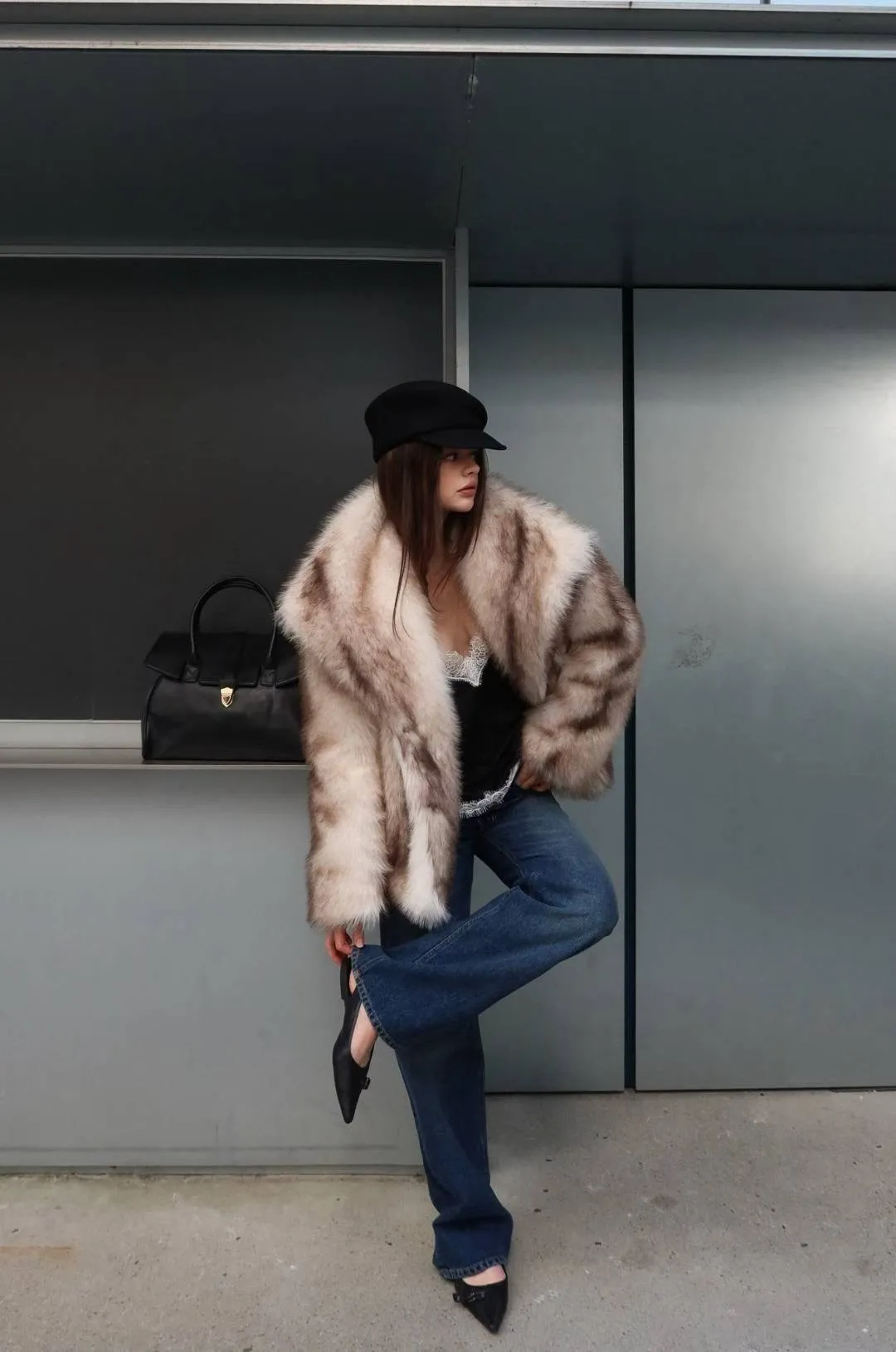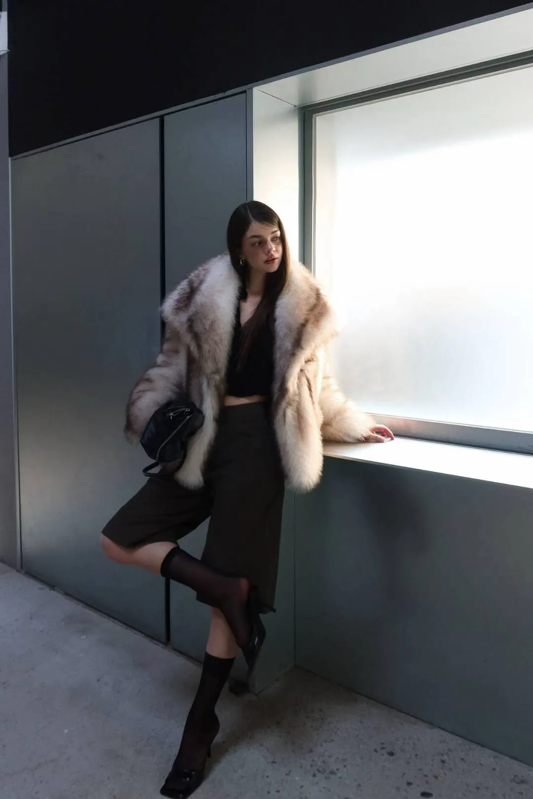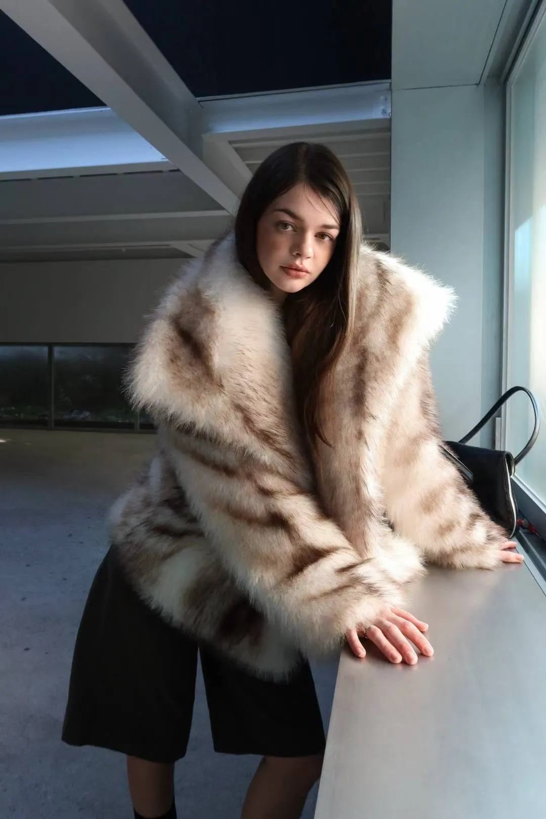 25LF06 狐狸毛環保皮草大開領外套 2色
