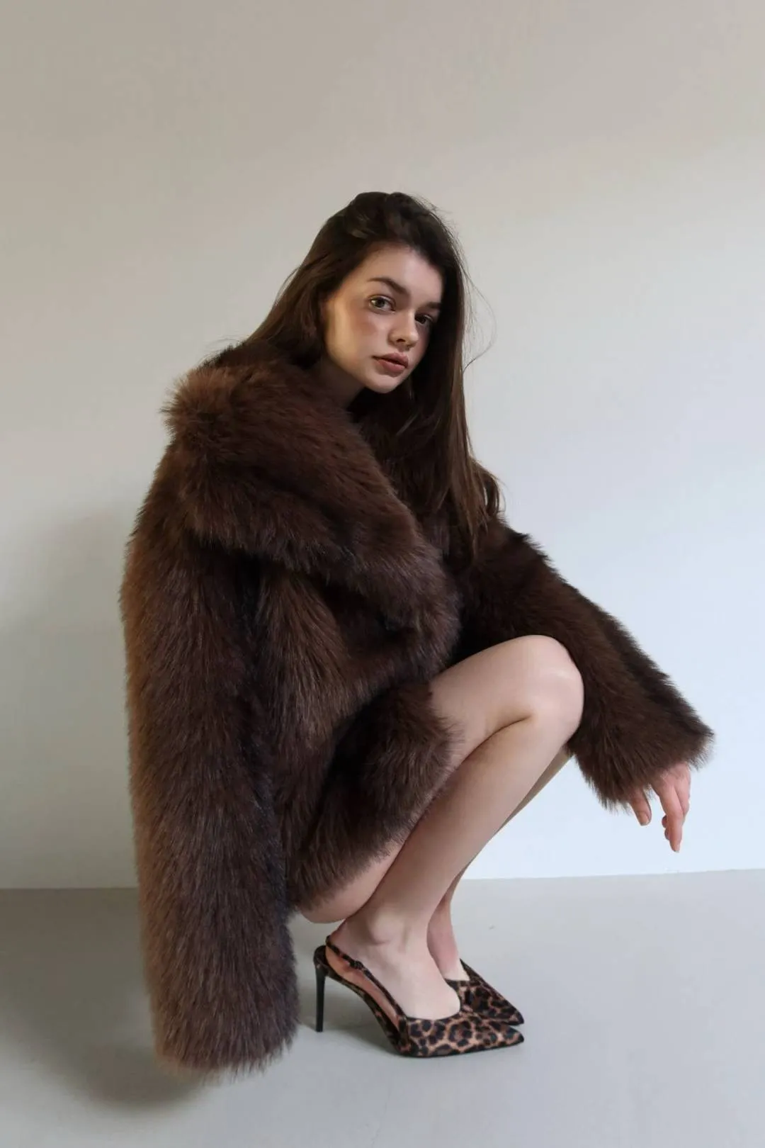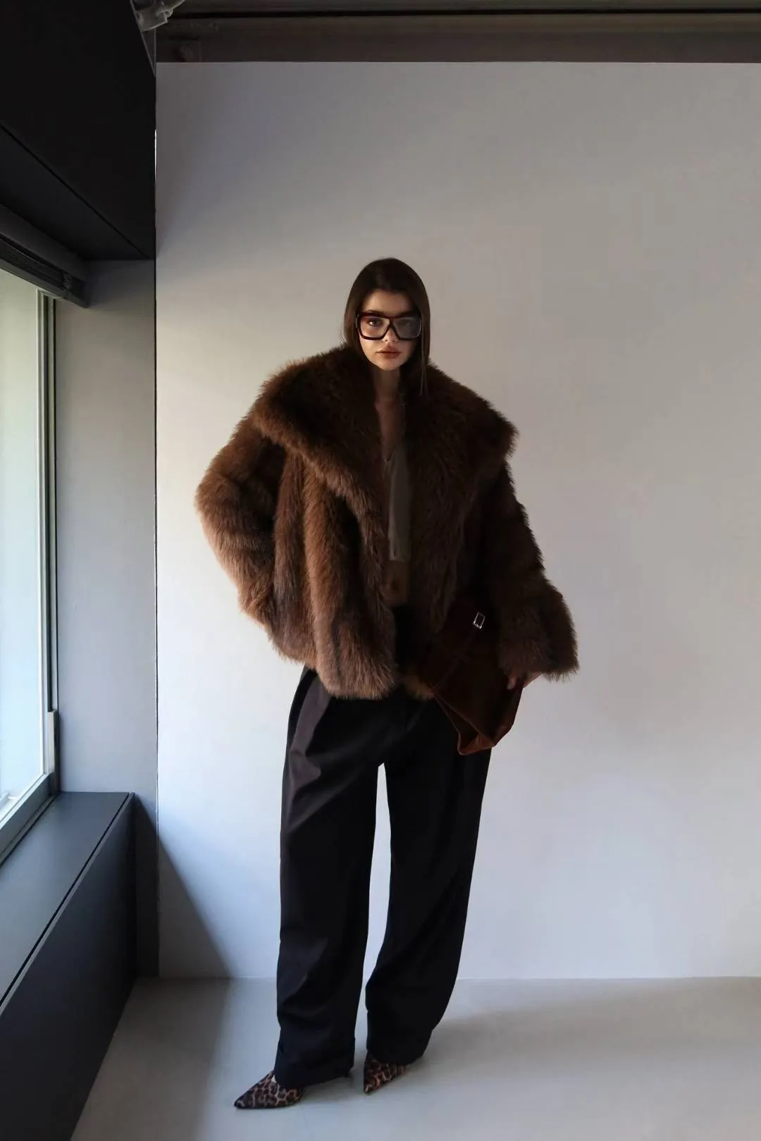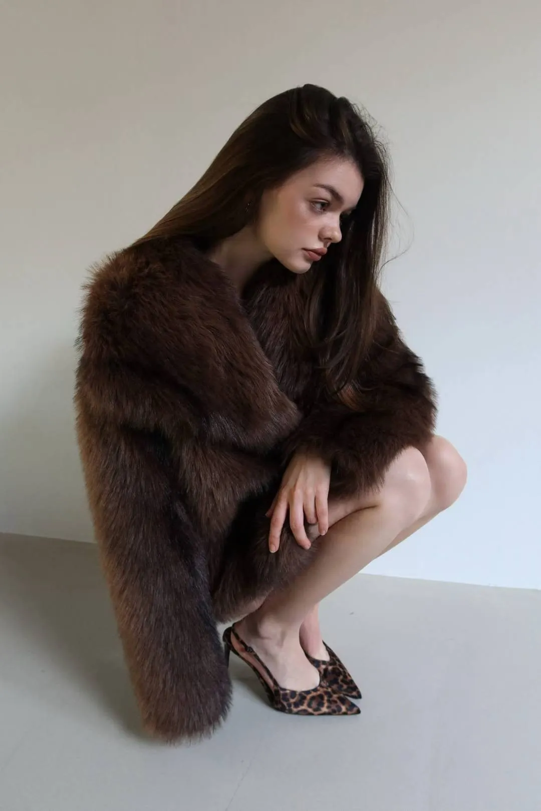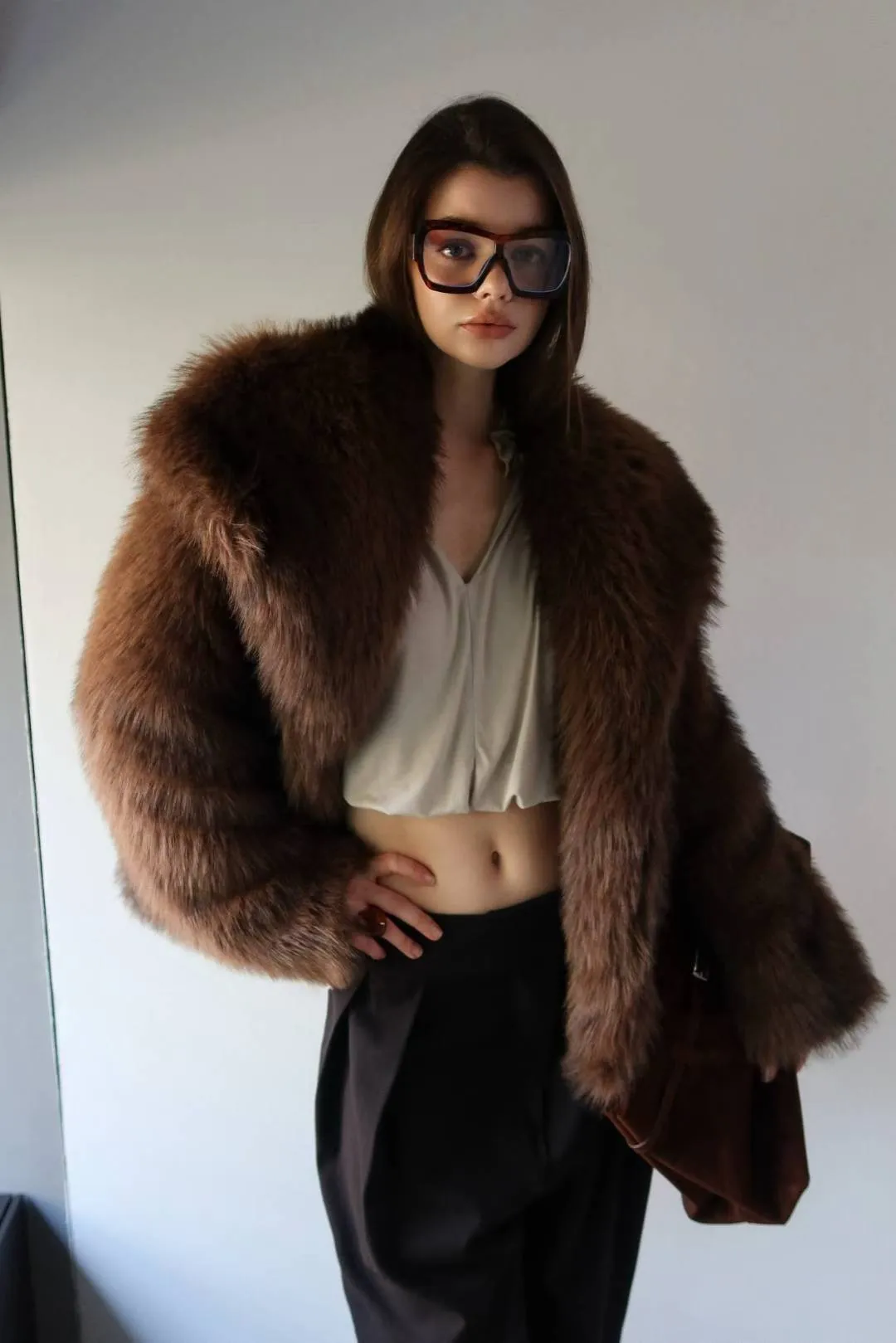 25LF06 狐狸毛環保皮草大開領外套 2色