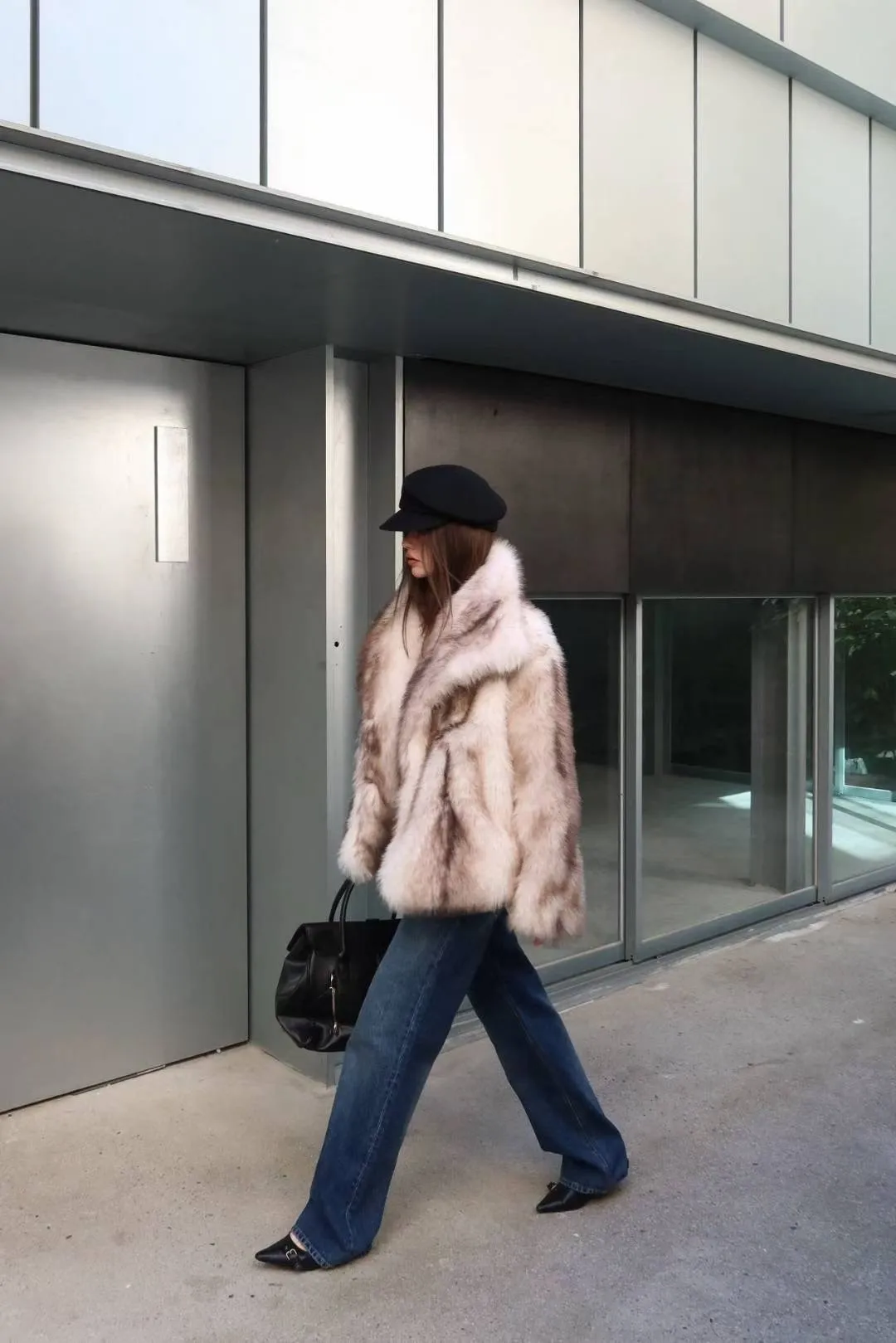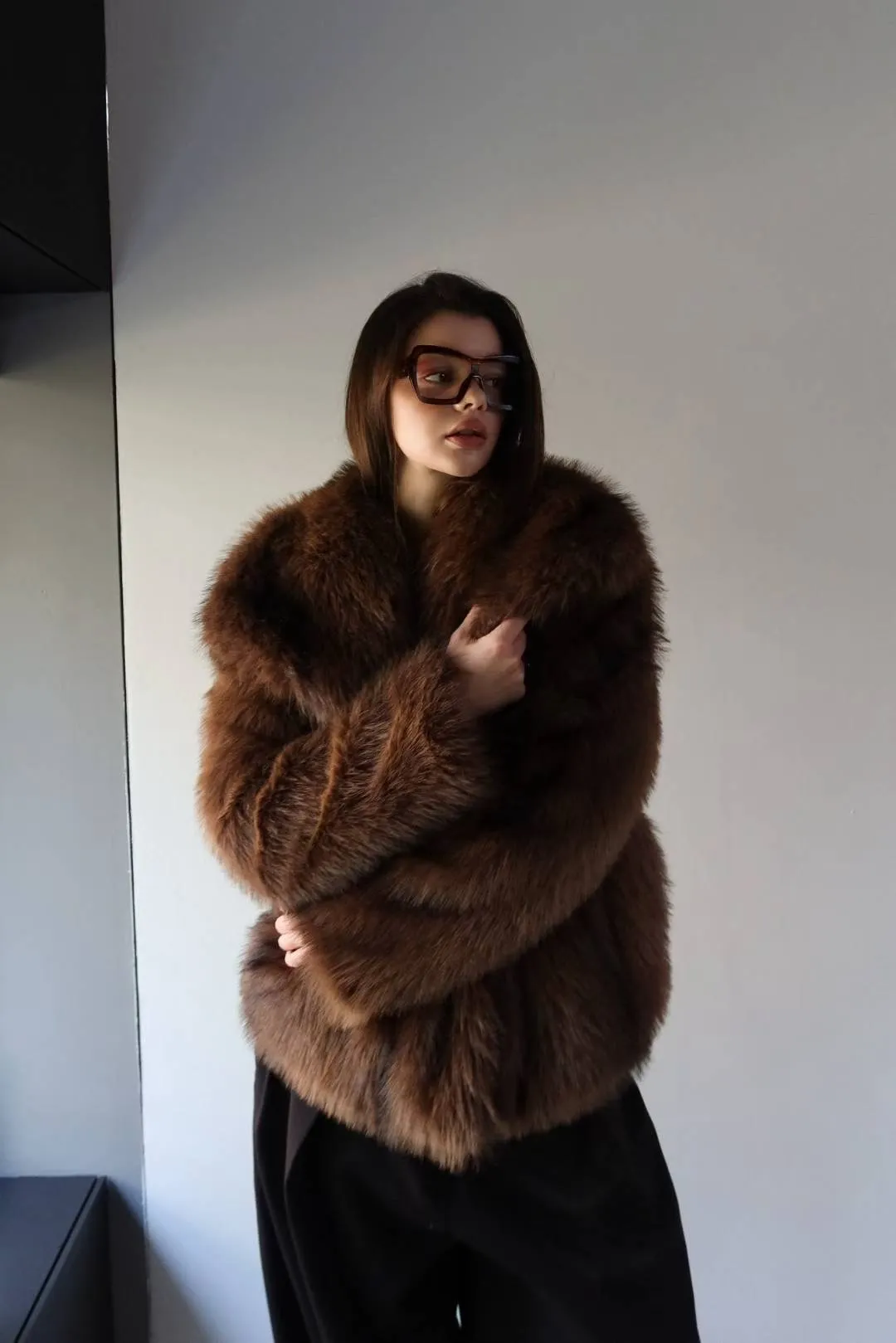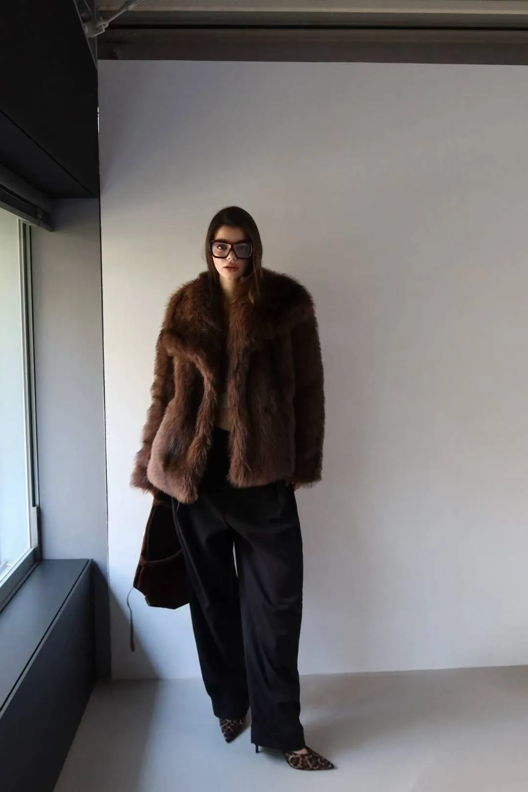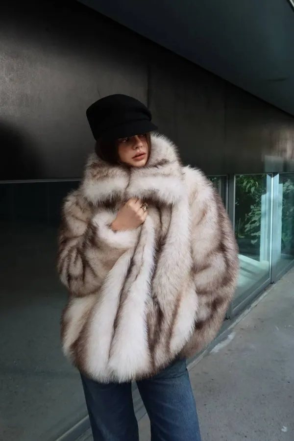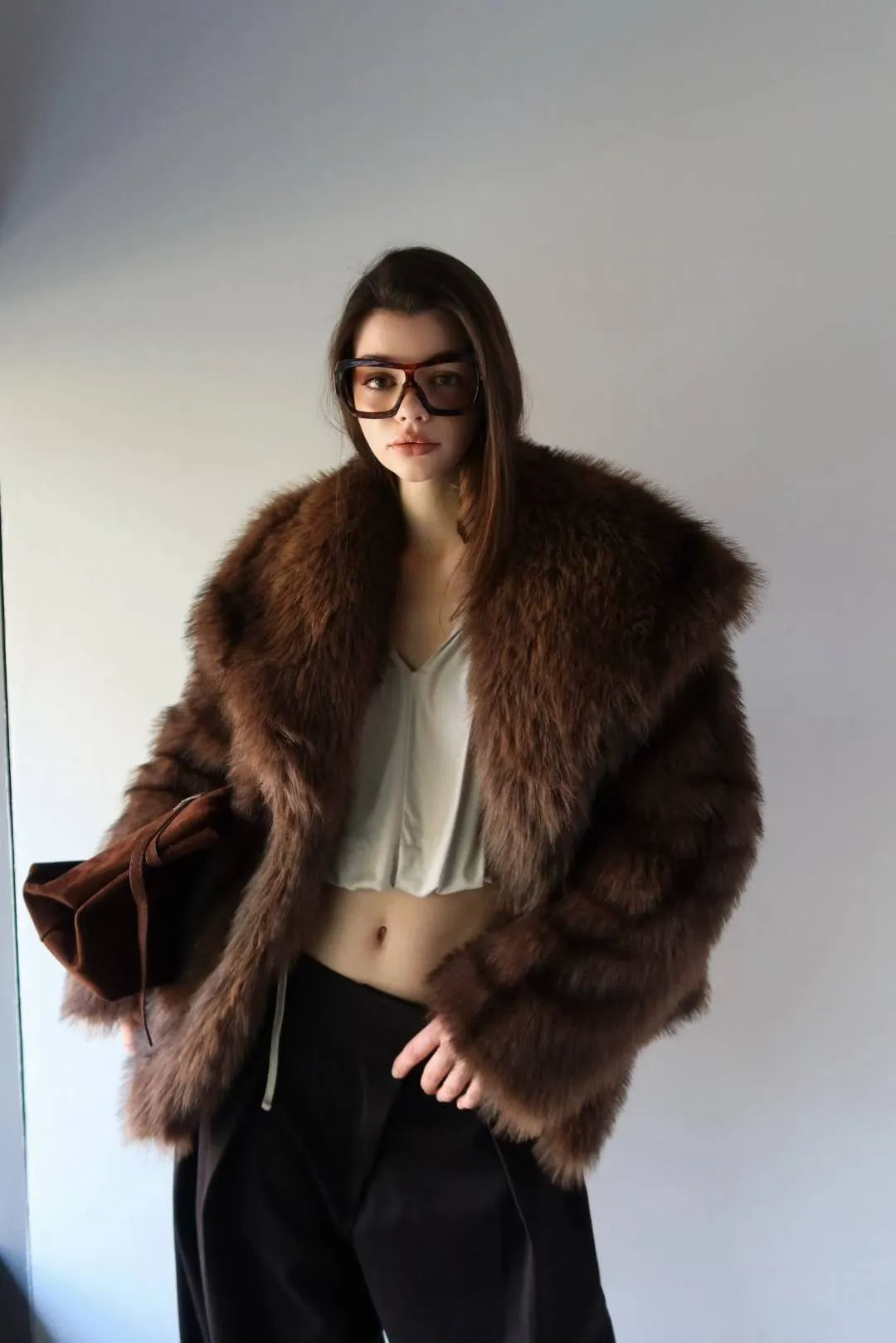 25LF06 狐狸毛環保皮草大開領外套 2色
