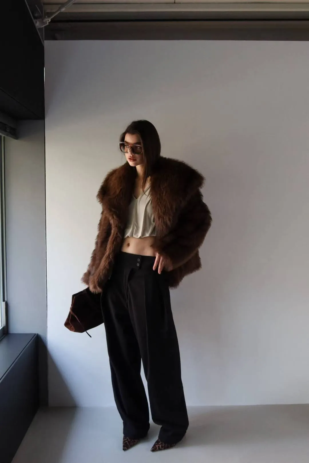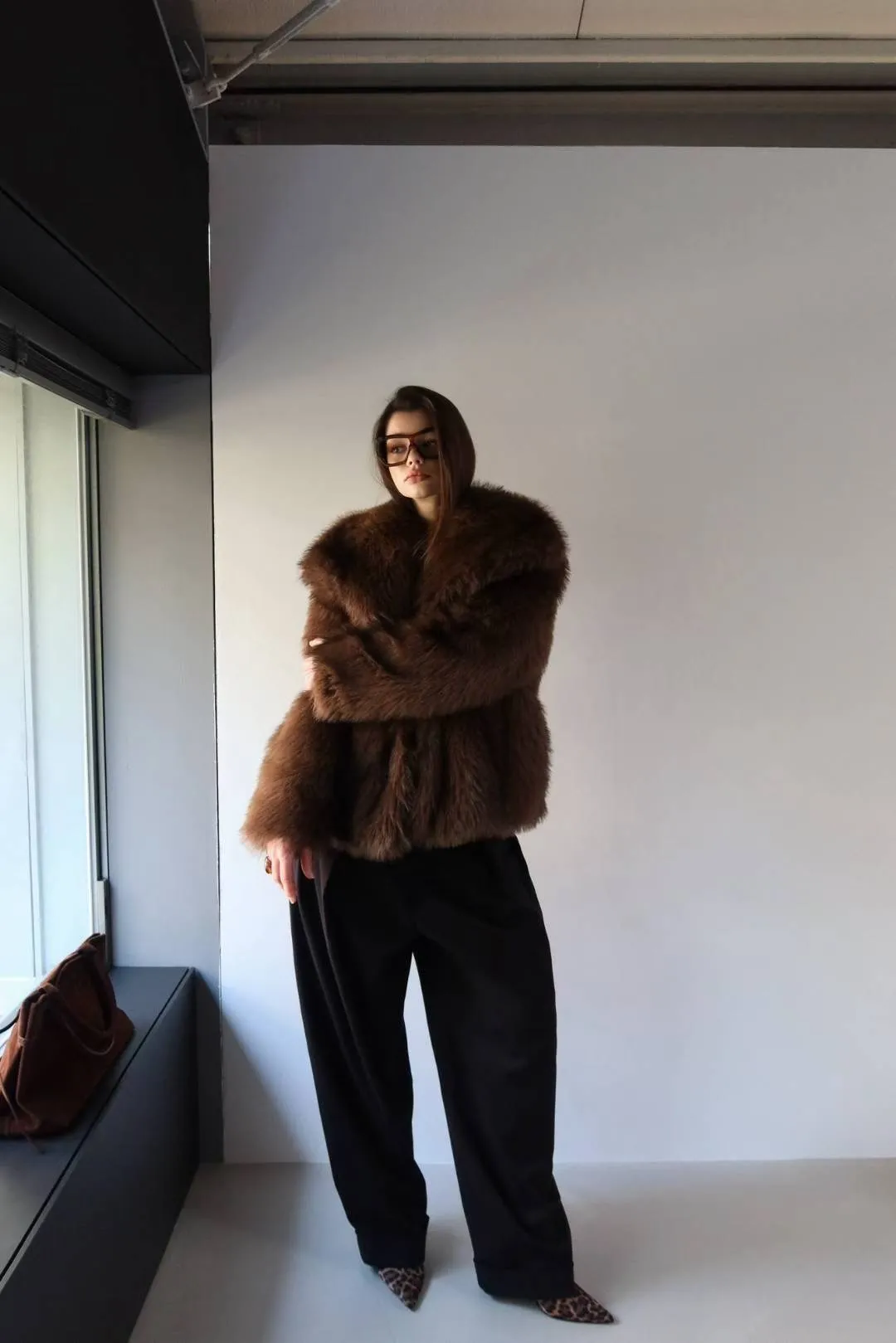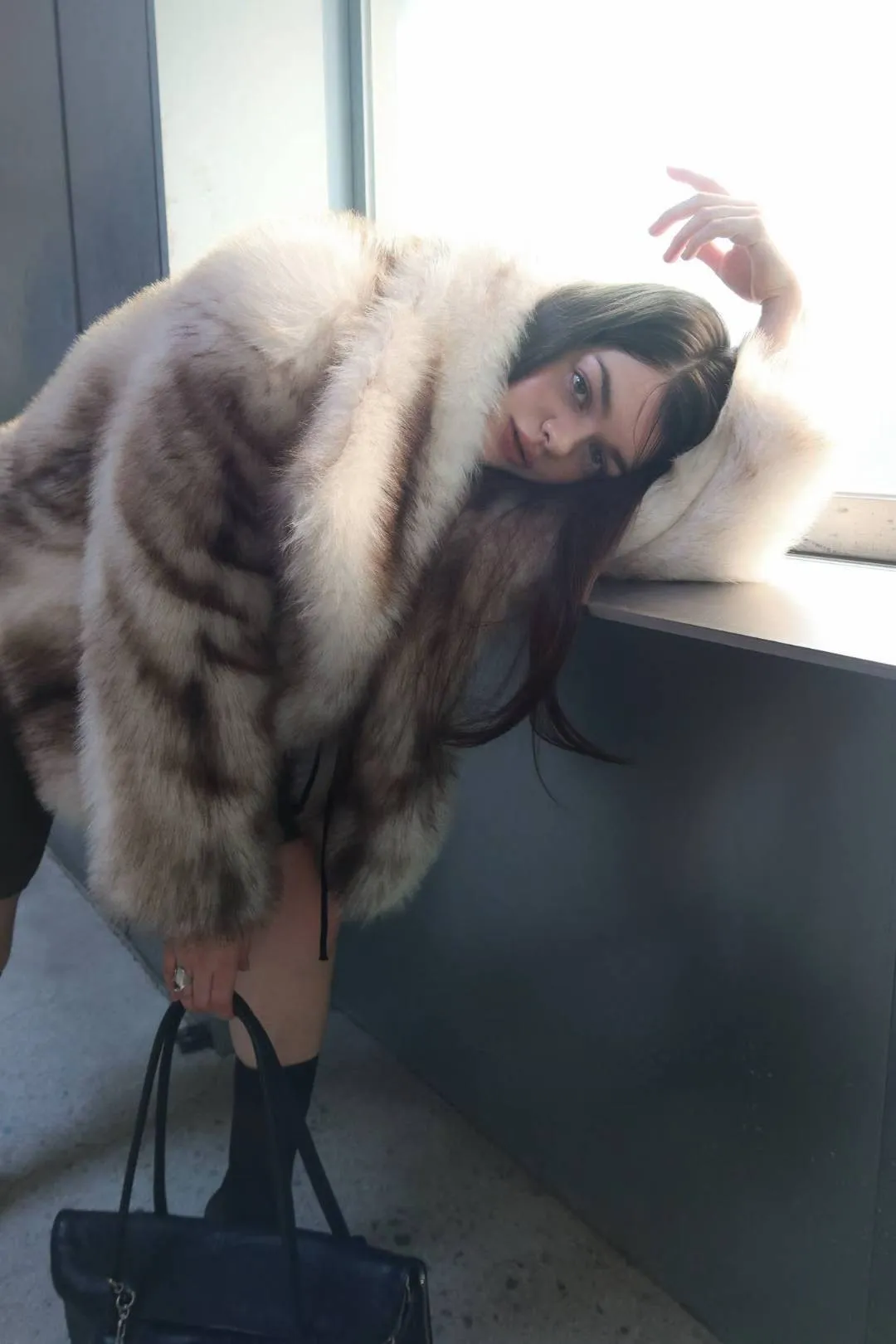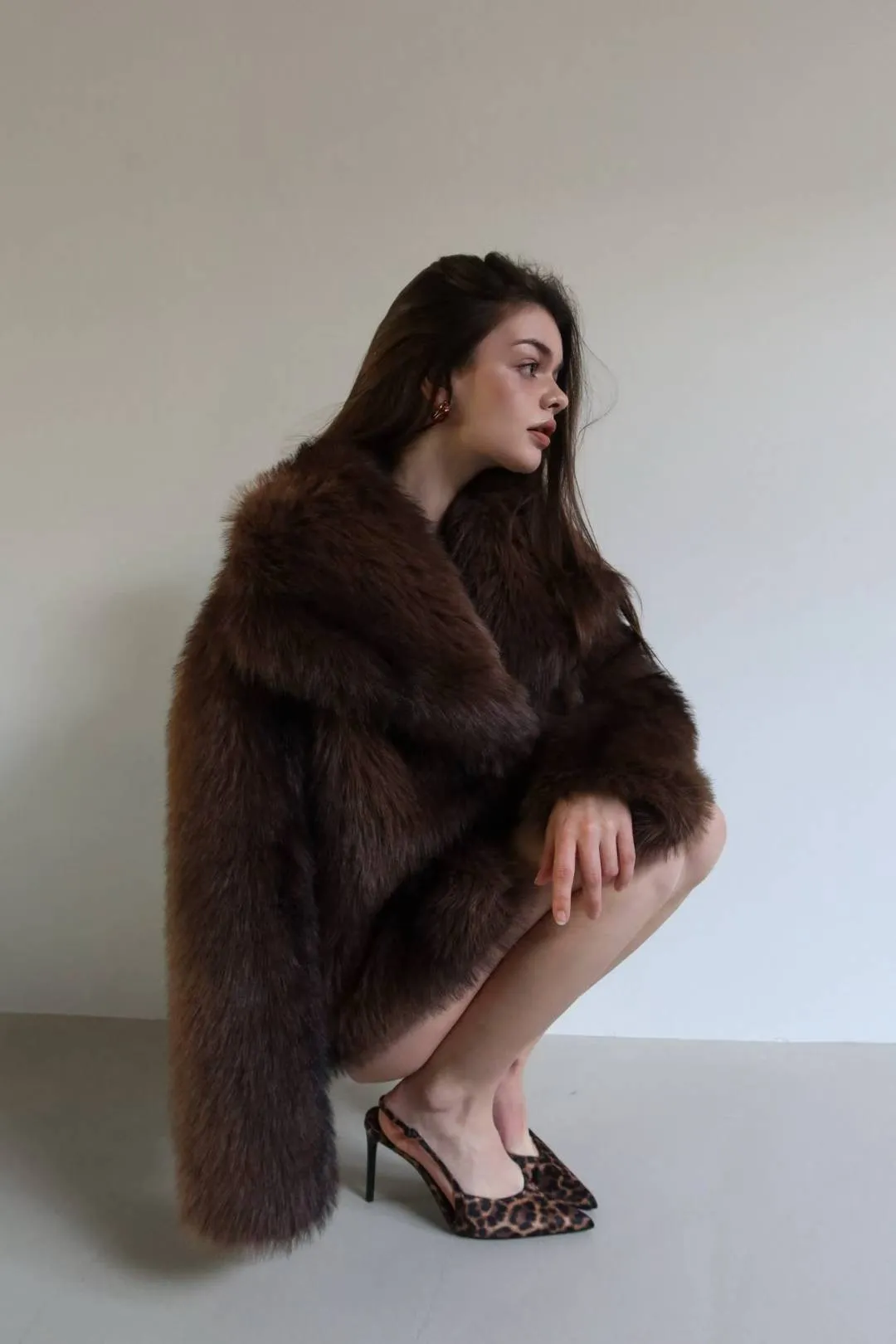 25LF06 狐狸毛環保皮草大開領外套 2色