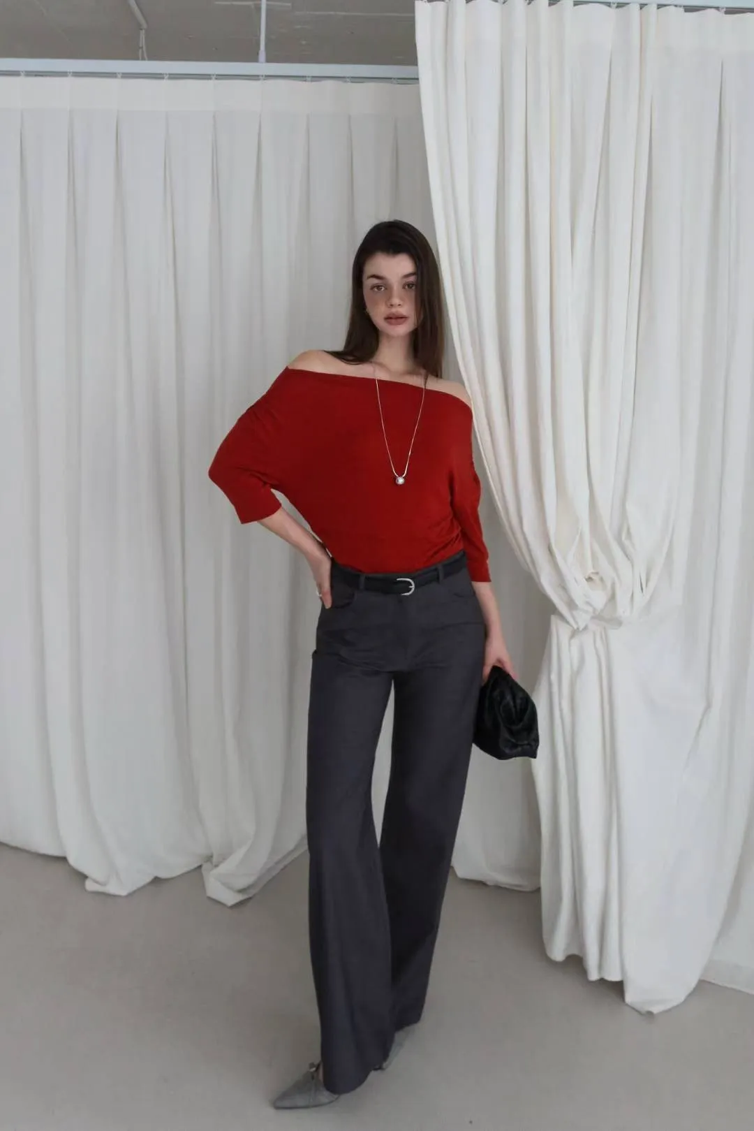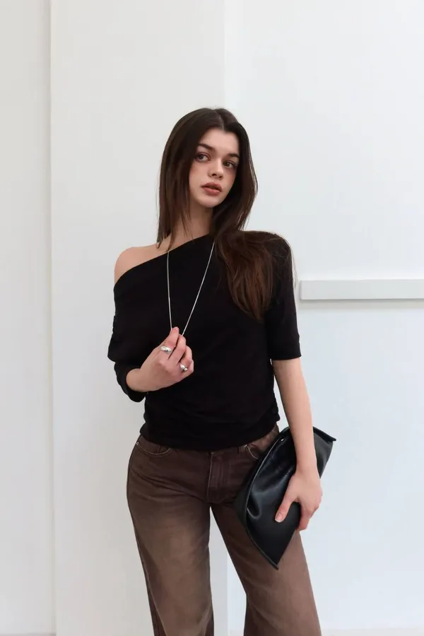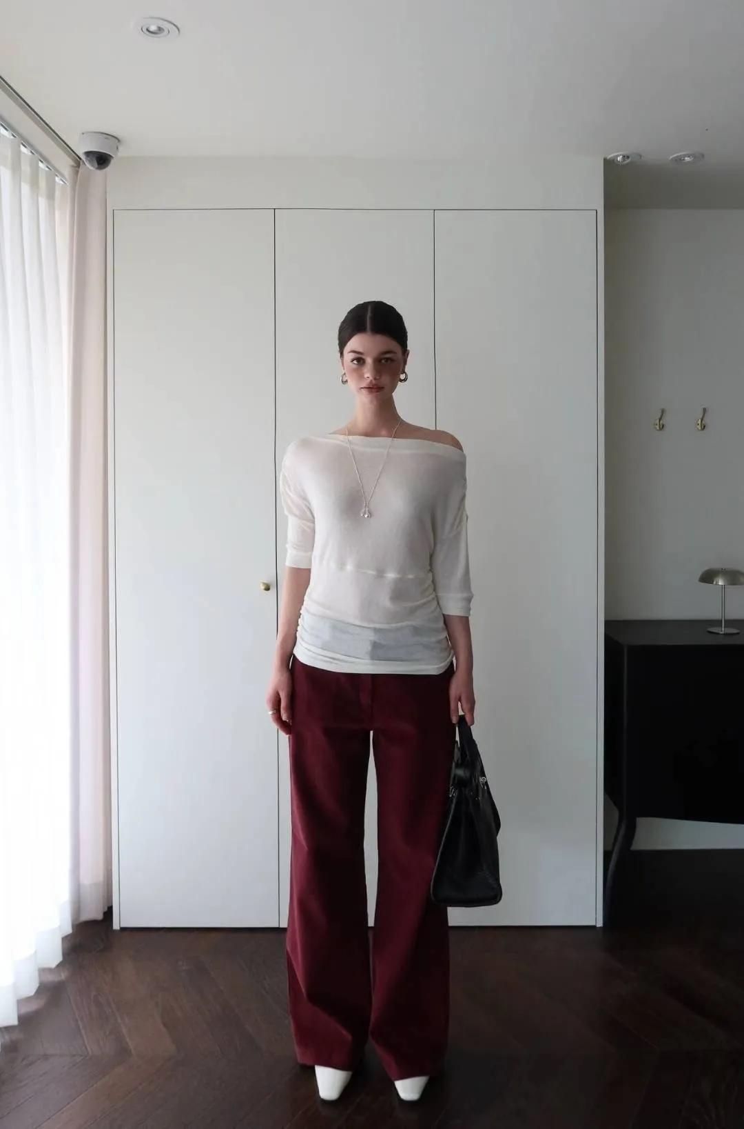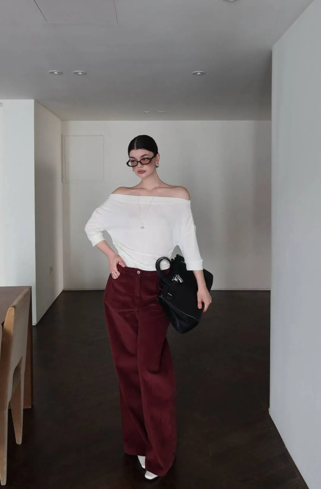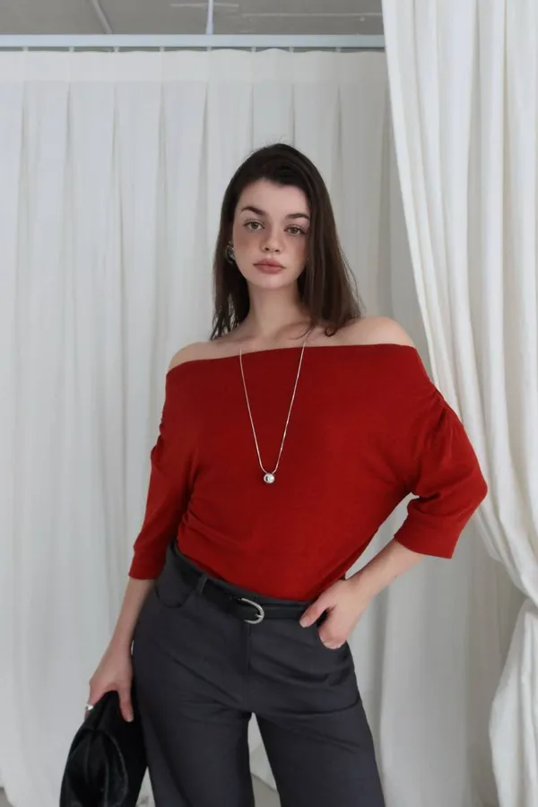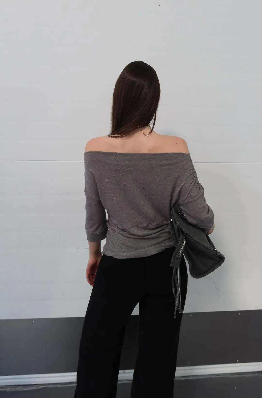 25LF09 羊絨五分袖不對稱抓褶船領T 4色
