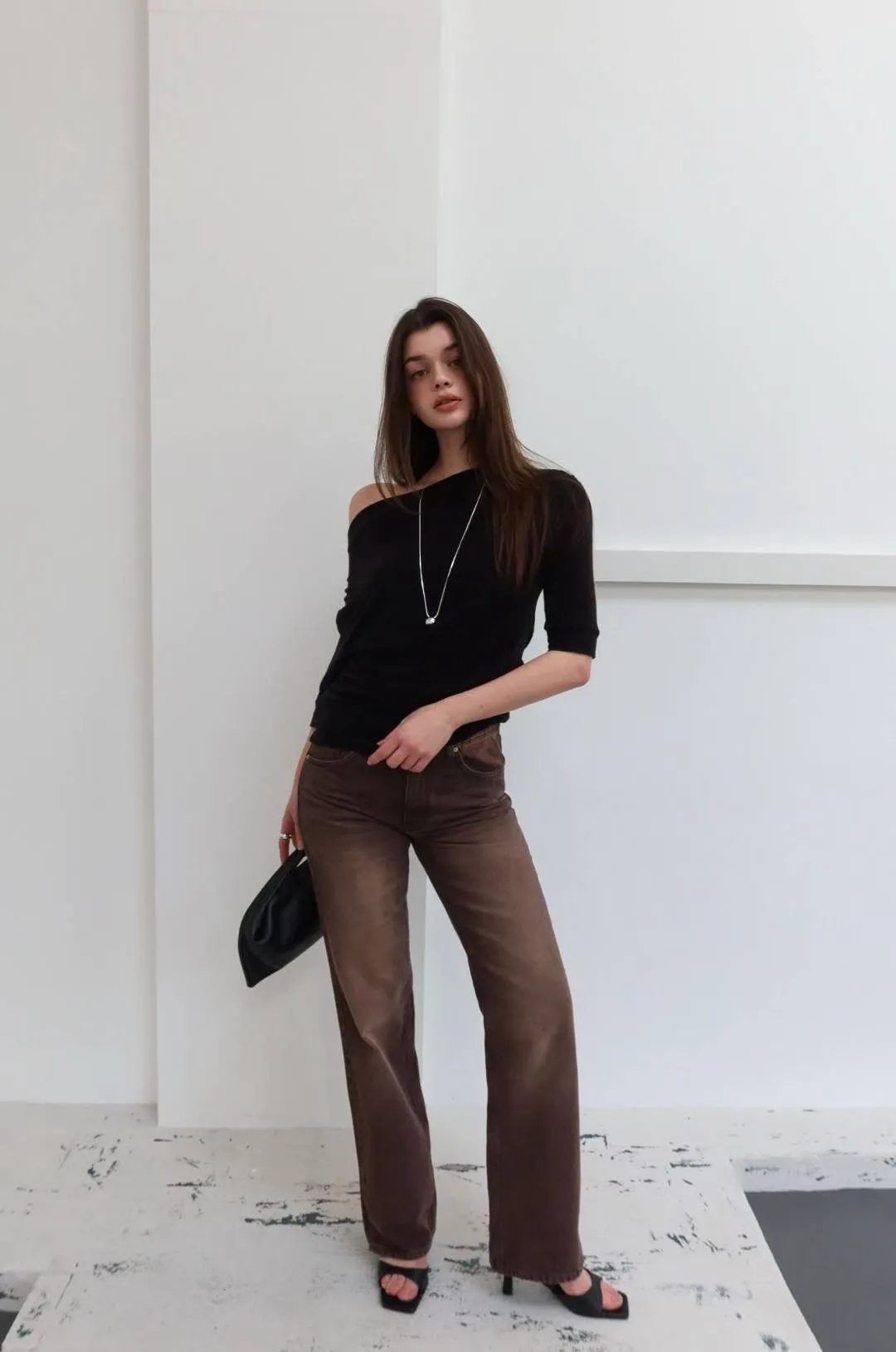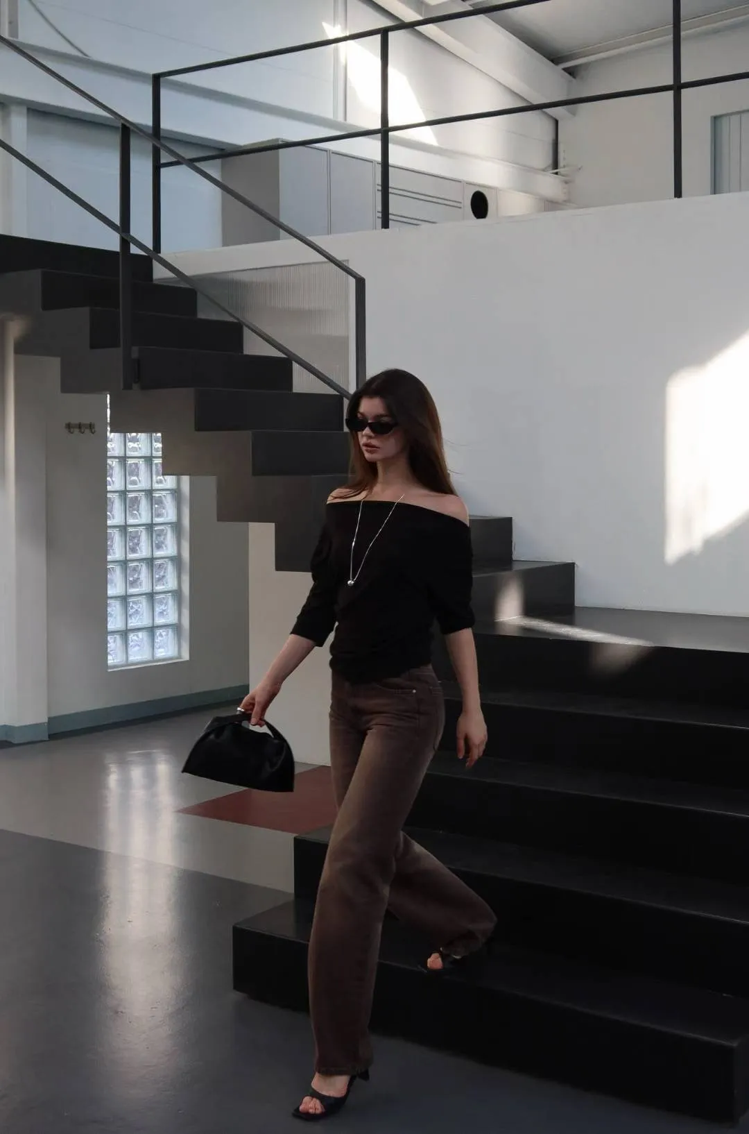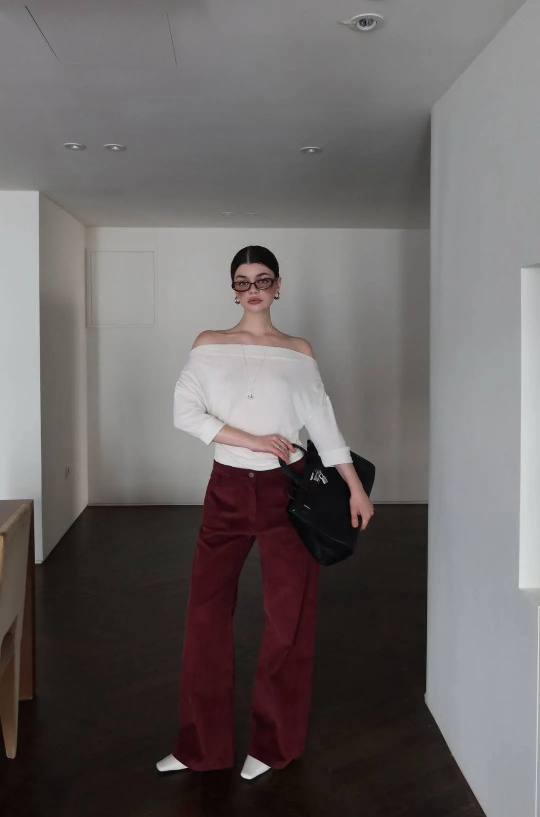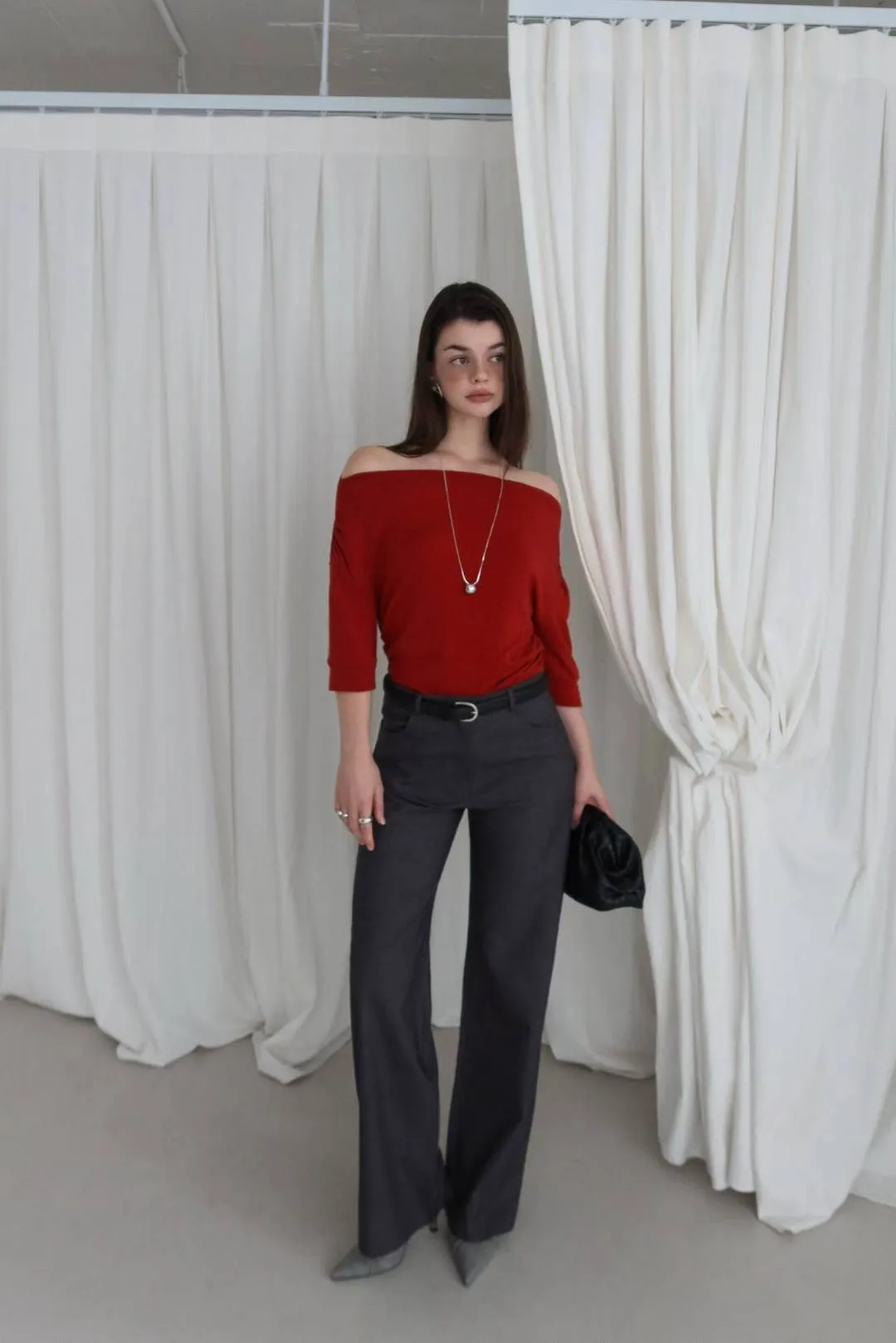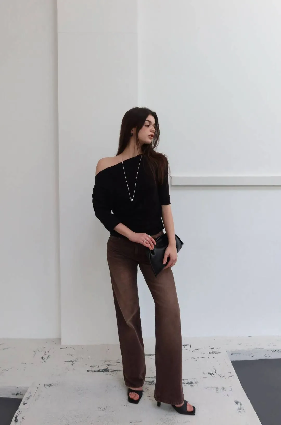 25LF09 羊絨五分袖不對稱抓褶船領T 4色