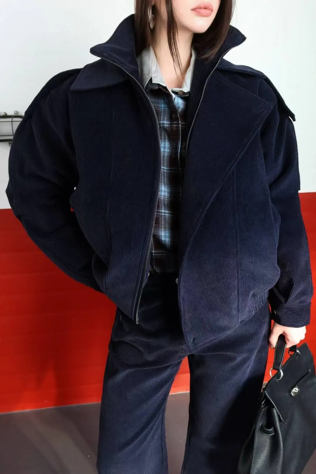 25LF10 燈芯絨雙領立領內夾棉夾克外套 3色