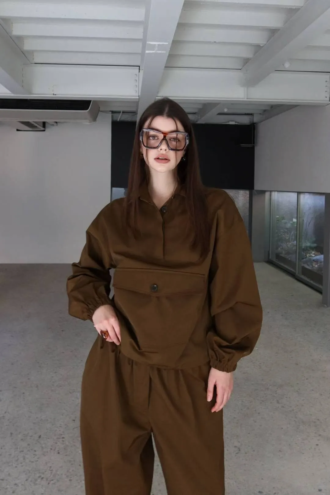 25LF12 翻領排扣大工裝口袋防風挺滑料大學T 3色