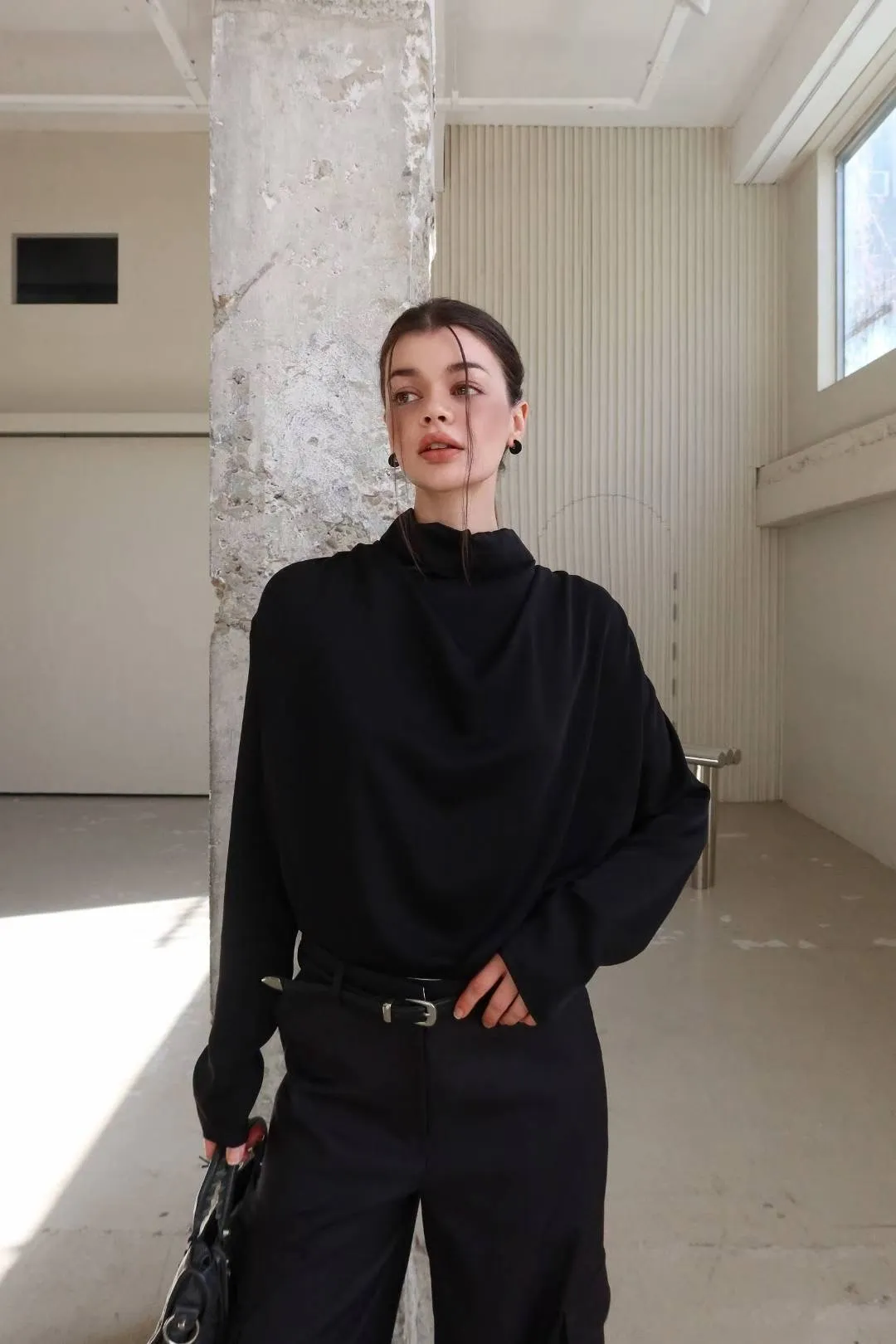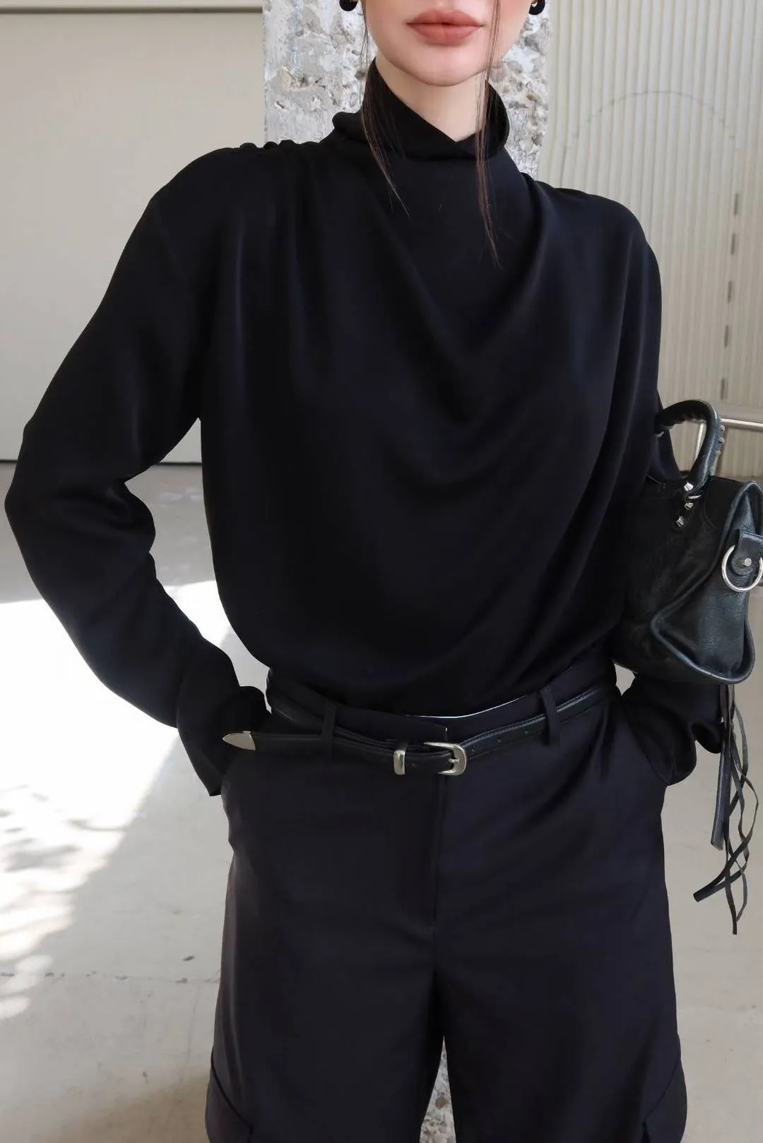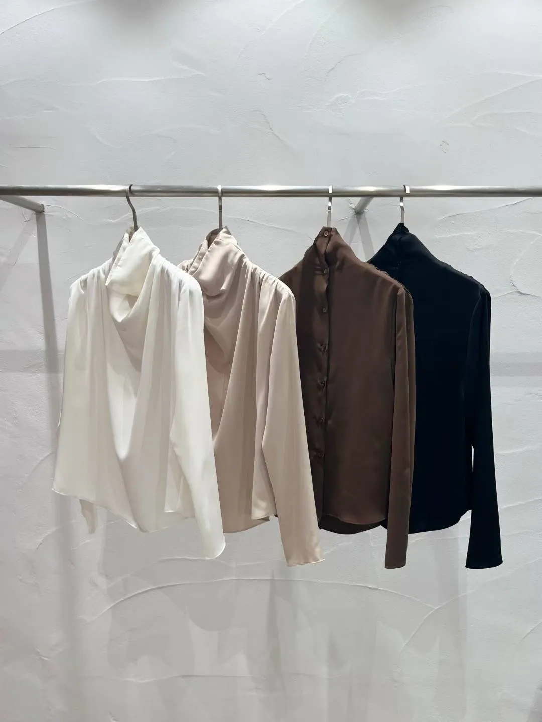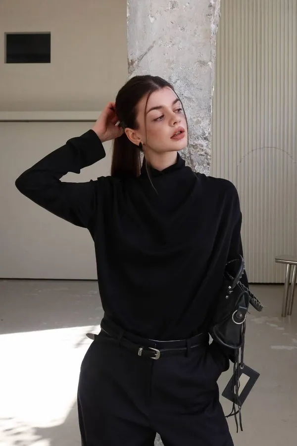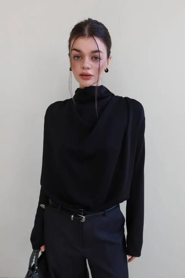 25LF17 小高領排扣雪紡兩面穿上衣 4色
