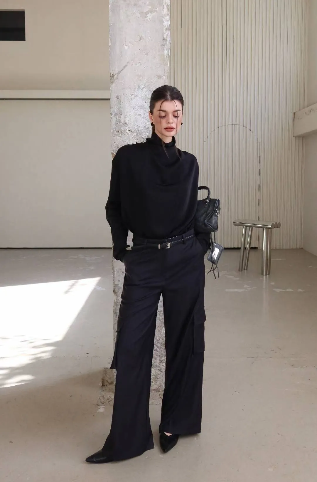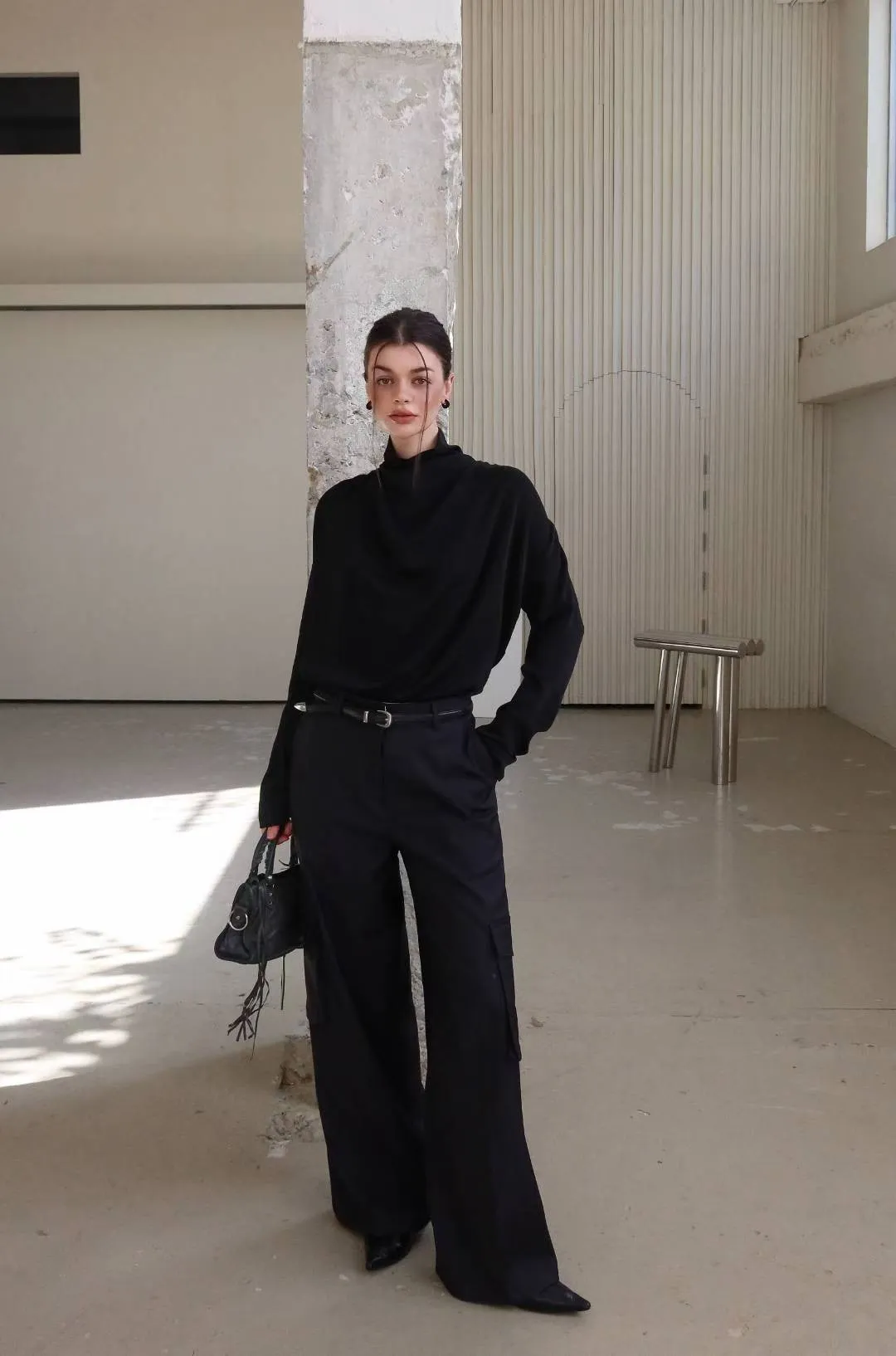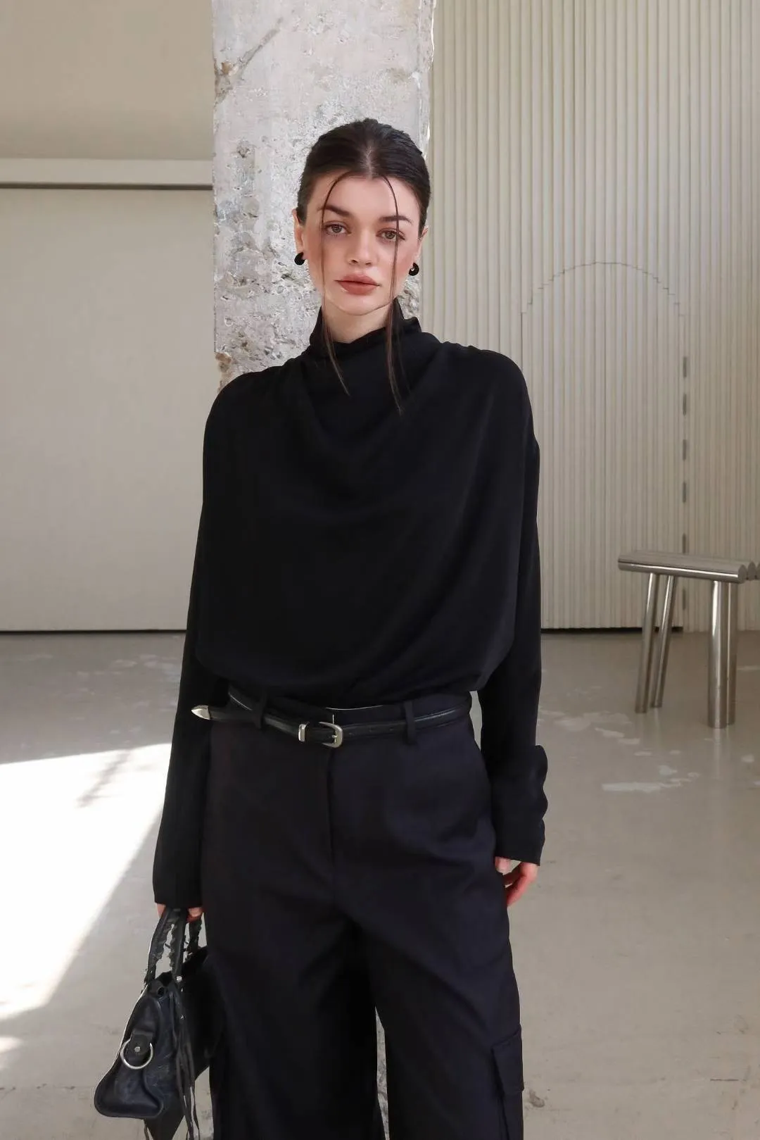 25LF17 小高領排扣雪紡兩面穿上衣 4色