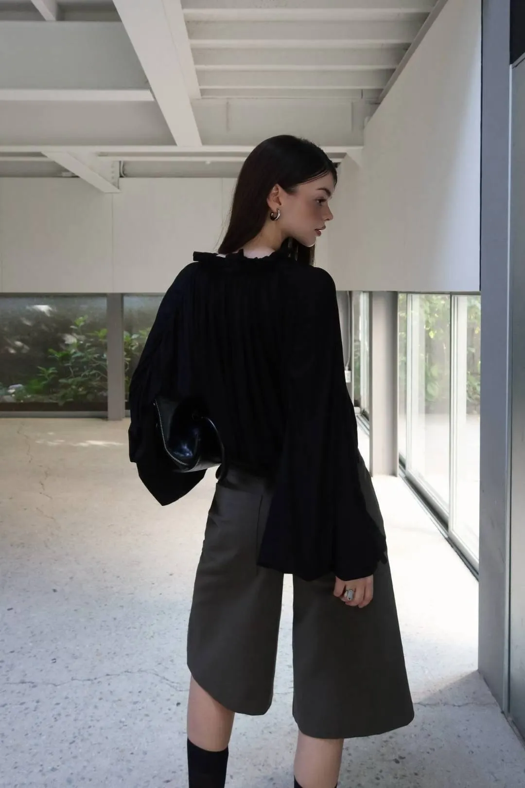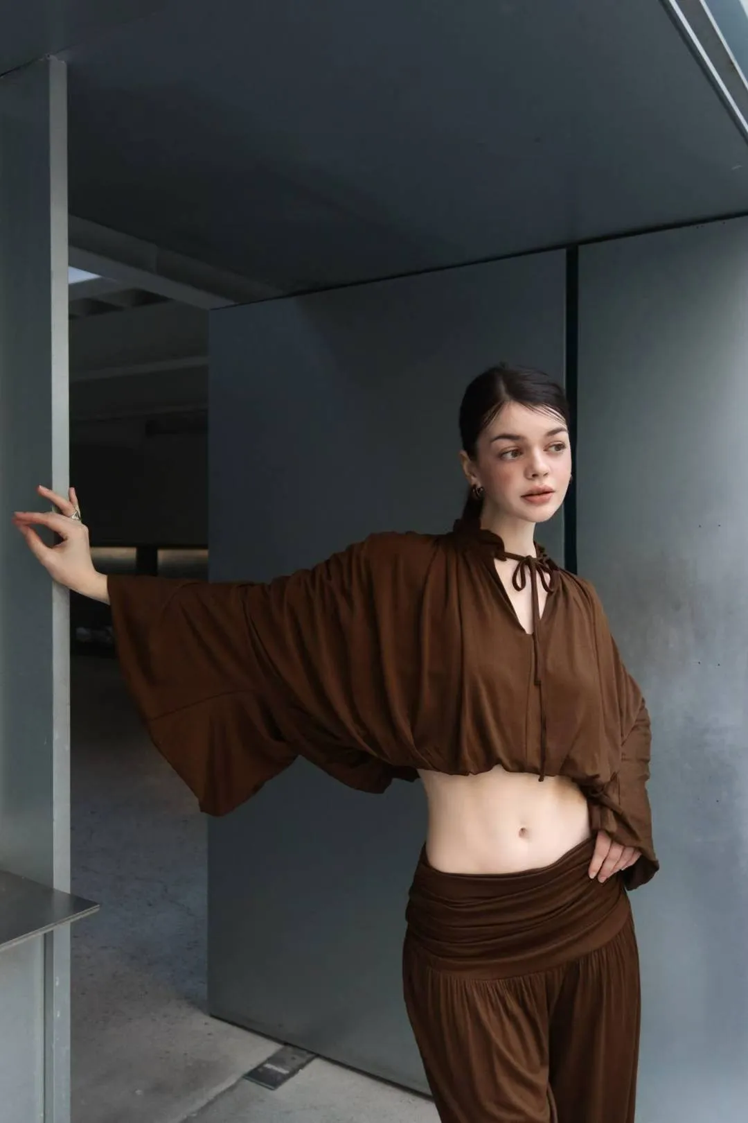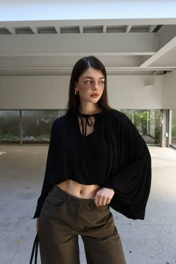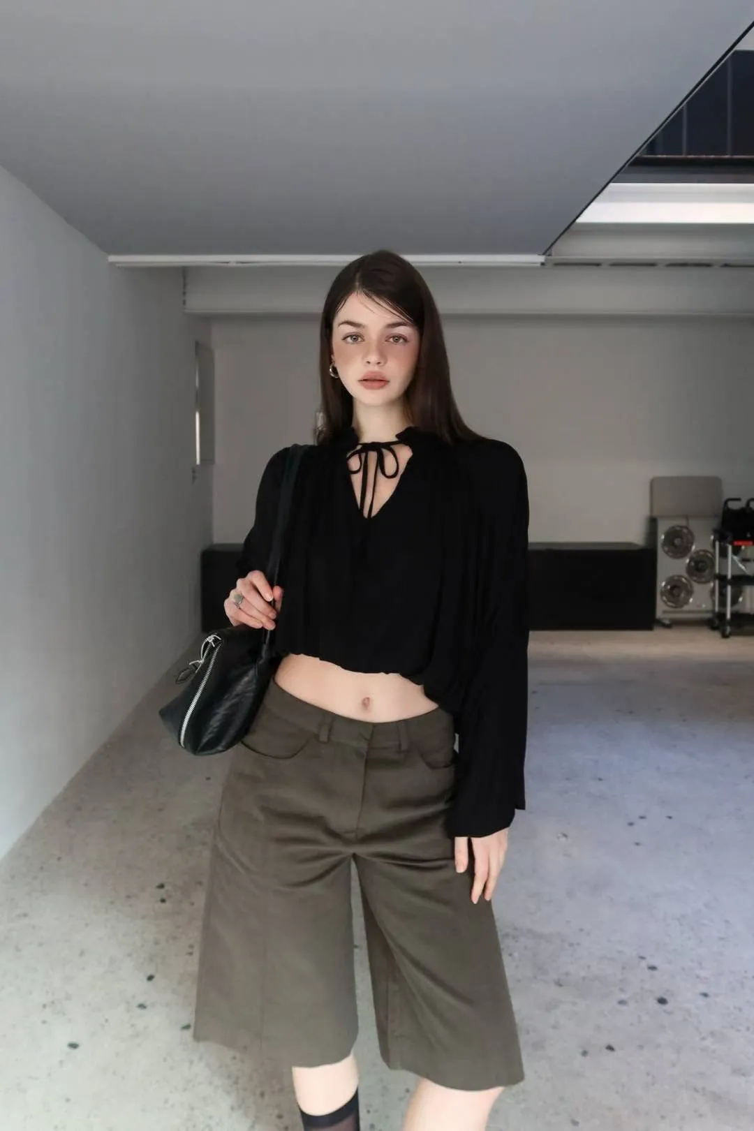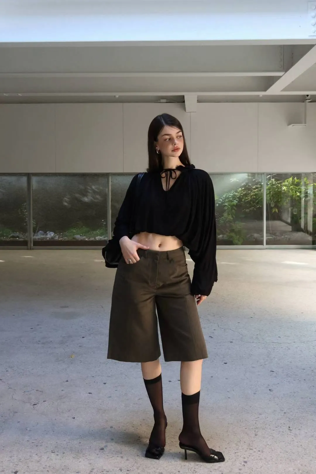 25LF19 綁繩荷葉領垂墜短版上衣 3色