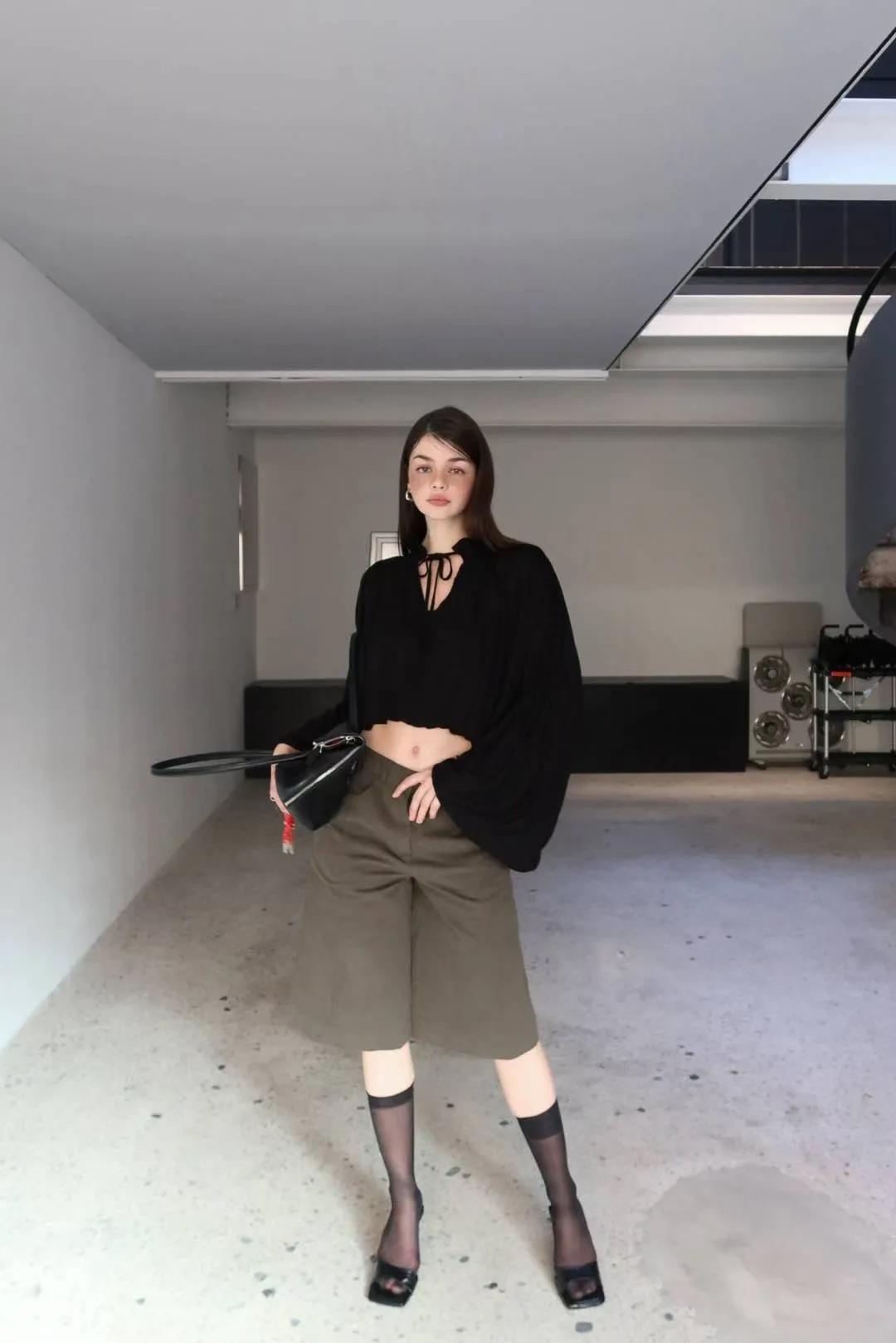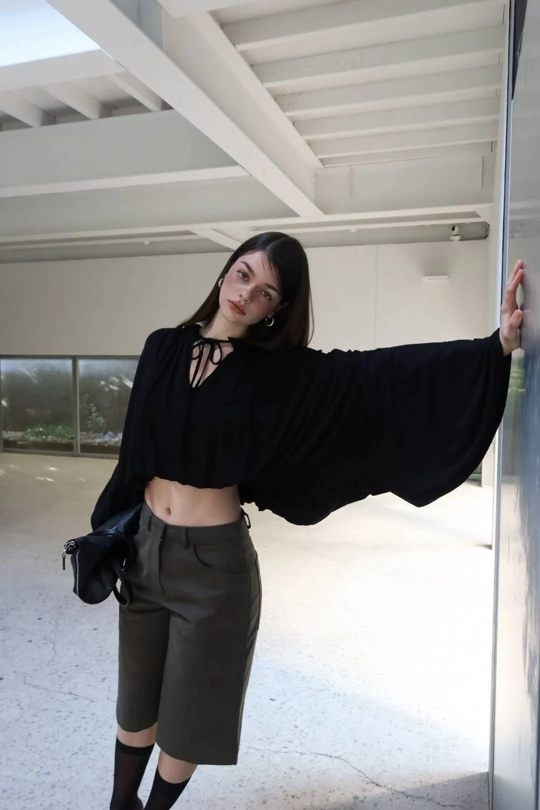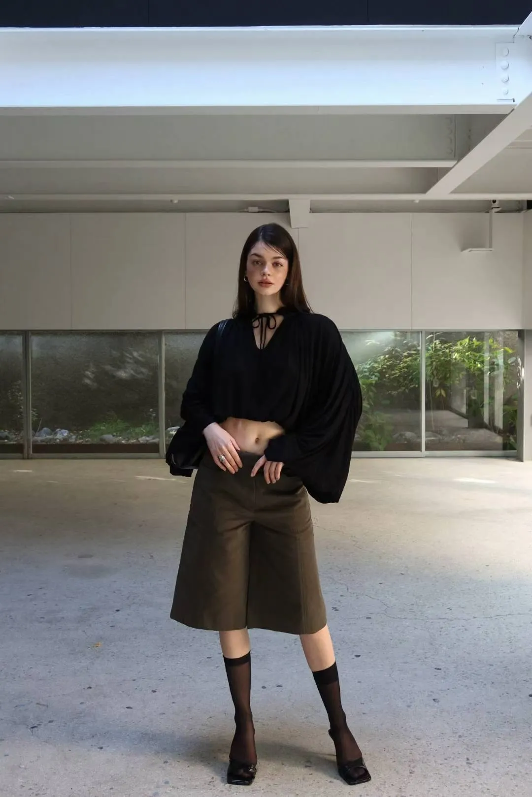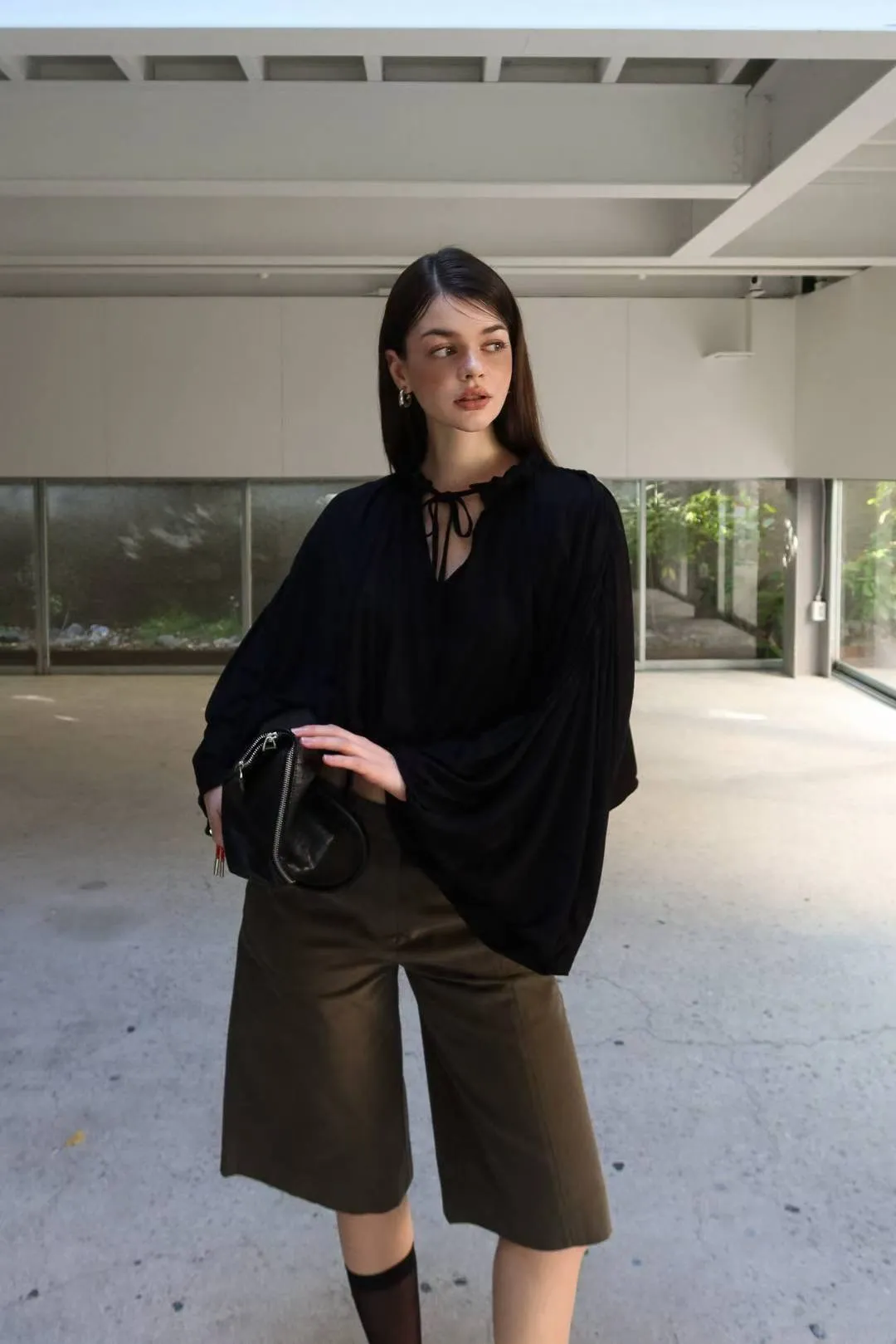 25LF19 綁繩荷葉領垂墜短版上衣 3色