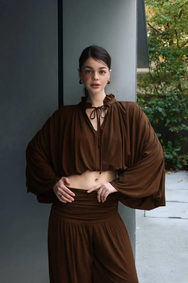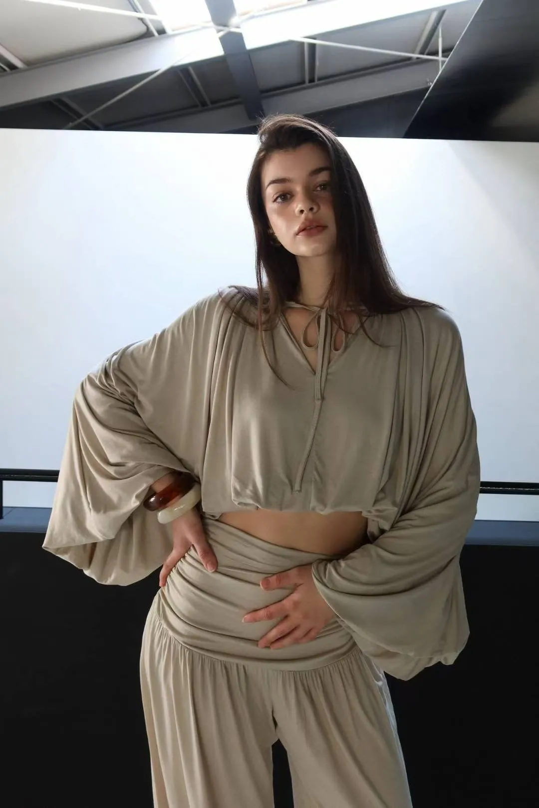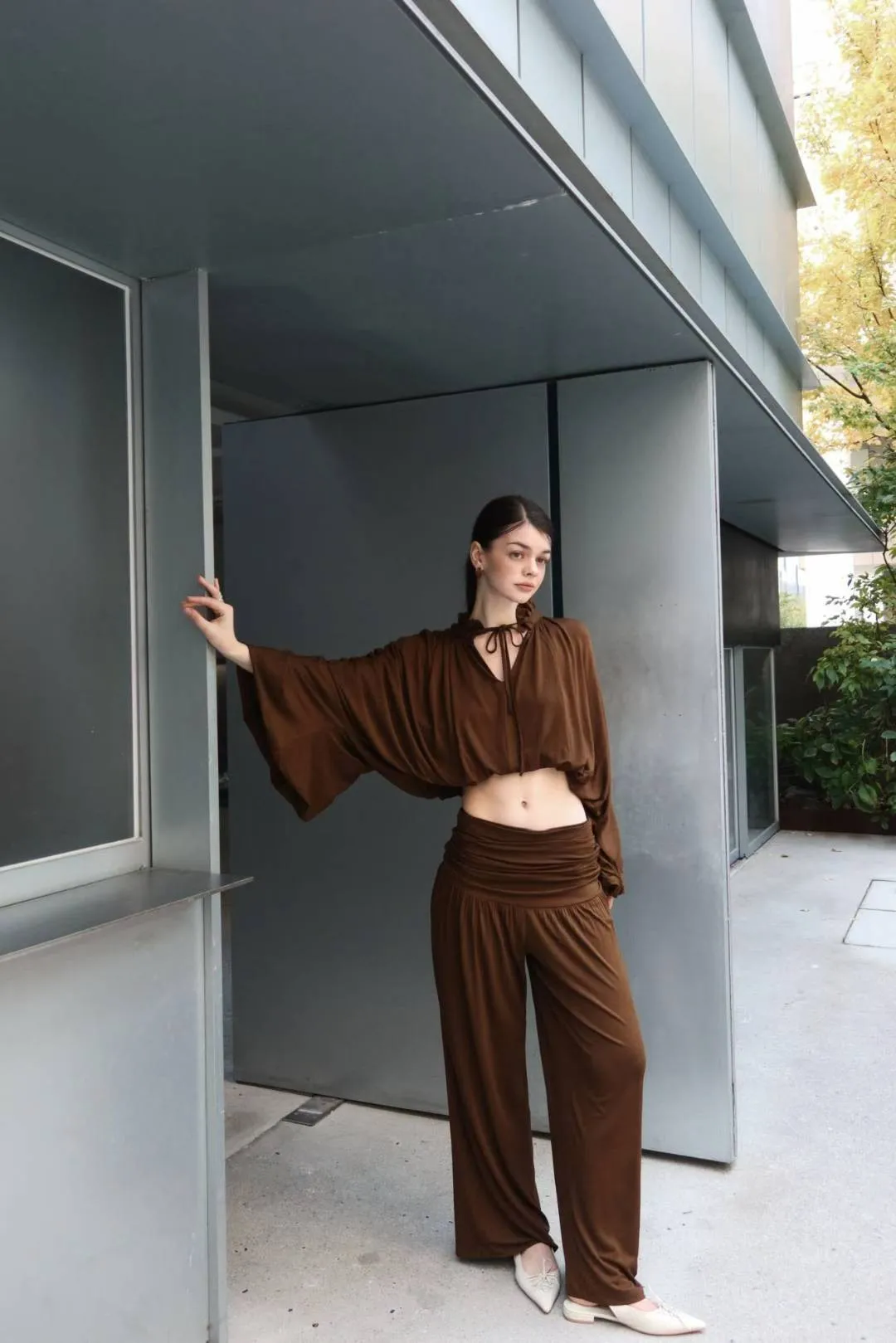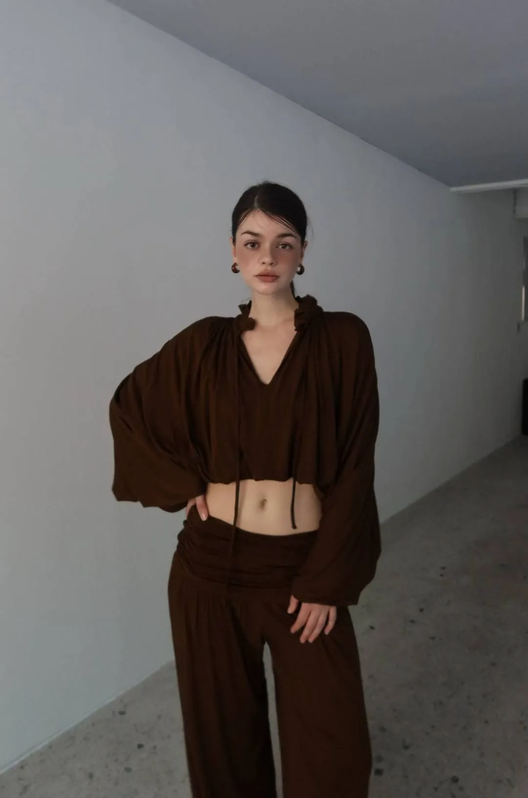 25LF19 綁繩荷葉領垂墜短版上衣 3色