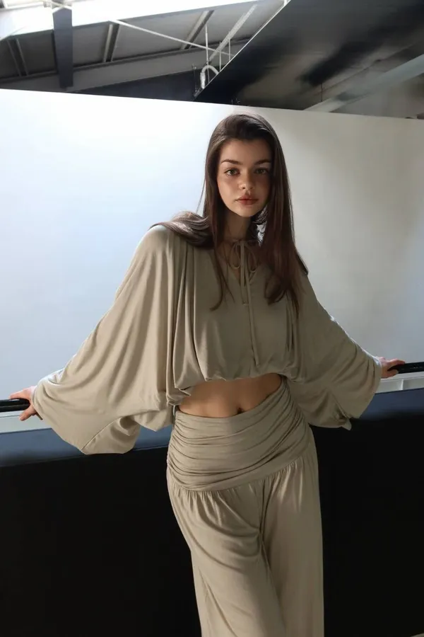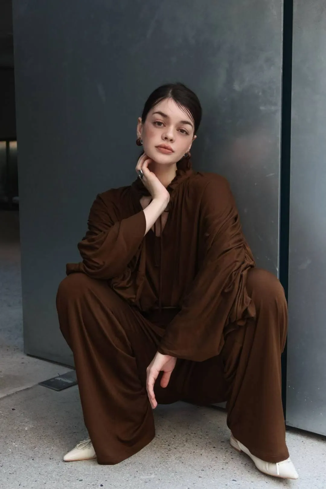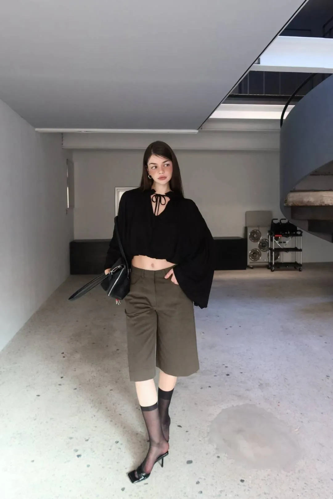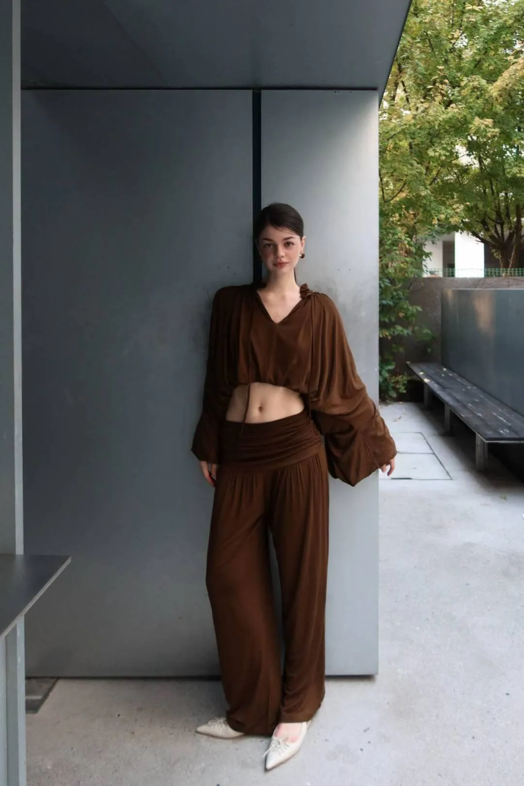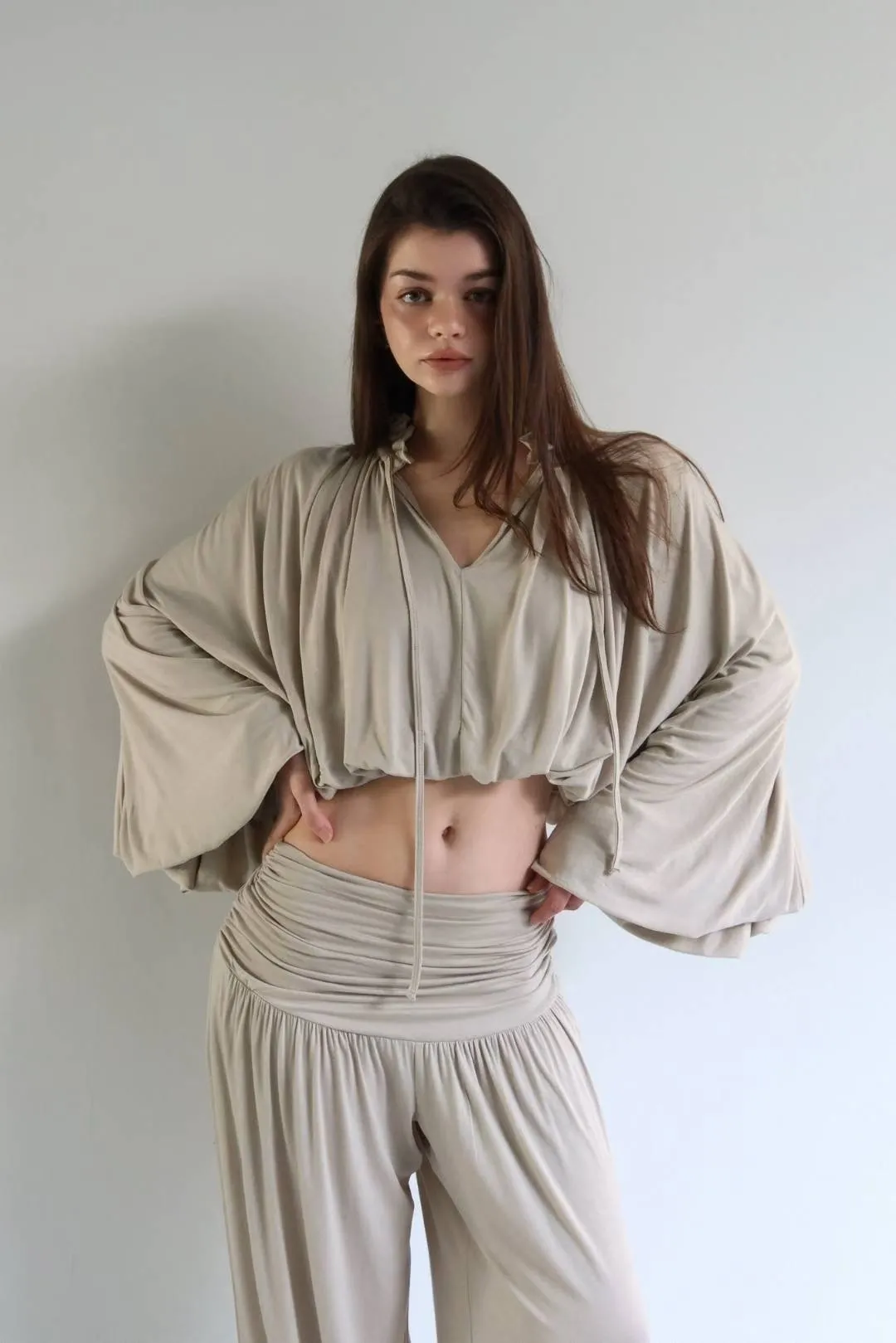 25LF19 綁繩荷葉領垂墜短版上衣 3色