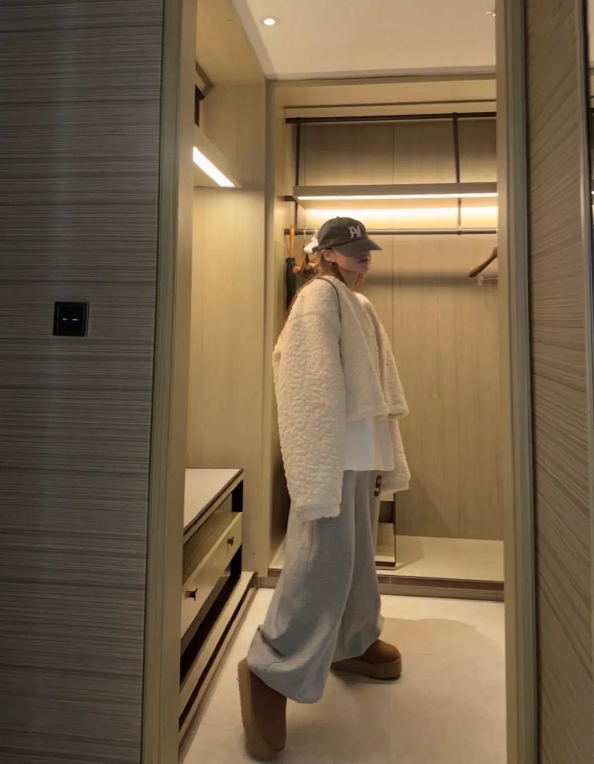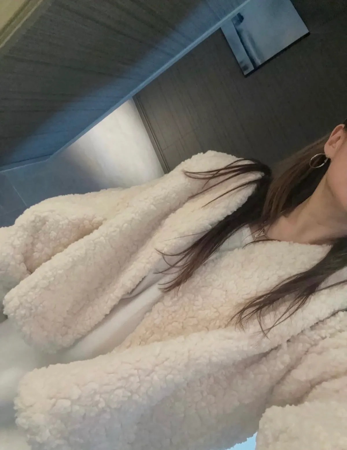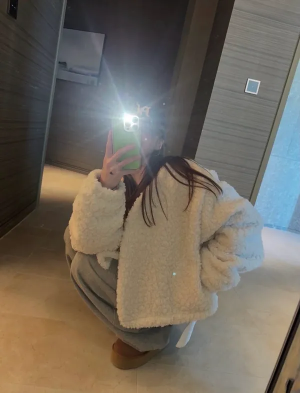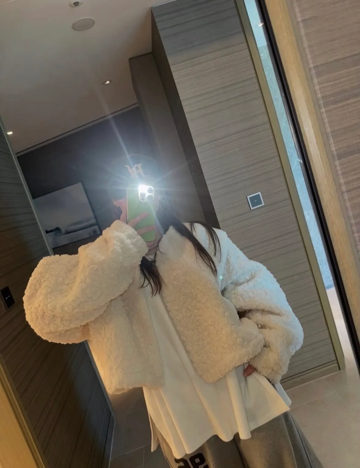25LG11 QQ毛毛無領開襟菱紋夾棉下縮繩外套 2色