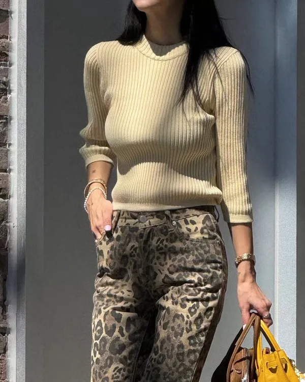 26AC18 坑條羅紋七分袖針織上衣 2色