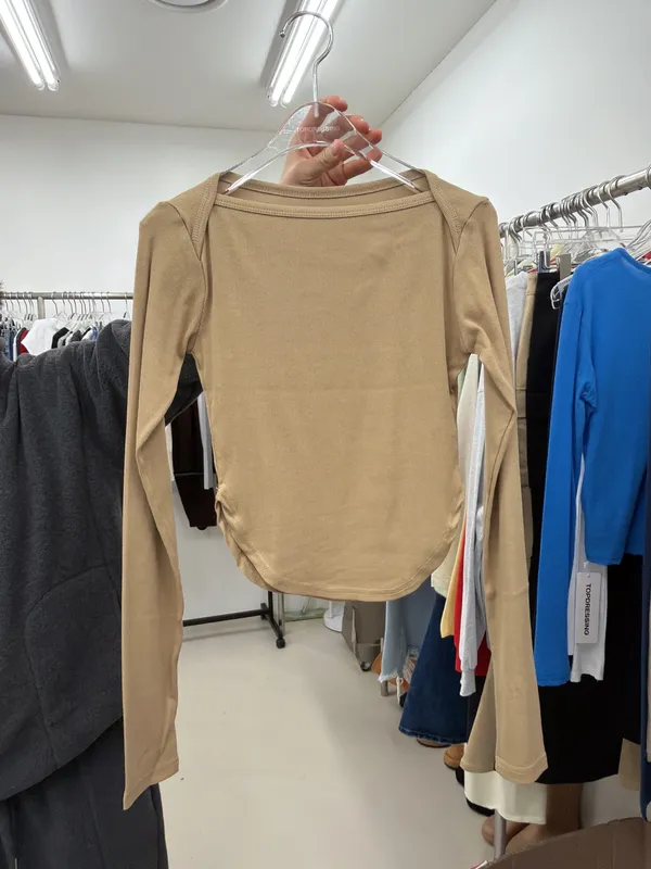 26AC35 交叉肩細羅紋長T 3色