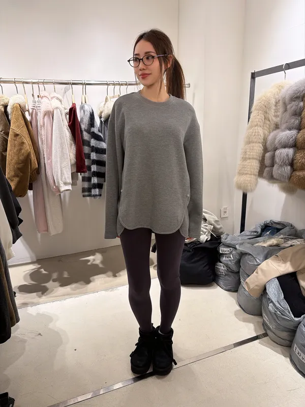 26AE04 高質感挺料側邊鈕扣開岔厚絨長T