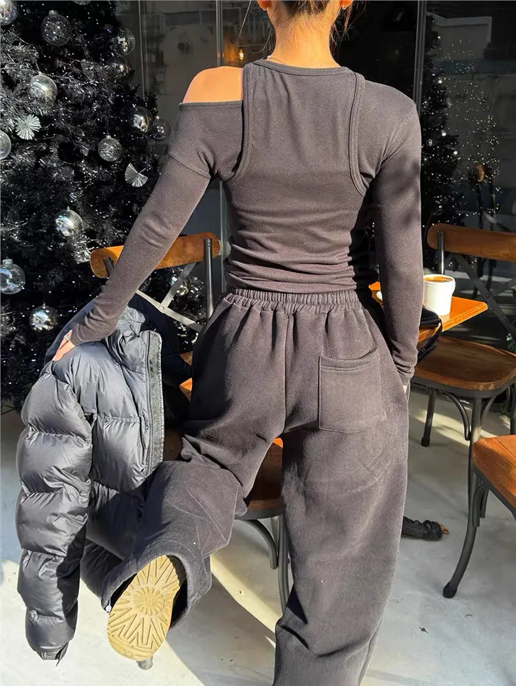 26AF11 真兩件削肩背心+斜船領長T 2色