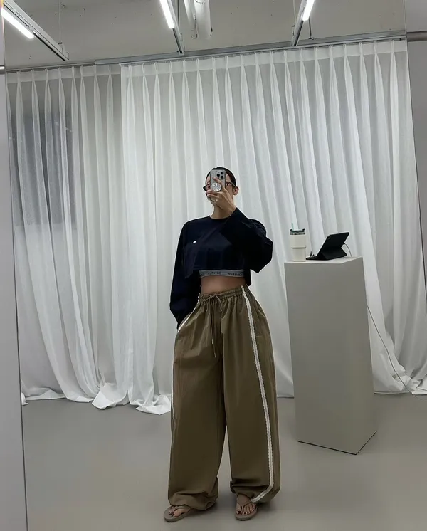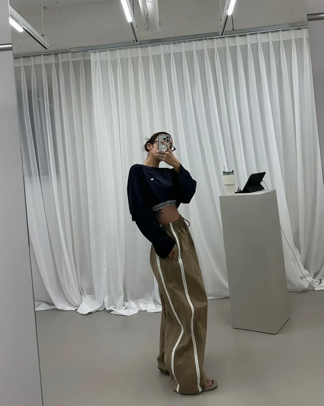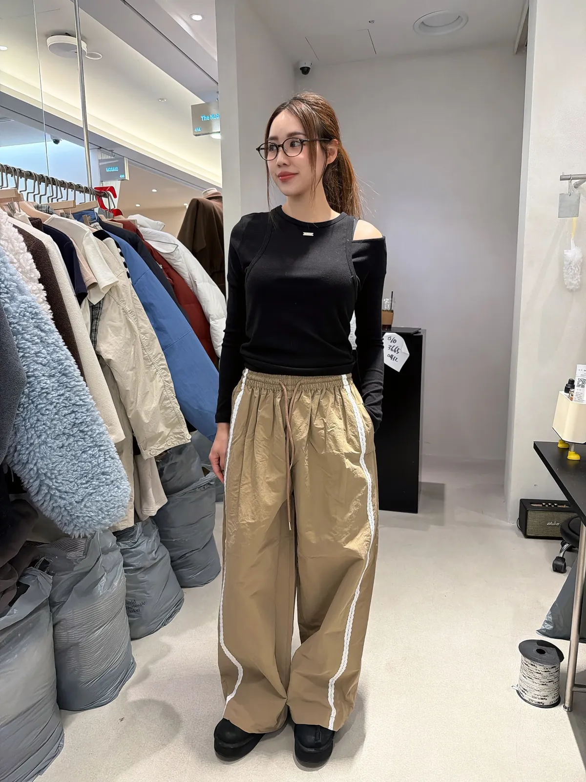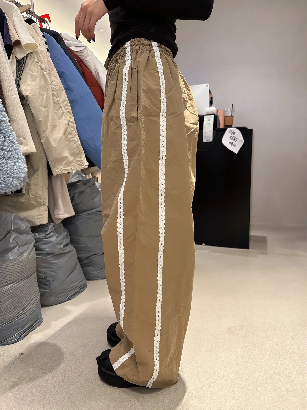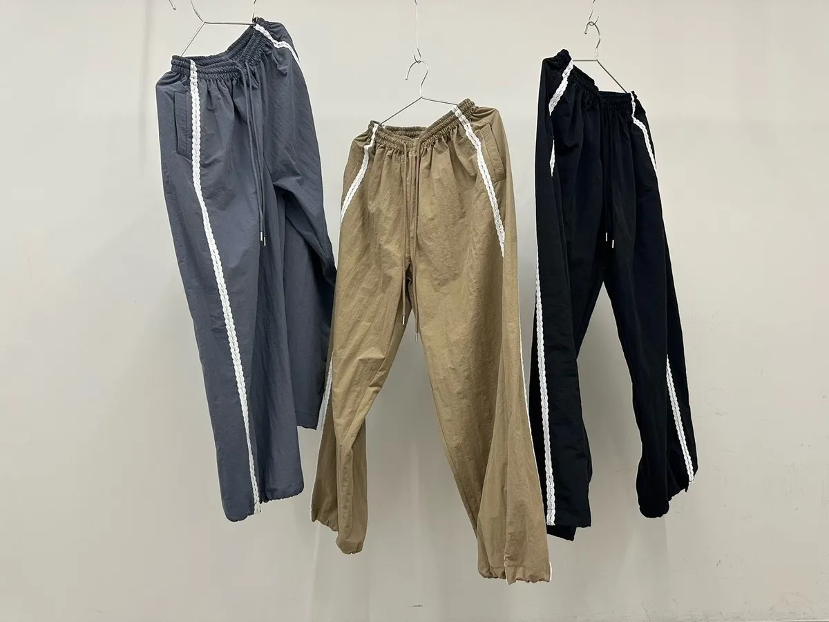 26AF12 特價)側蕾絲兩穿縮腳滑料休閒長褲
