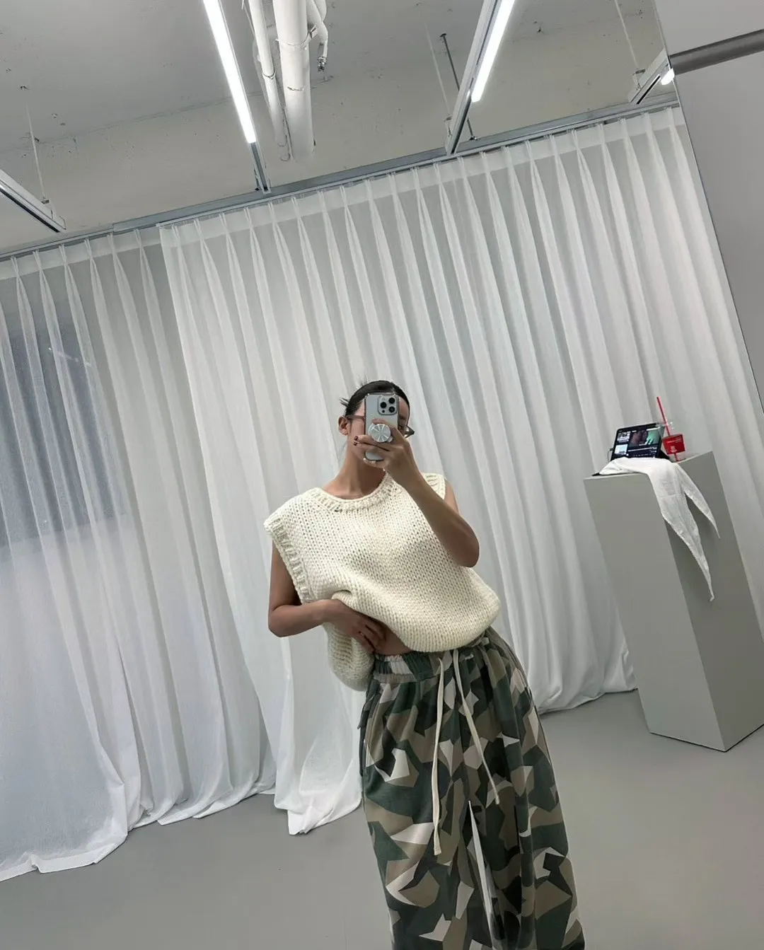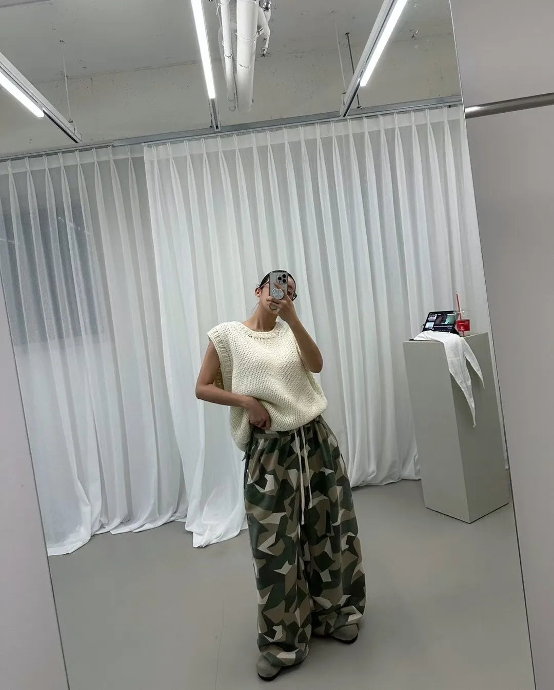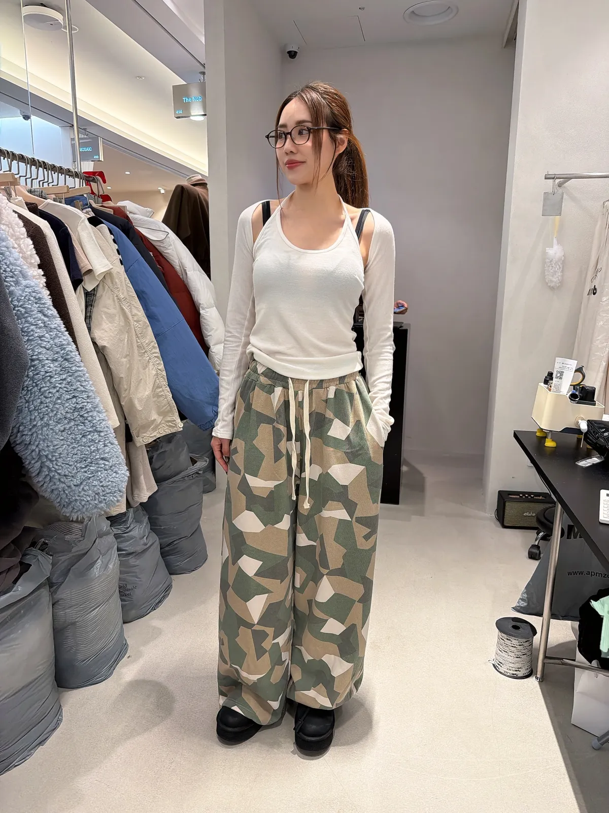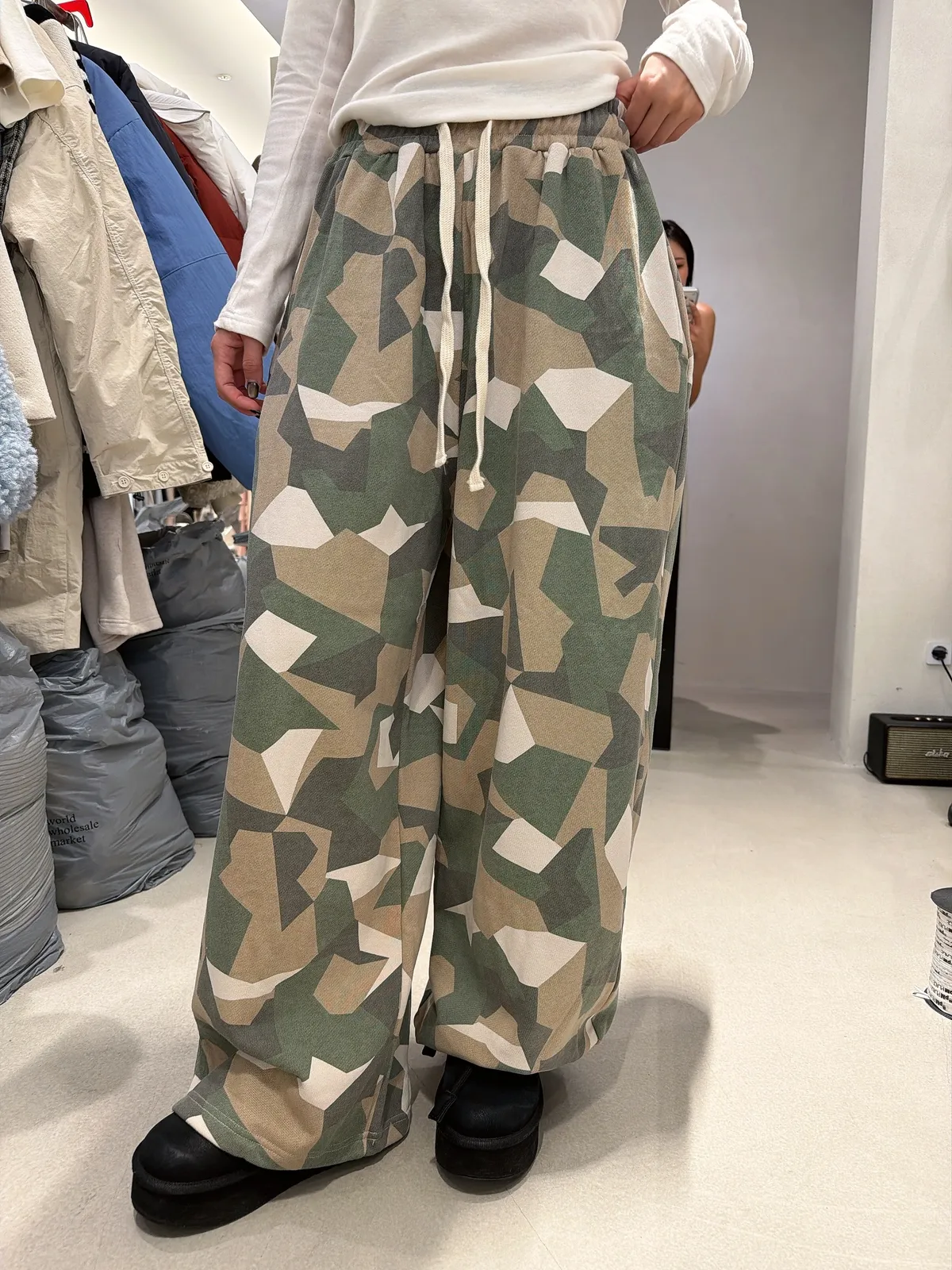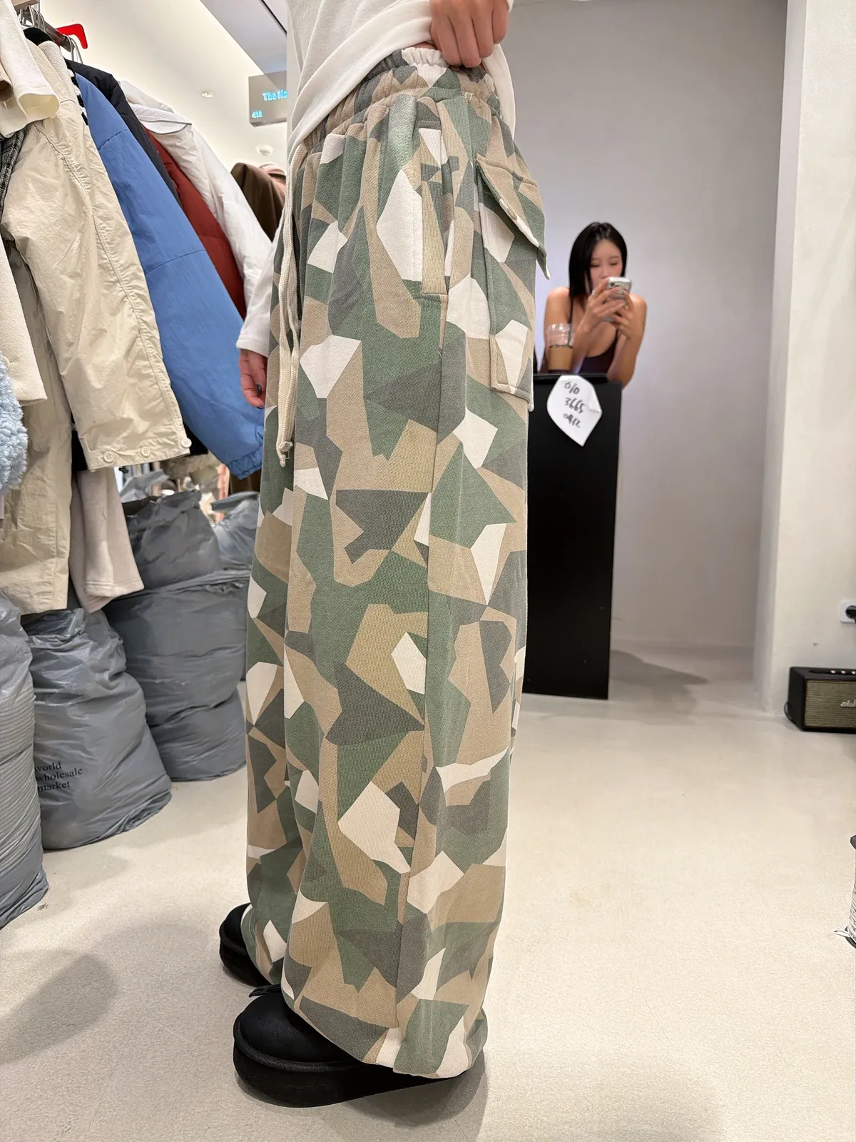 26AF15 特價)薄毛巾兩穿縮腳迷彩長棉褲 2色