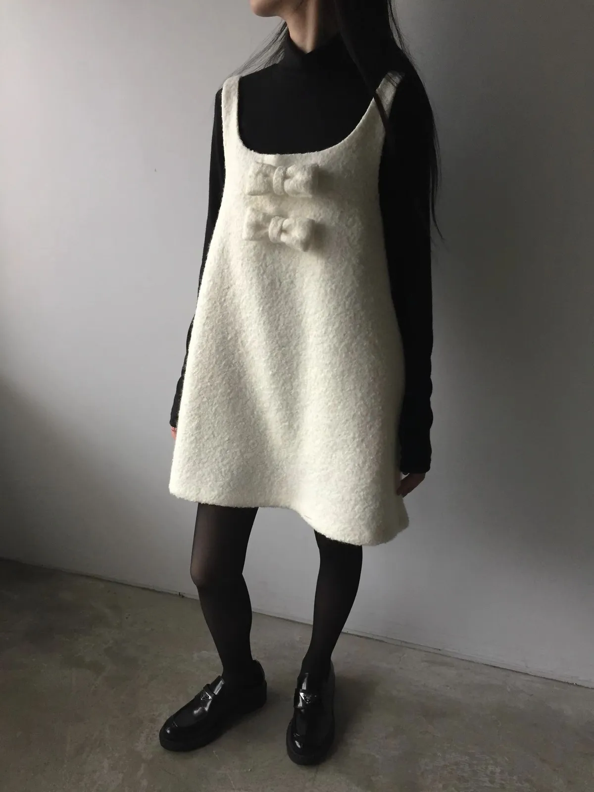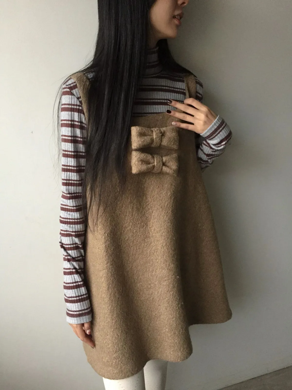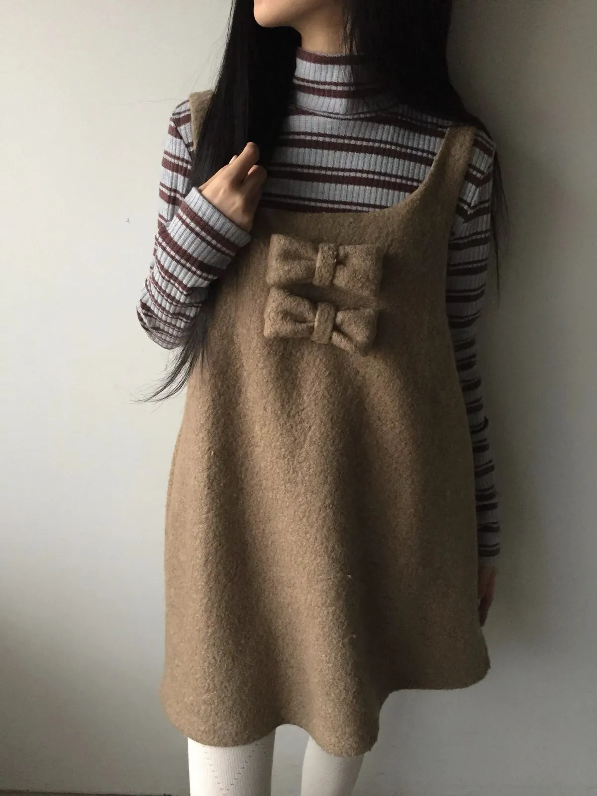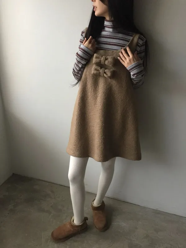 26AS10 (付蝴蝶結)羊毛尼背心連身短洋裝 2色