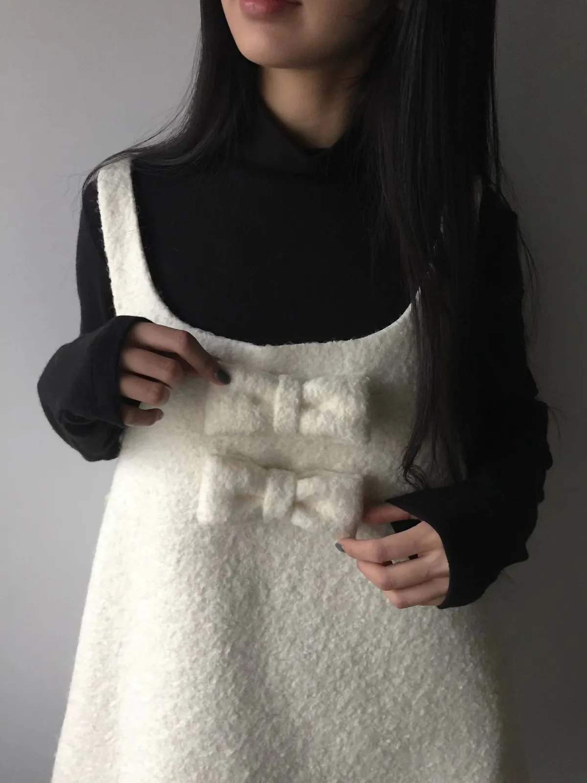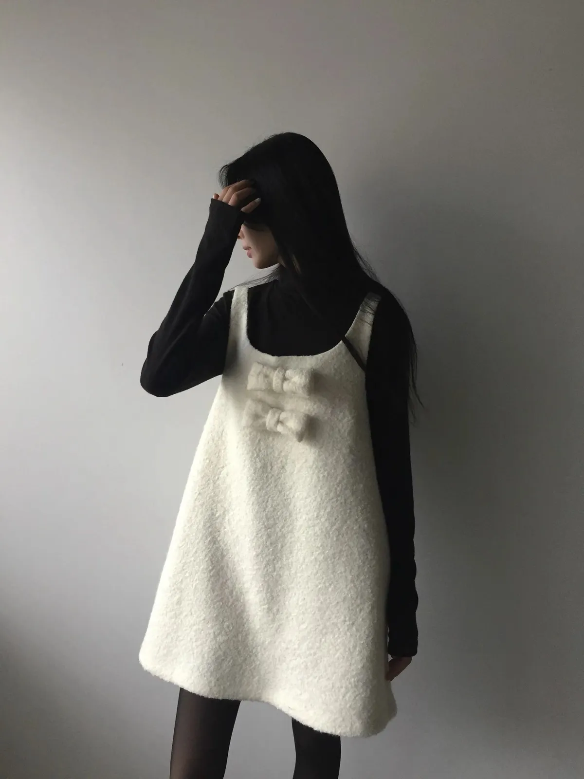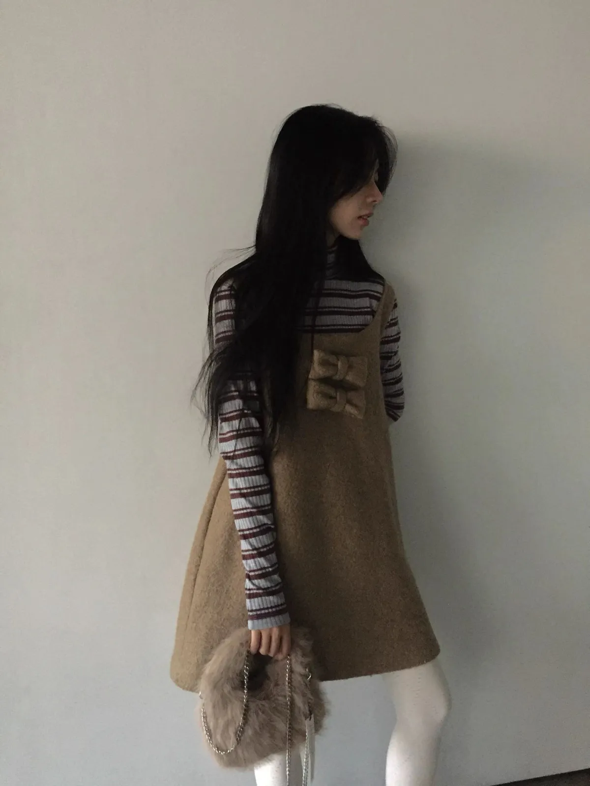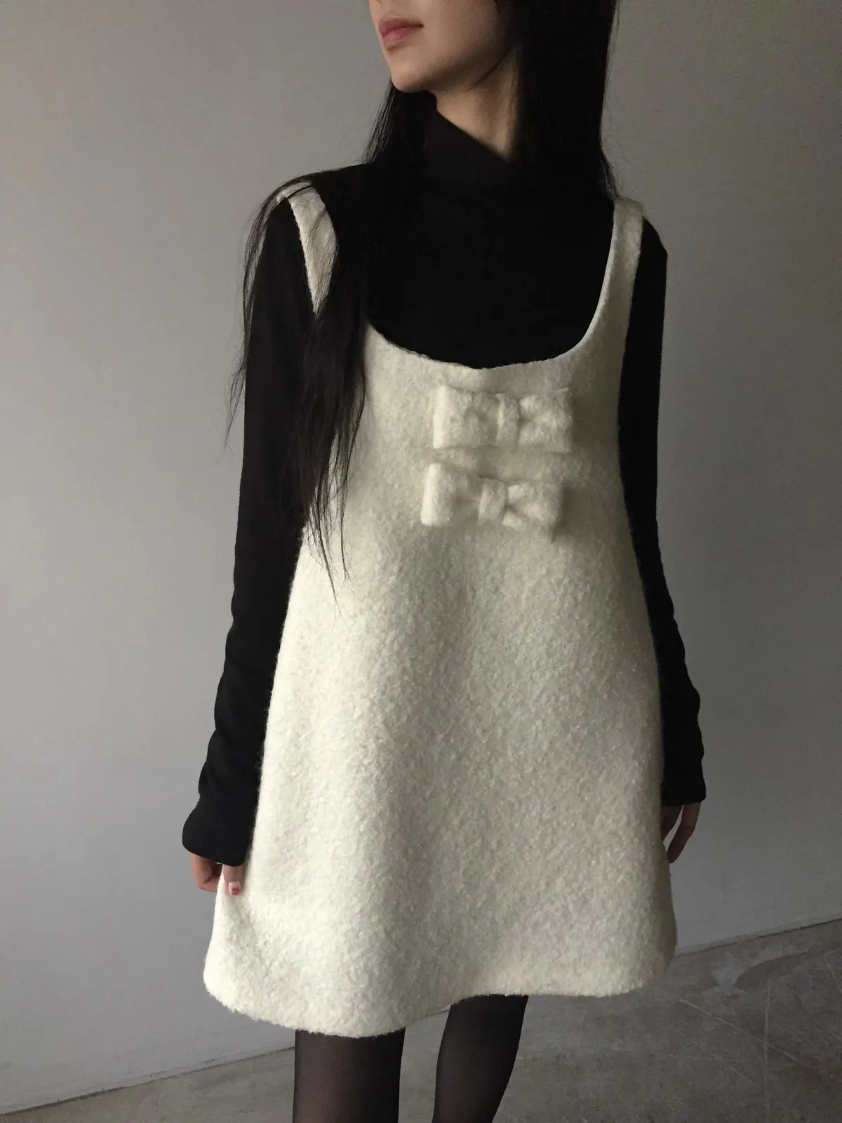 26AS10 (付蝴蝶結)羊毛尼背心連身短洋裝 2色