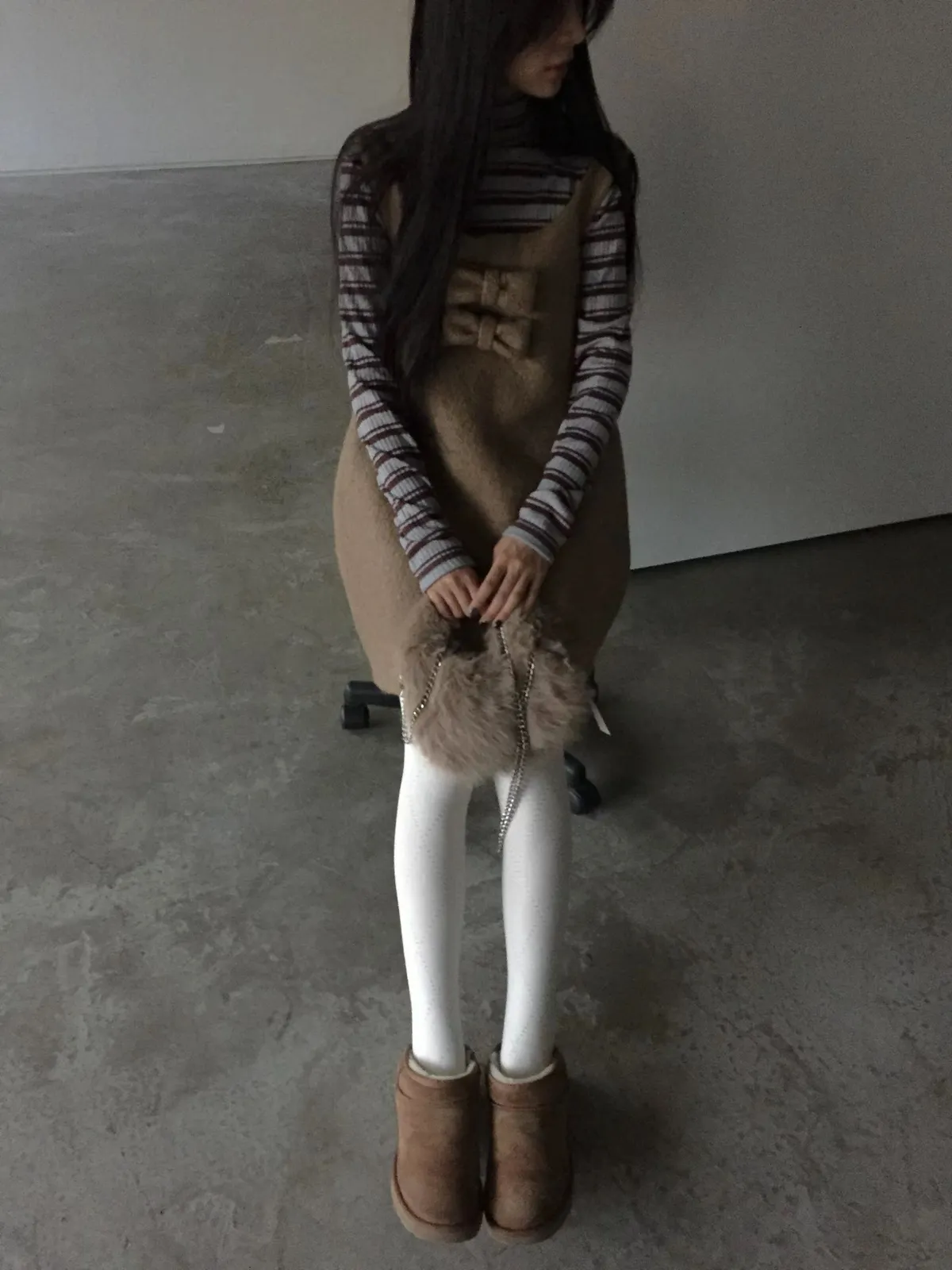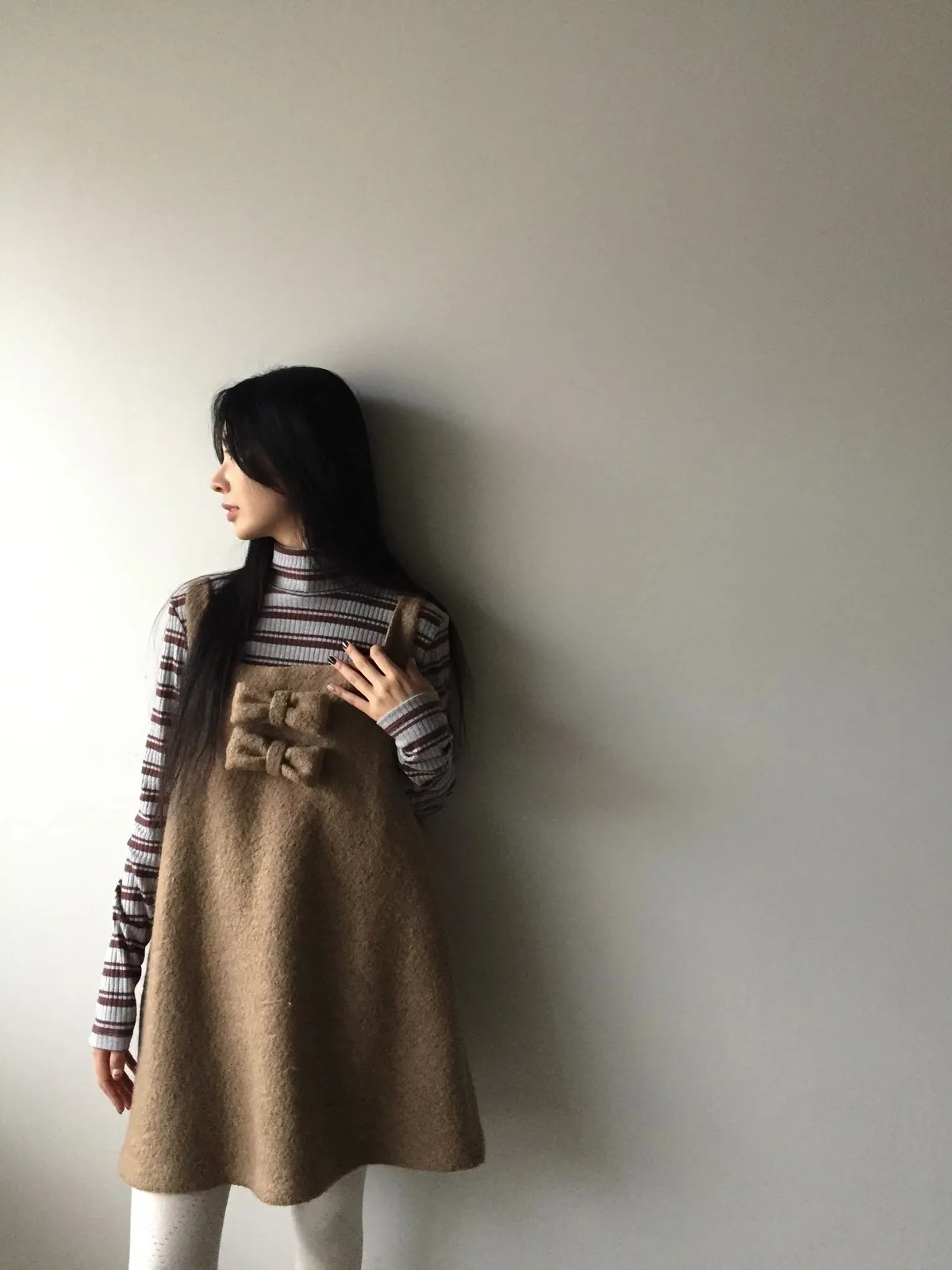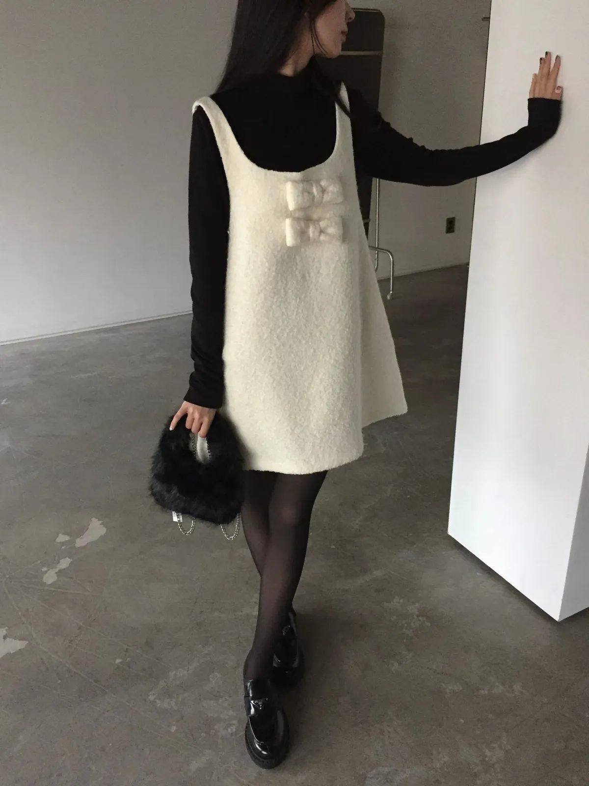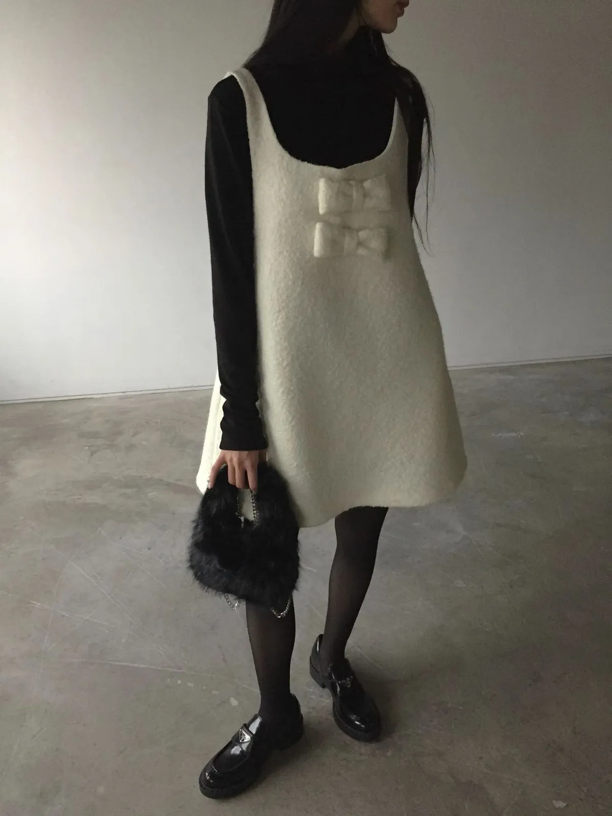 26AS10 (付蝴蝶結)羊毛尼背心連身短洋裝 2色