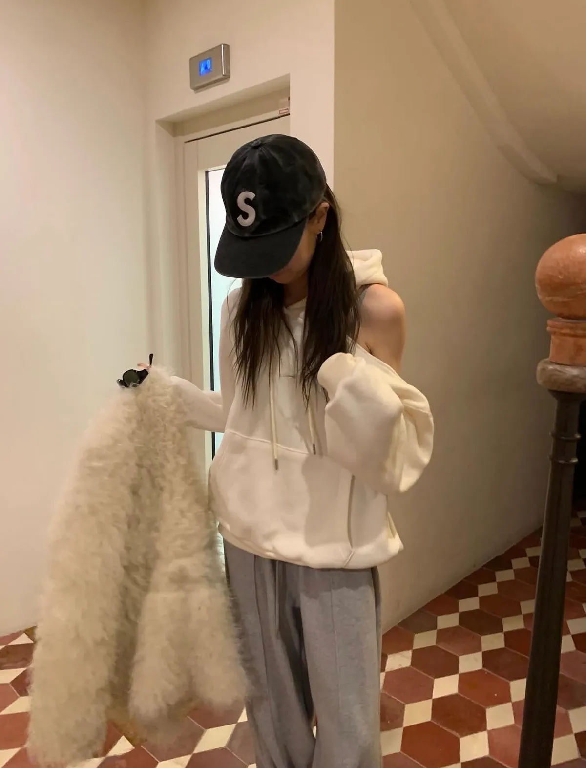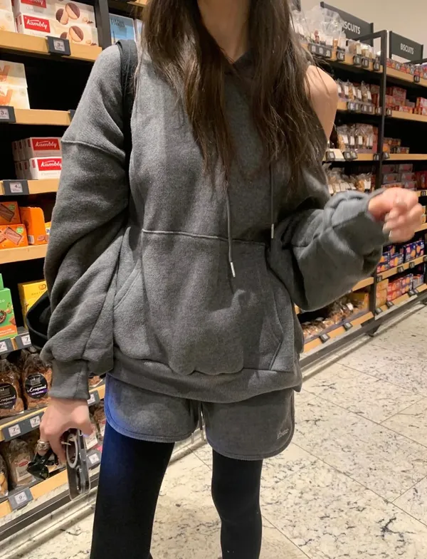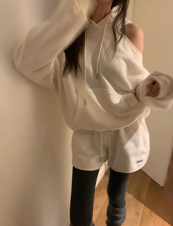 26AS12 壓縮絨感露肩連帽大學T 2色