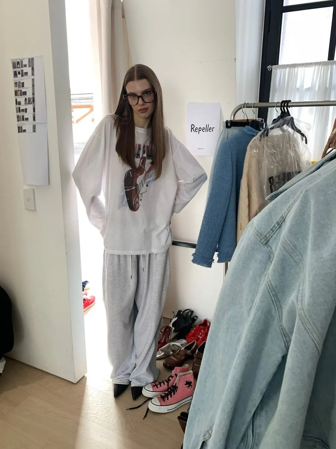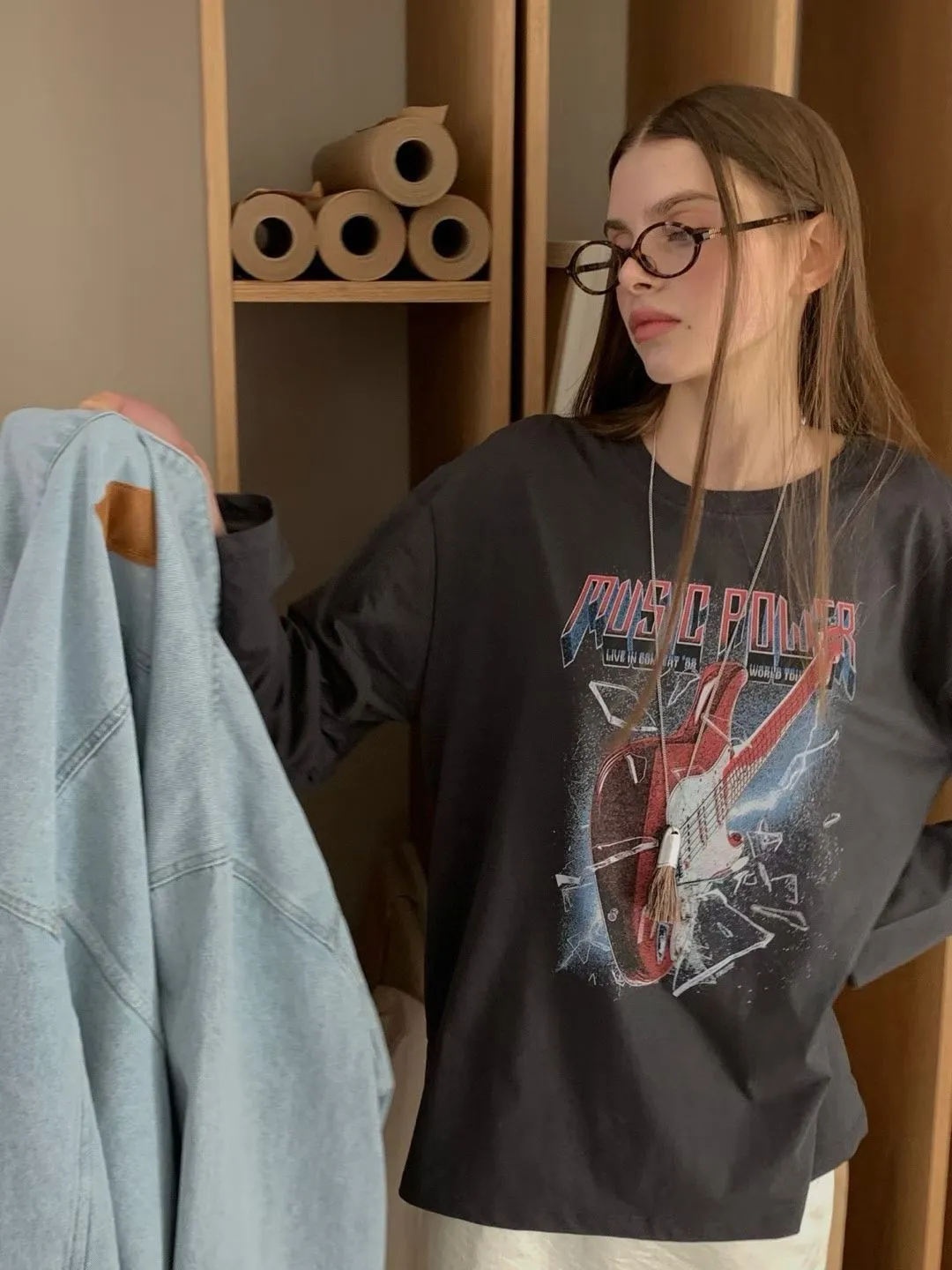 26AS25 春新款)搖滾電吉他寬鬆長T 2色