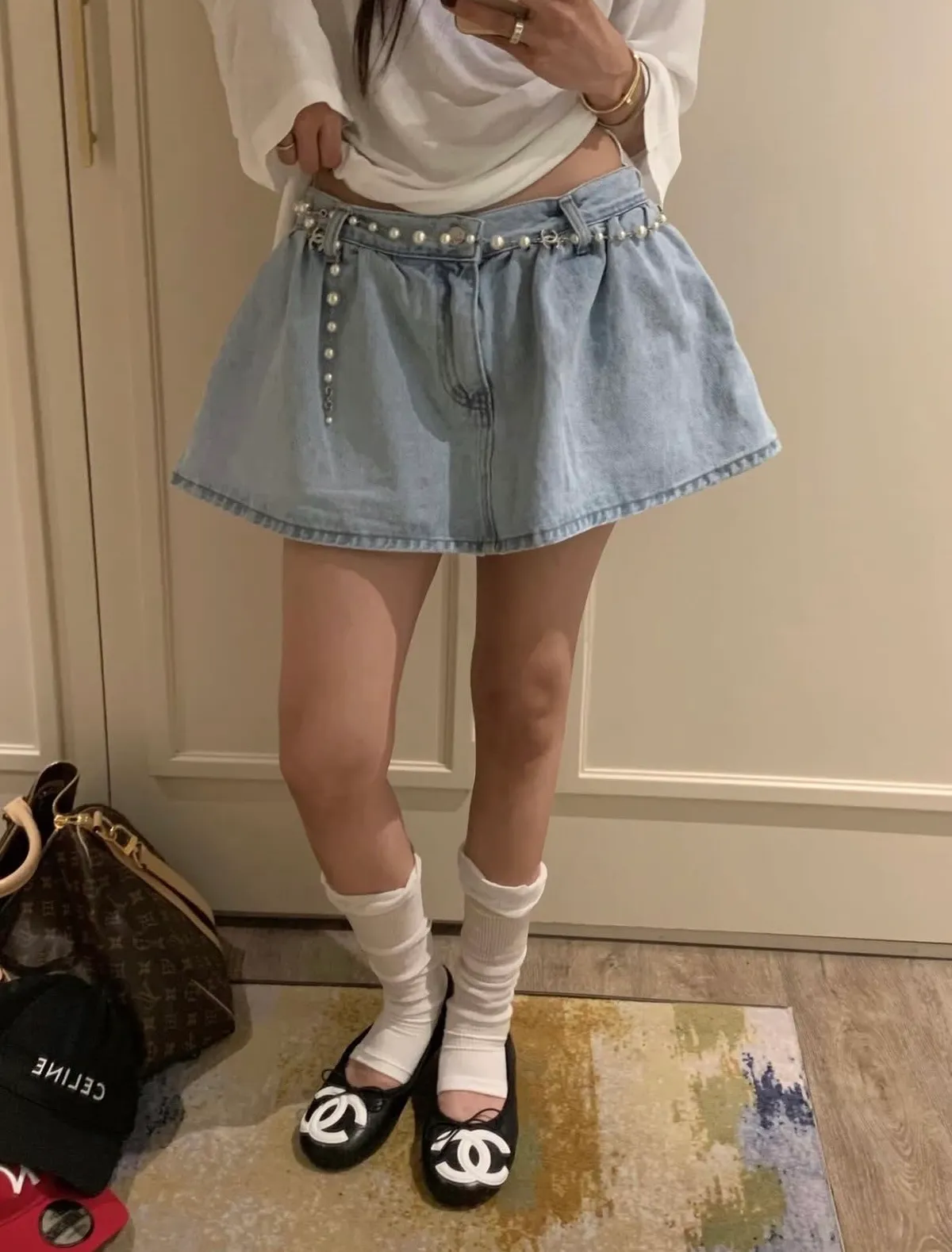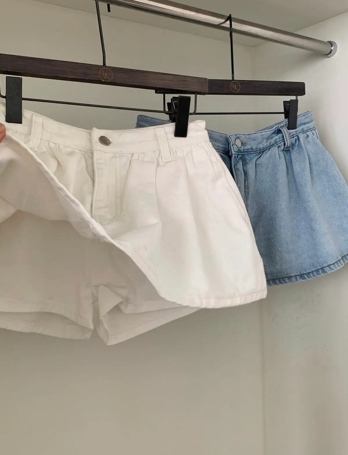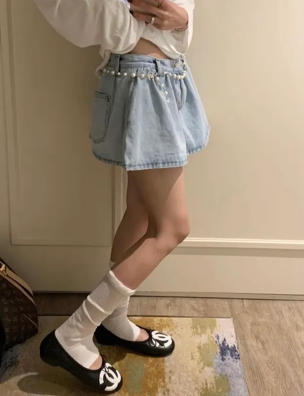 26BB15 中低腰斜紋牛仔荷葉小短褲裙 2色 SML