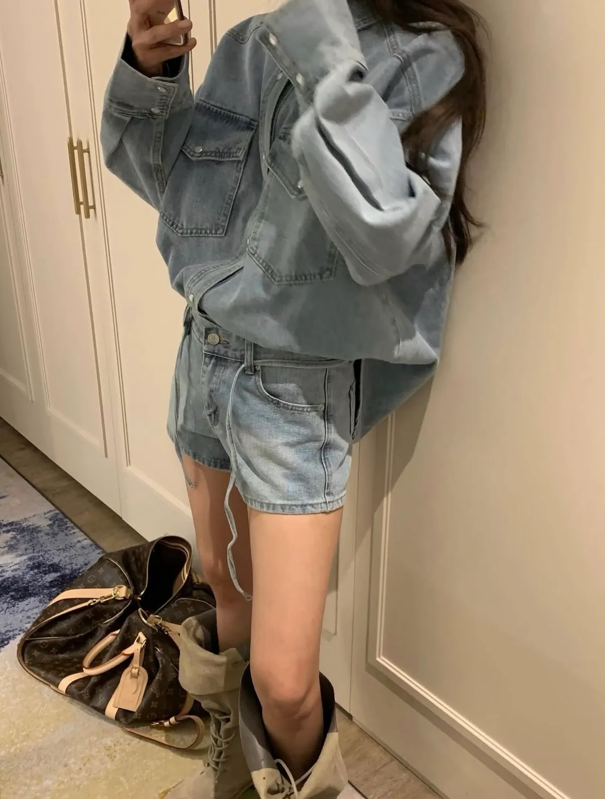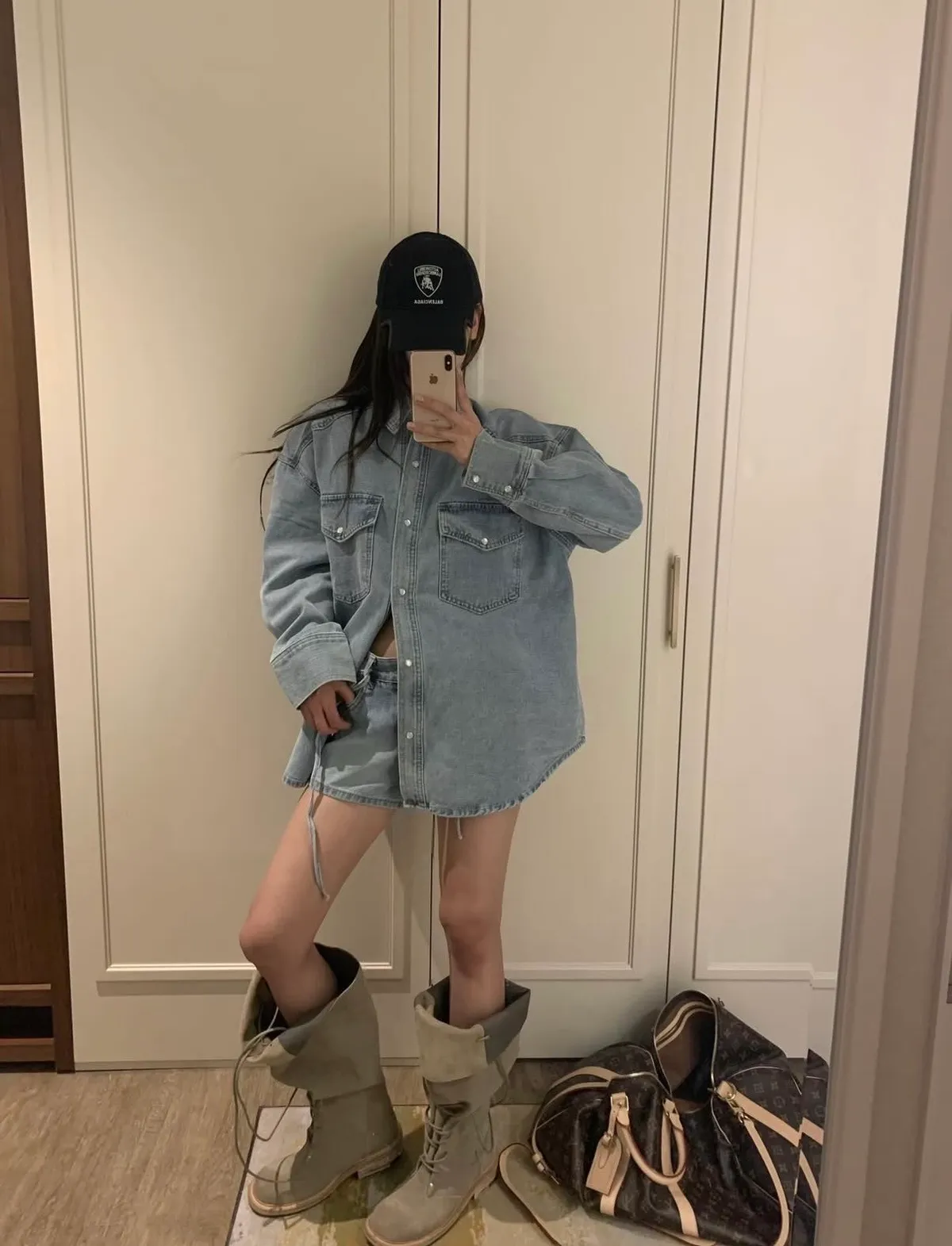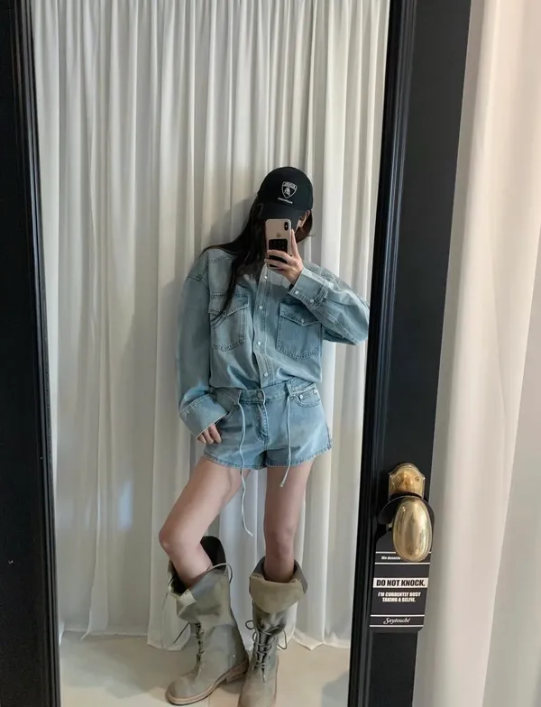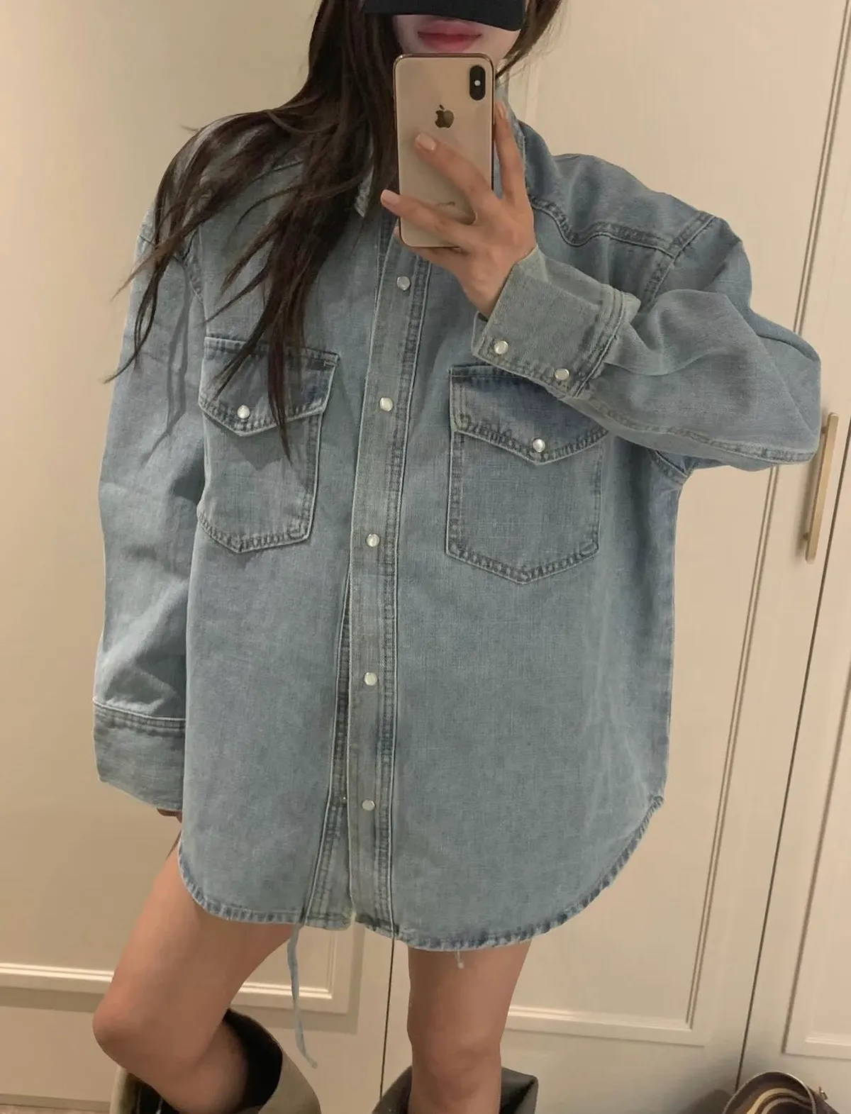 26BB18 春款)壓釦中長版牛仔襯衫