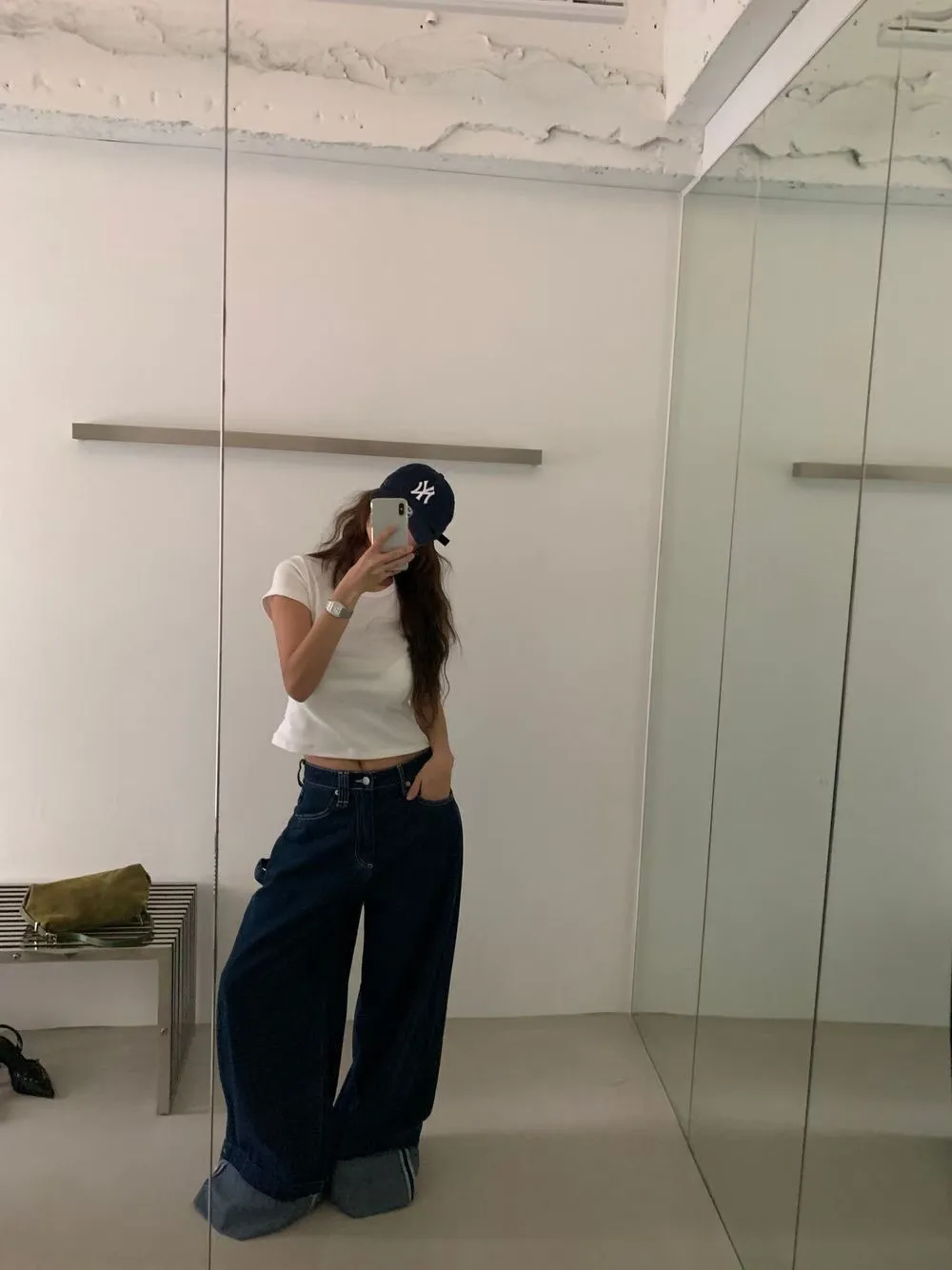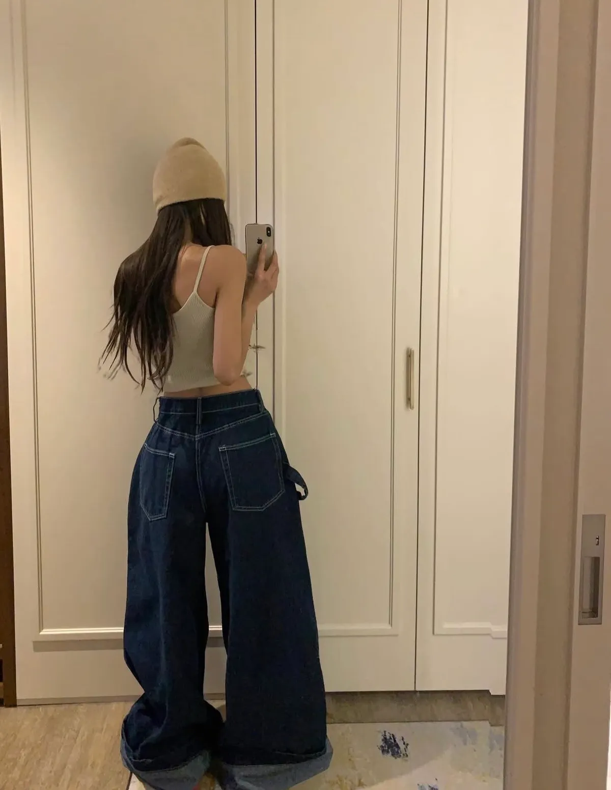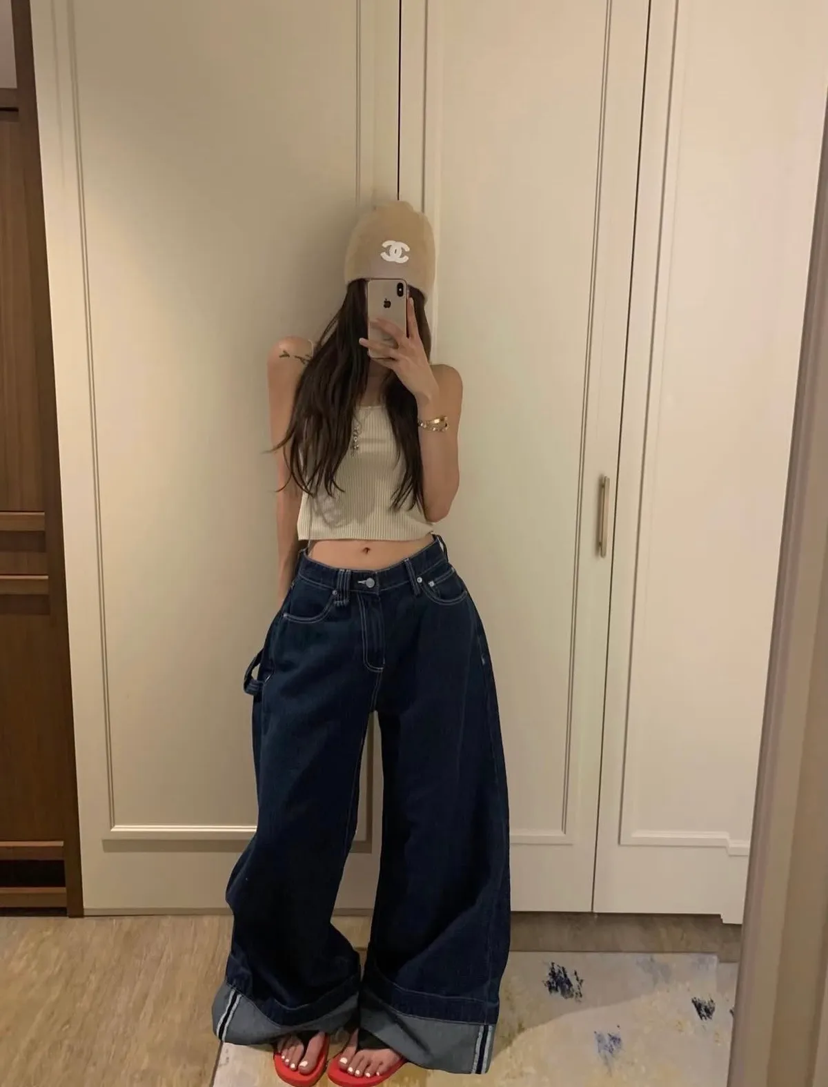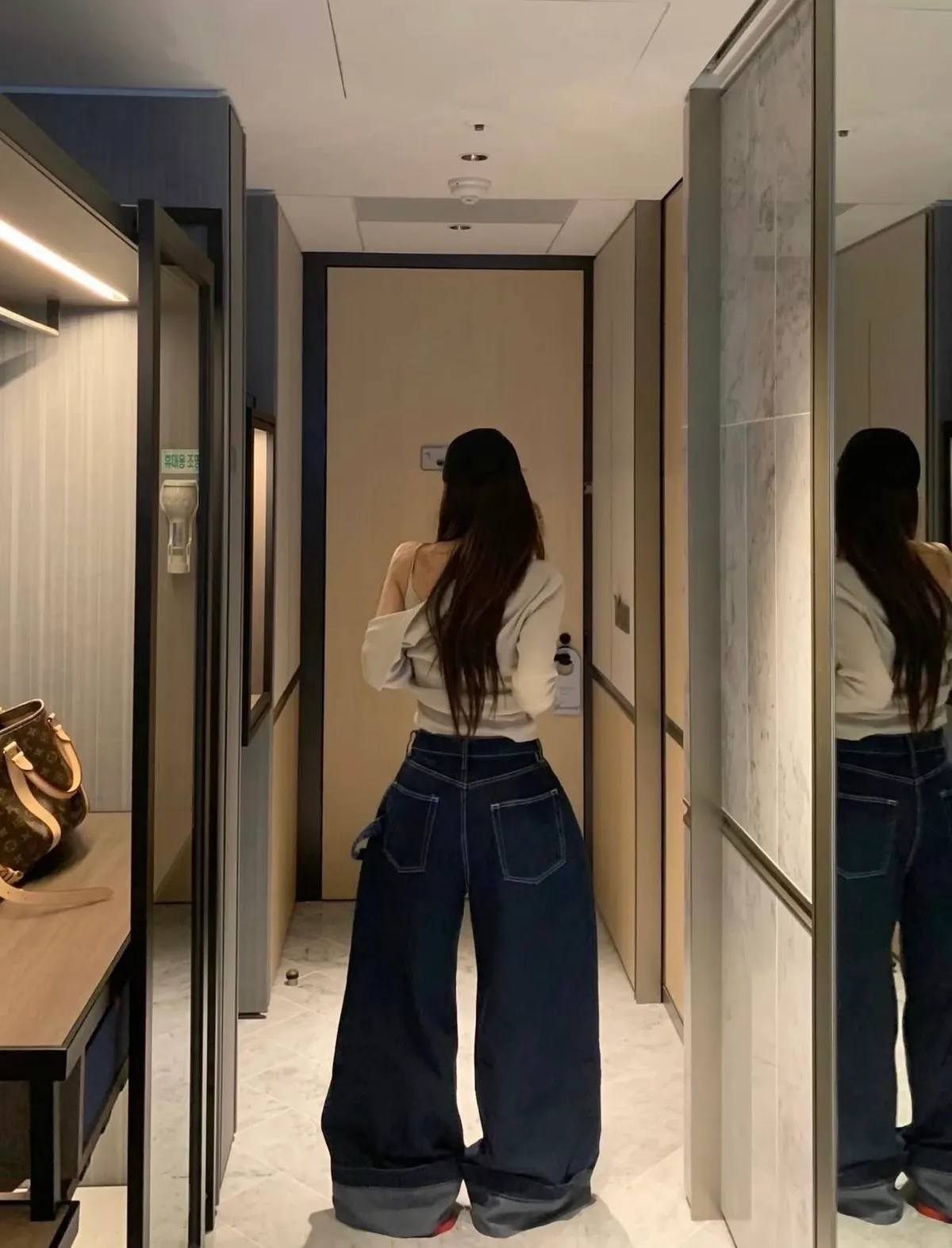 26BB28 闆娘自留)秀玄同款原色牛仔寬管長褲 SML