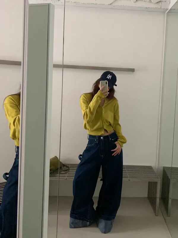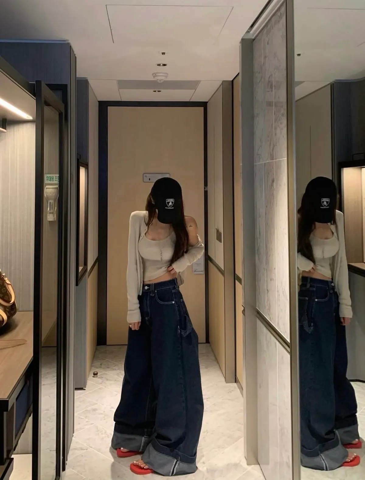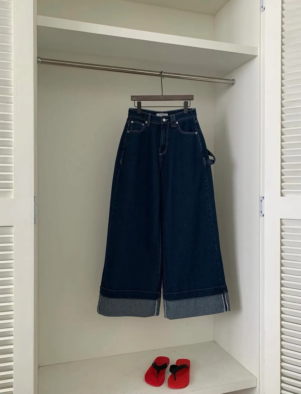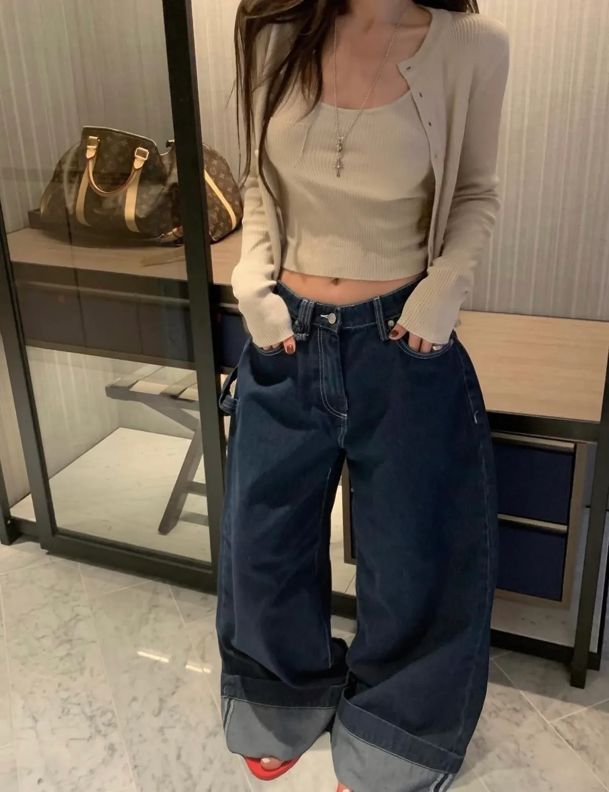 26BB28 闆娘自留)秀玄同款原色牛仔寬管長褲 SML