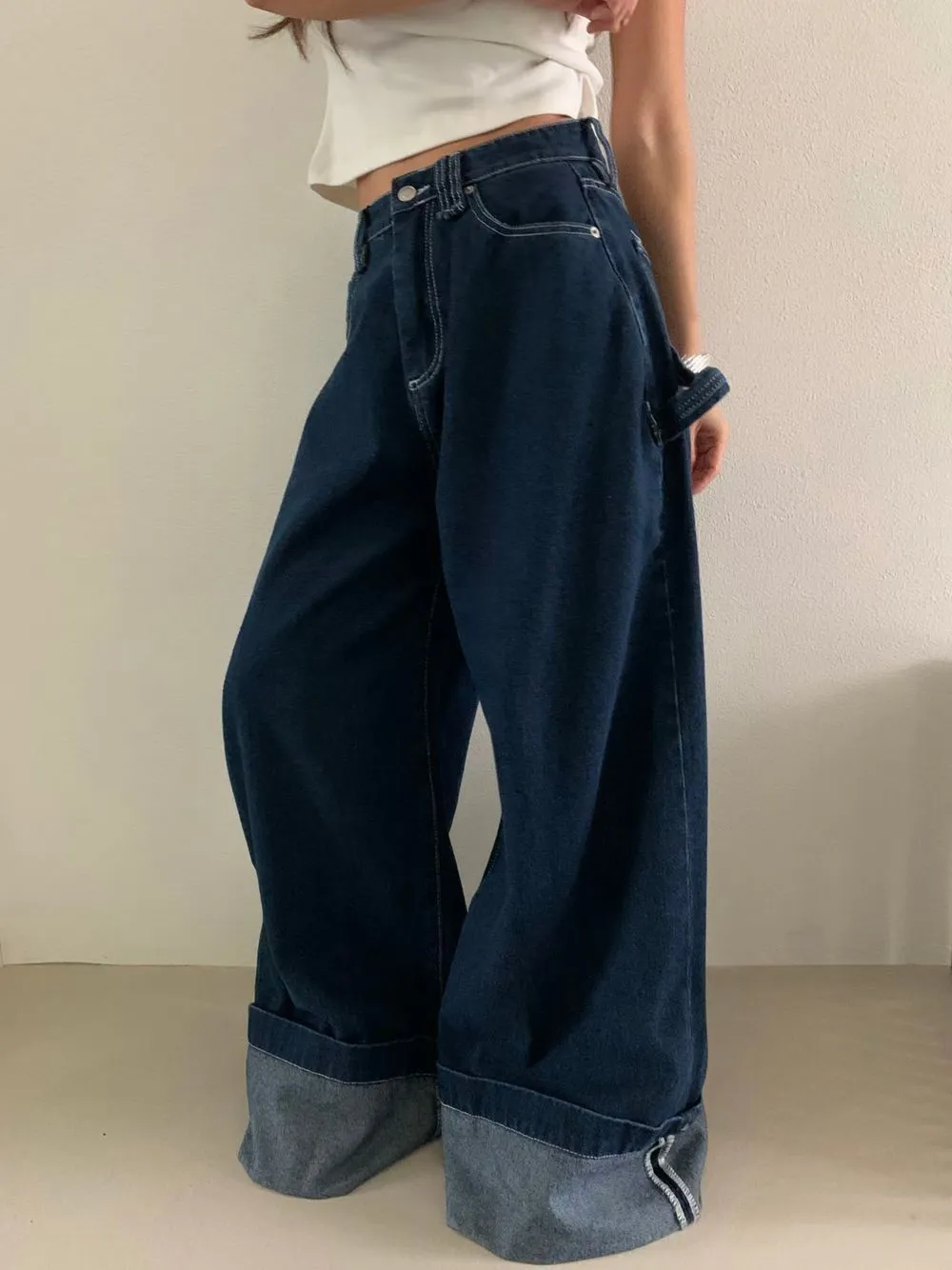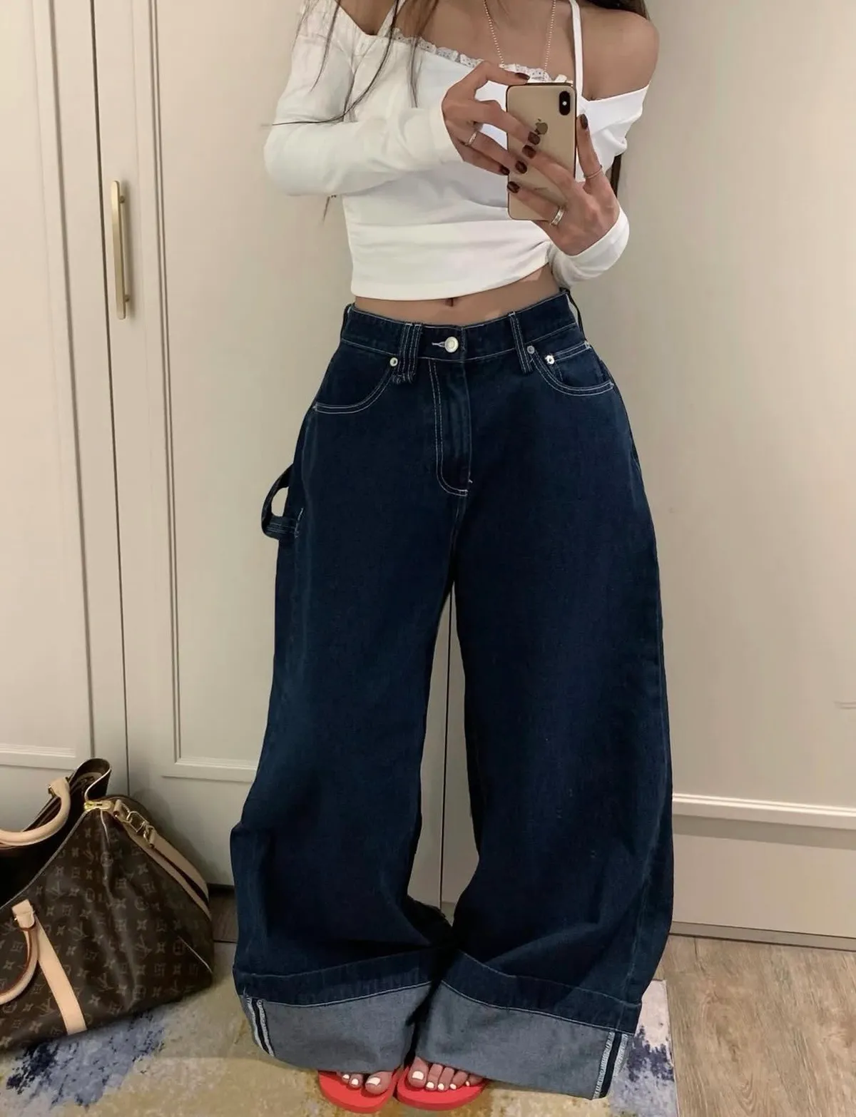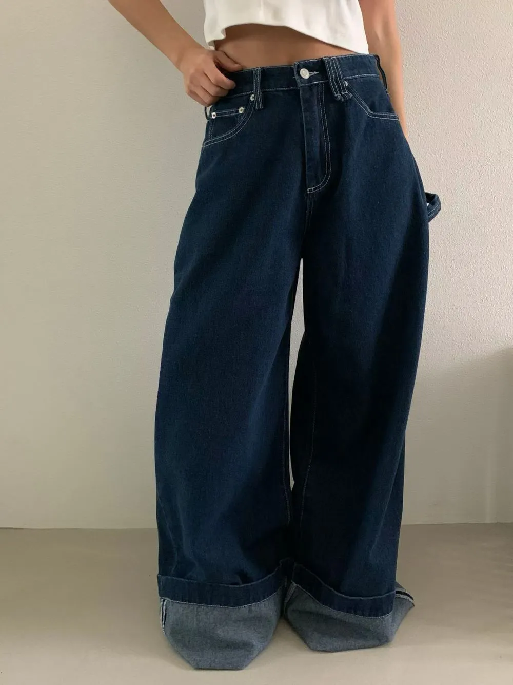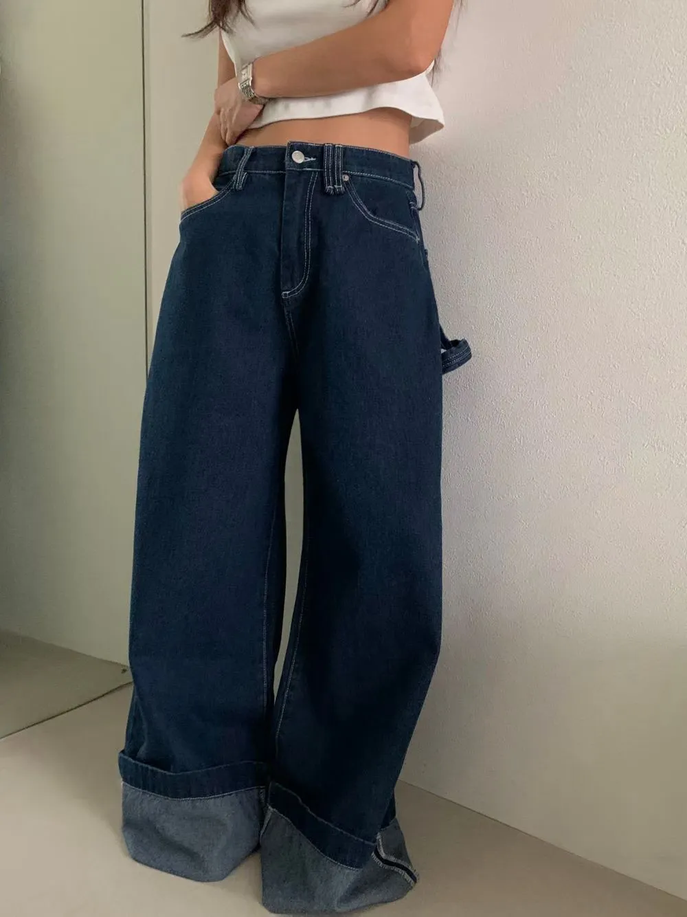 26BB28 闆娘自留)秀玄同款原色牛仔寬管長褲 SML