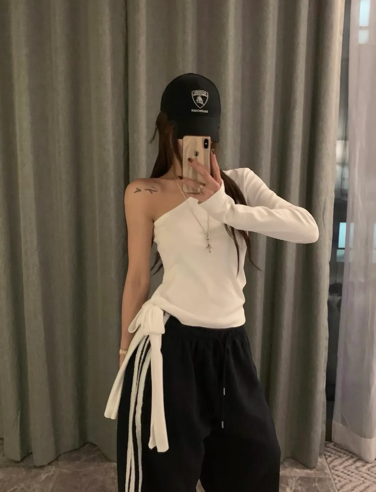 26BB38 單肩設計造型腰綁上衣 2色