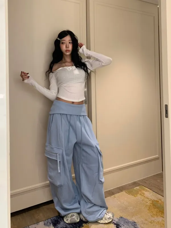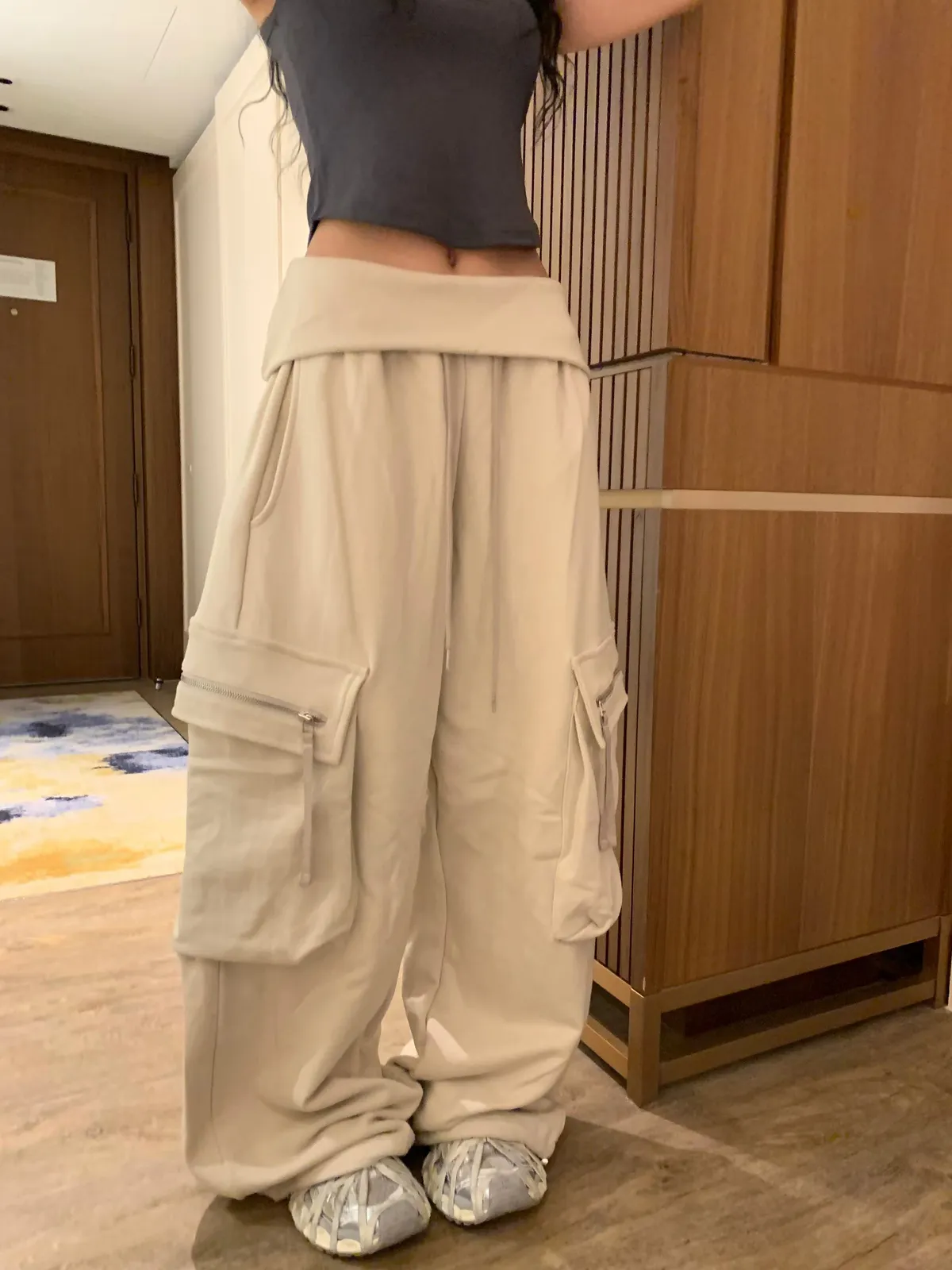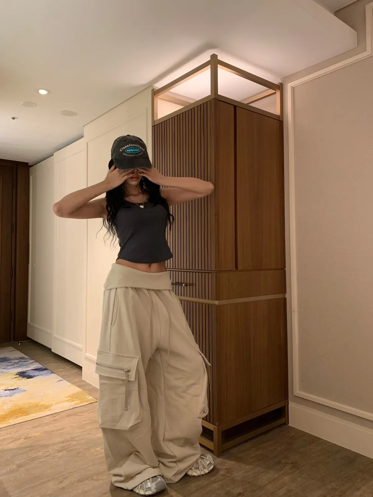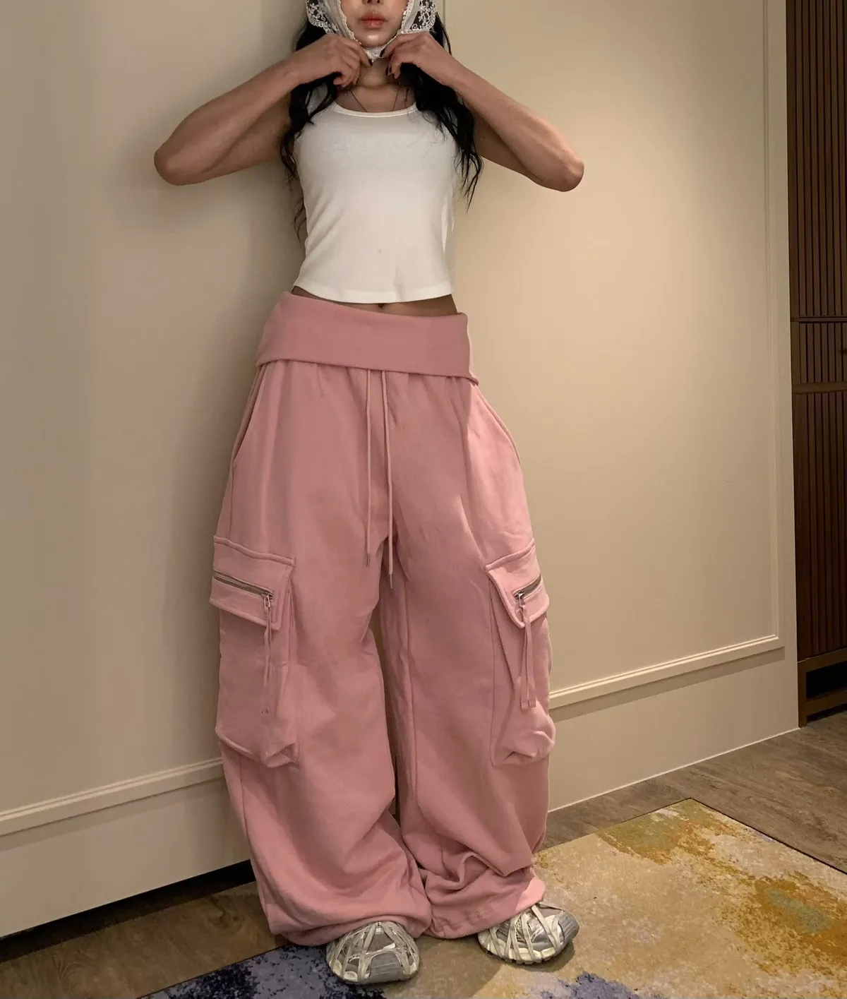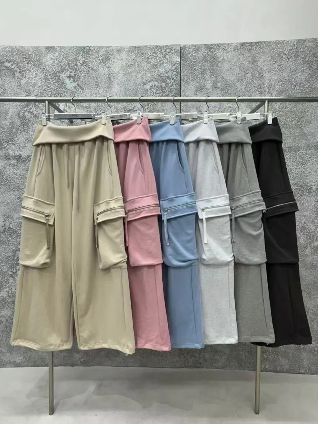 26BC02 反摺褲頭薄毛巾工裝兩穿縮腳棉長褲 6色