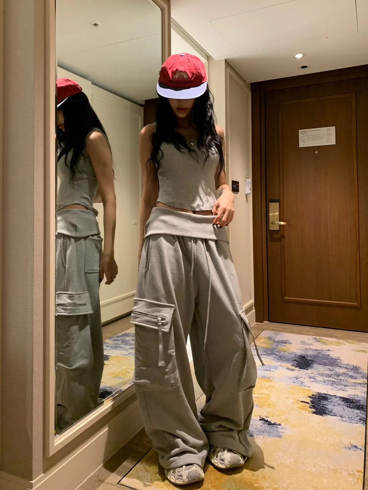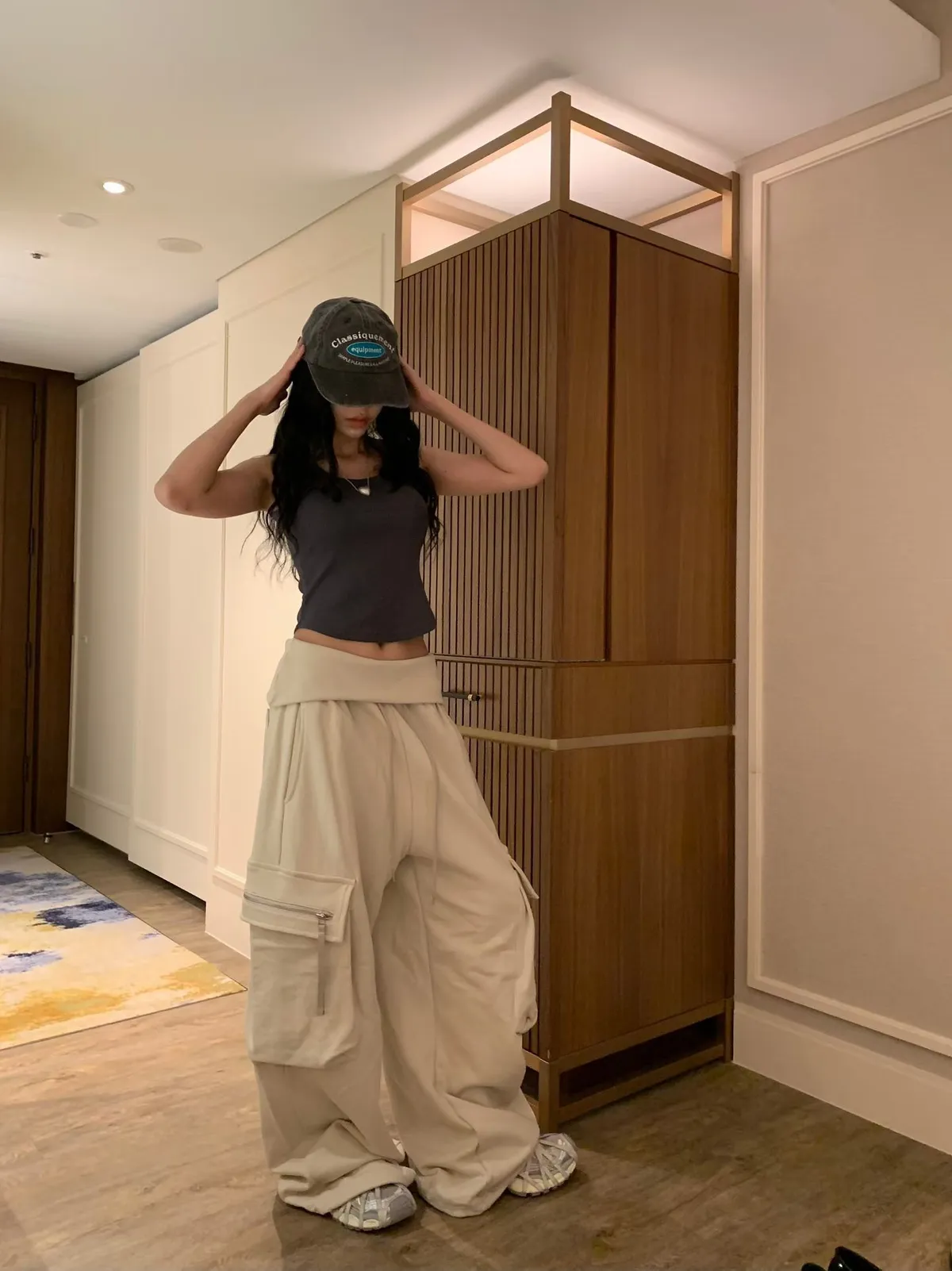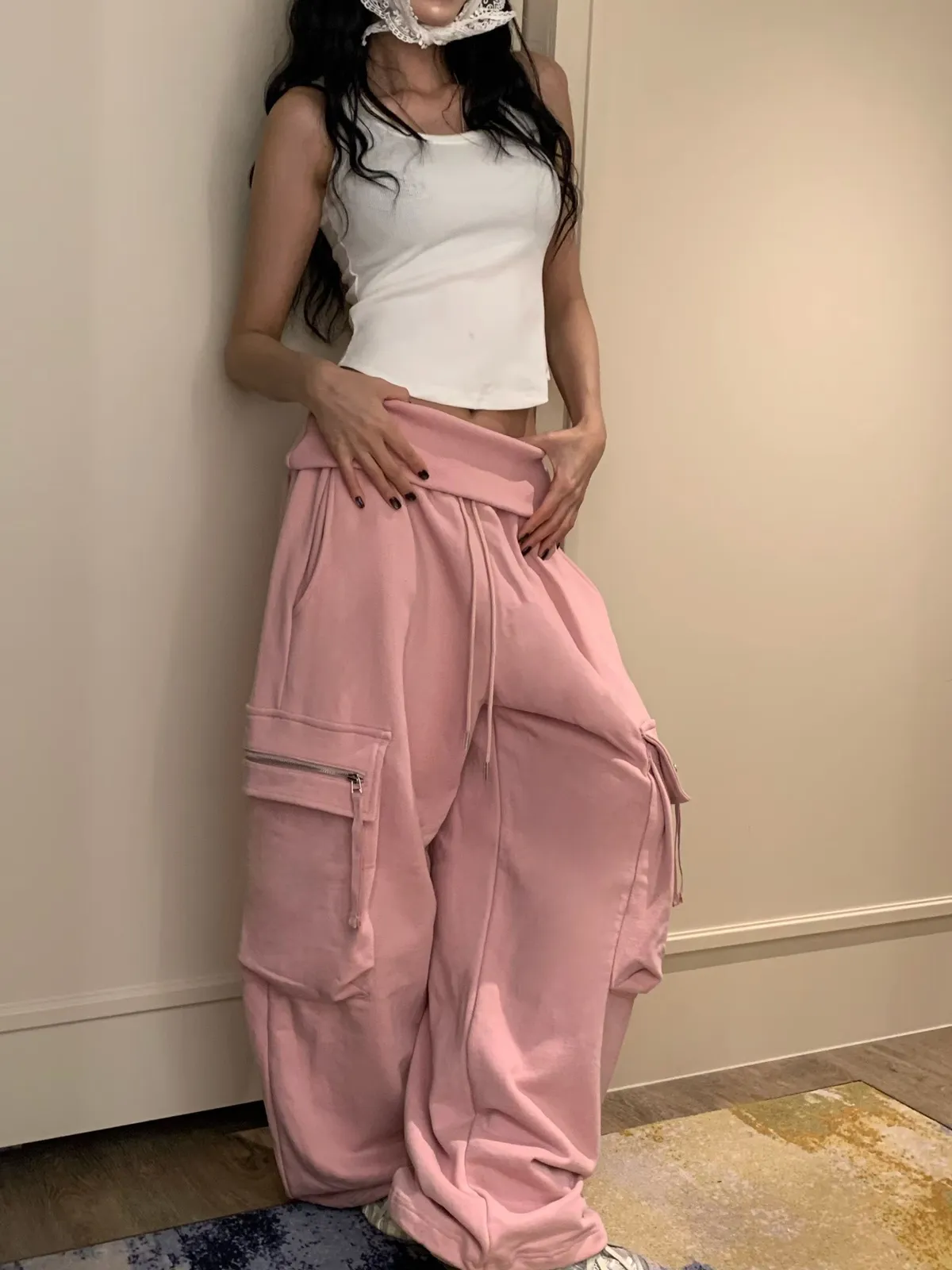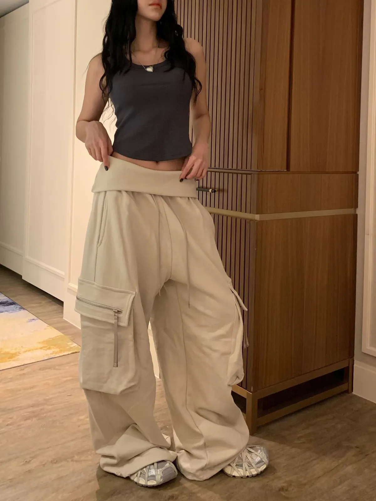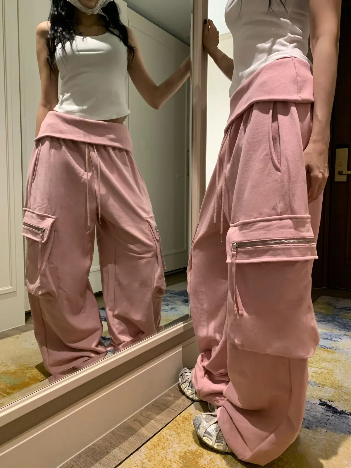 26BC02 反摺褲頭薄毛巾工裝兩穿縮腳棉長褲 6色