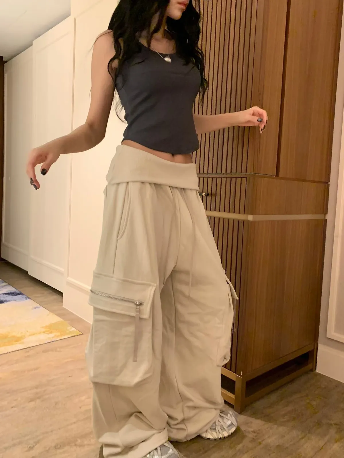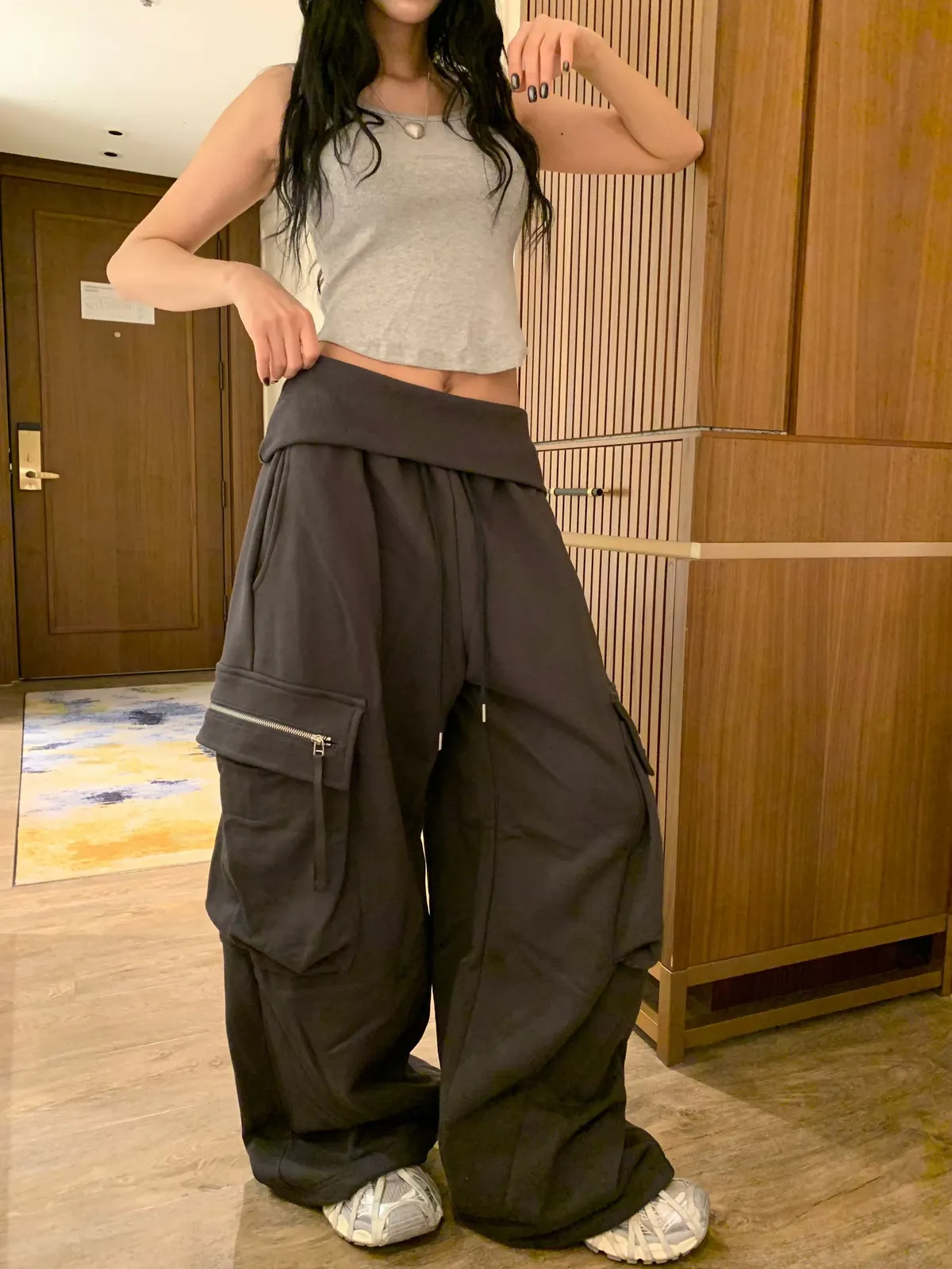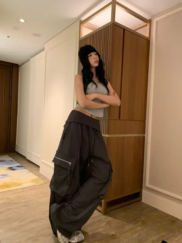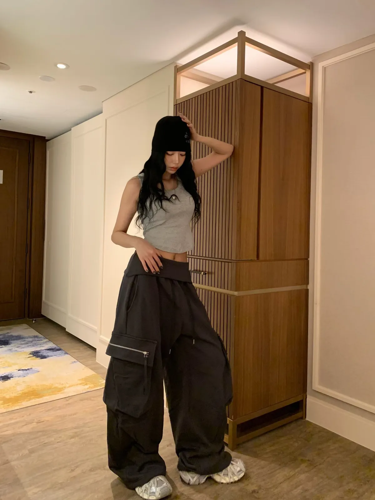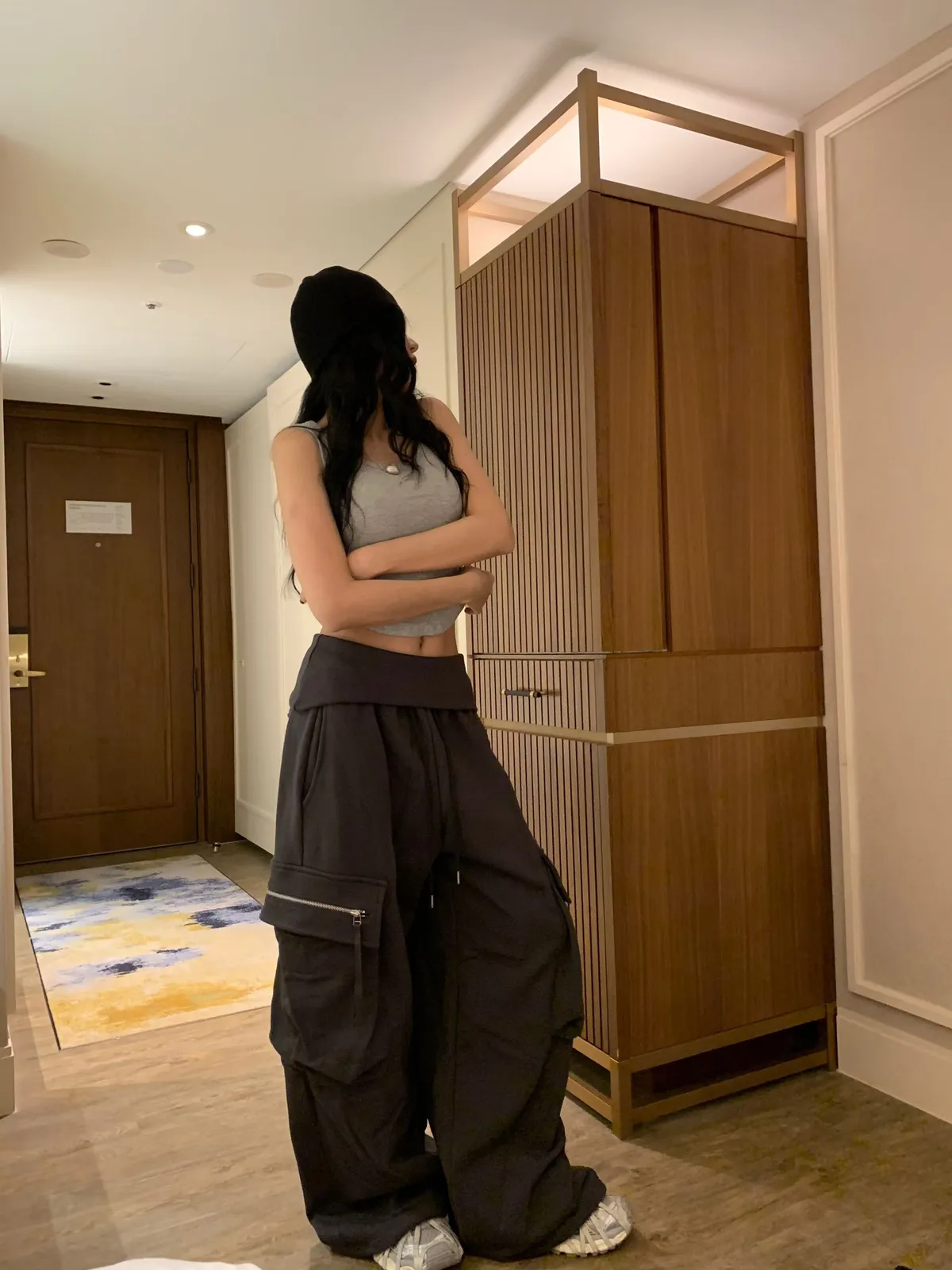 26BC02 反摺褲頭薄毛巾工裝兩穿縮腳棉長褲 6色
