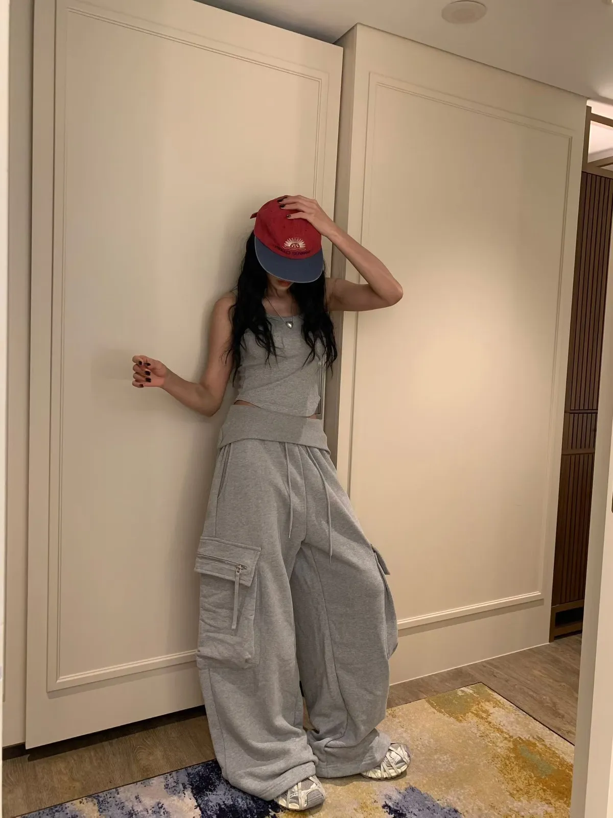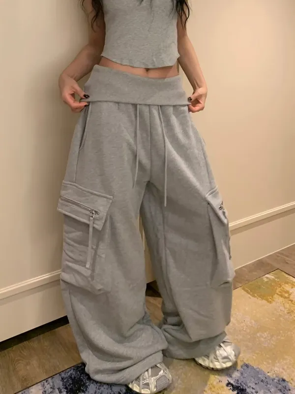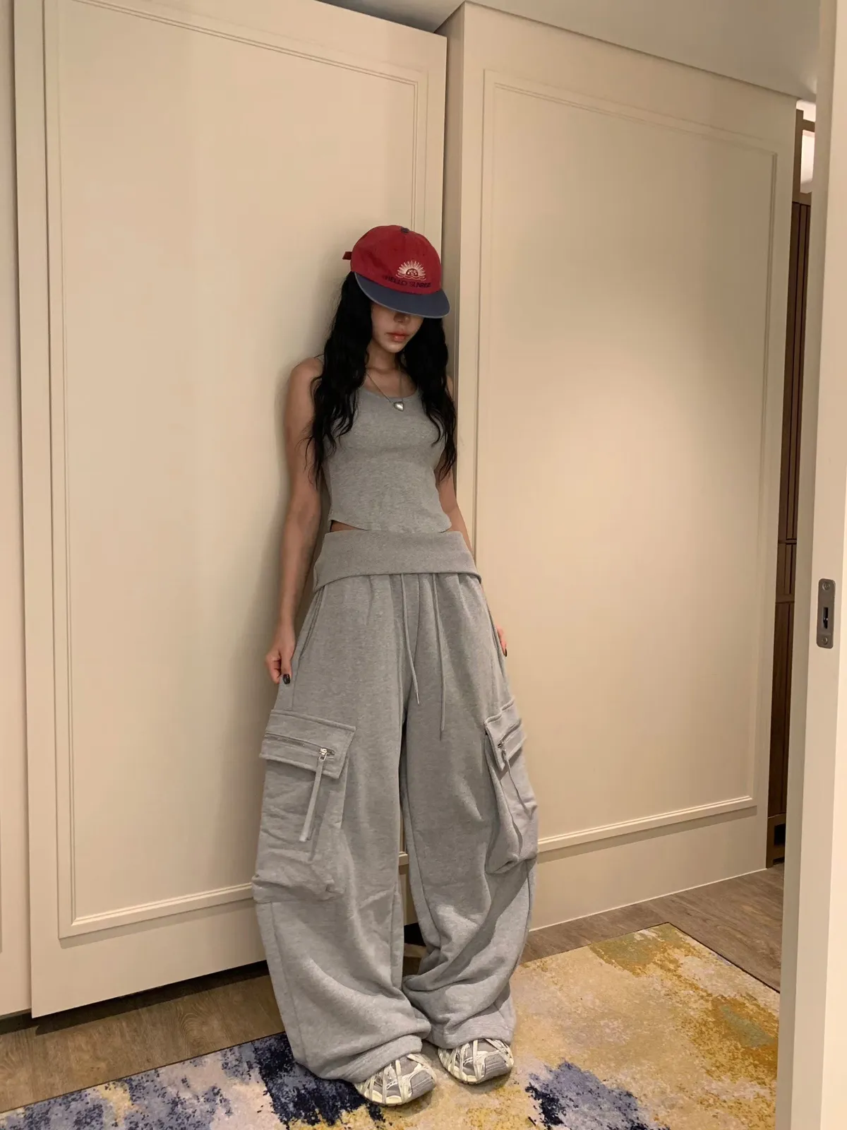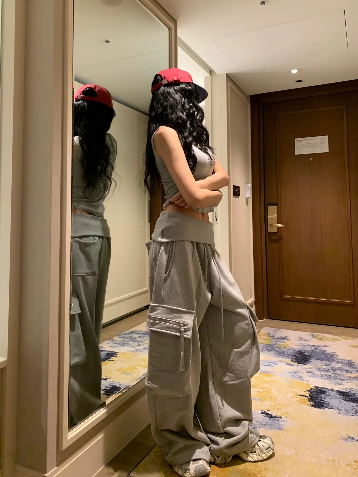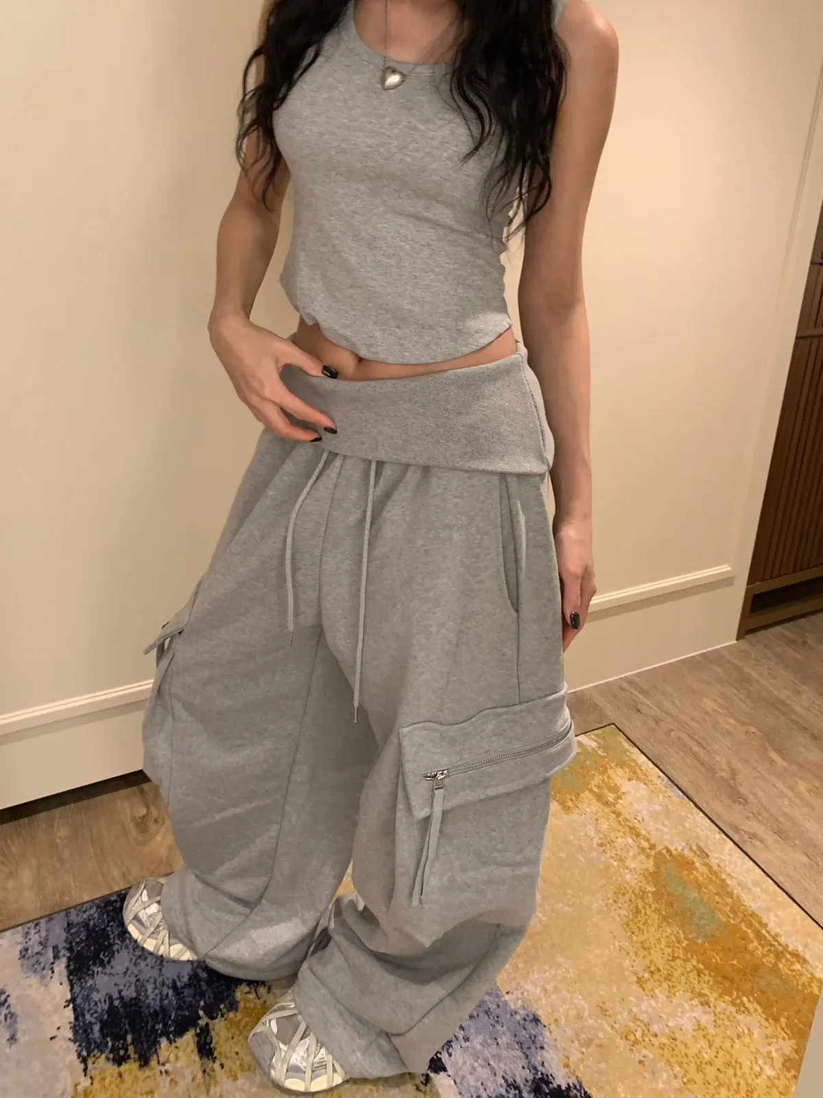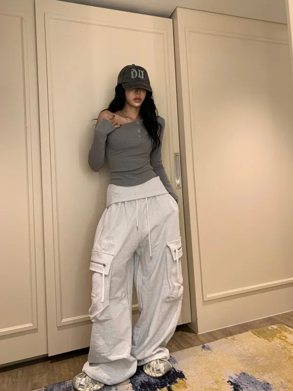 26BC02 反摺褲頭薄毛巾工裝兩穿縮腳棉長褲 6色