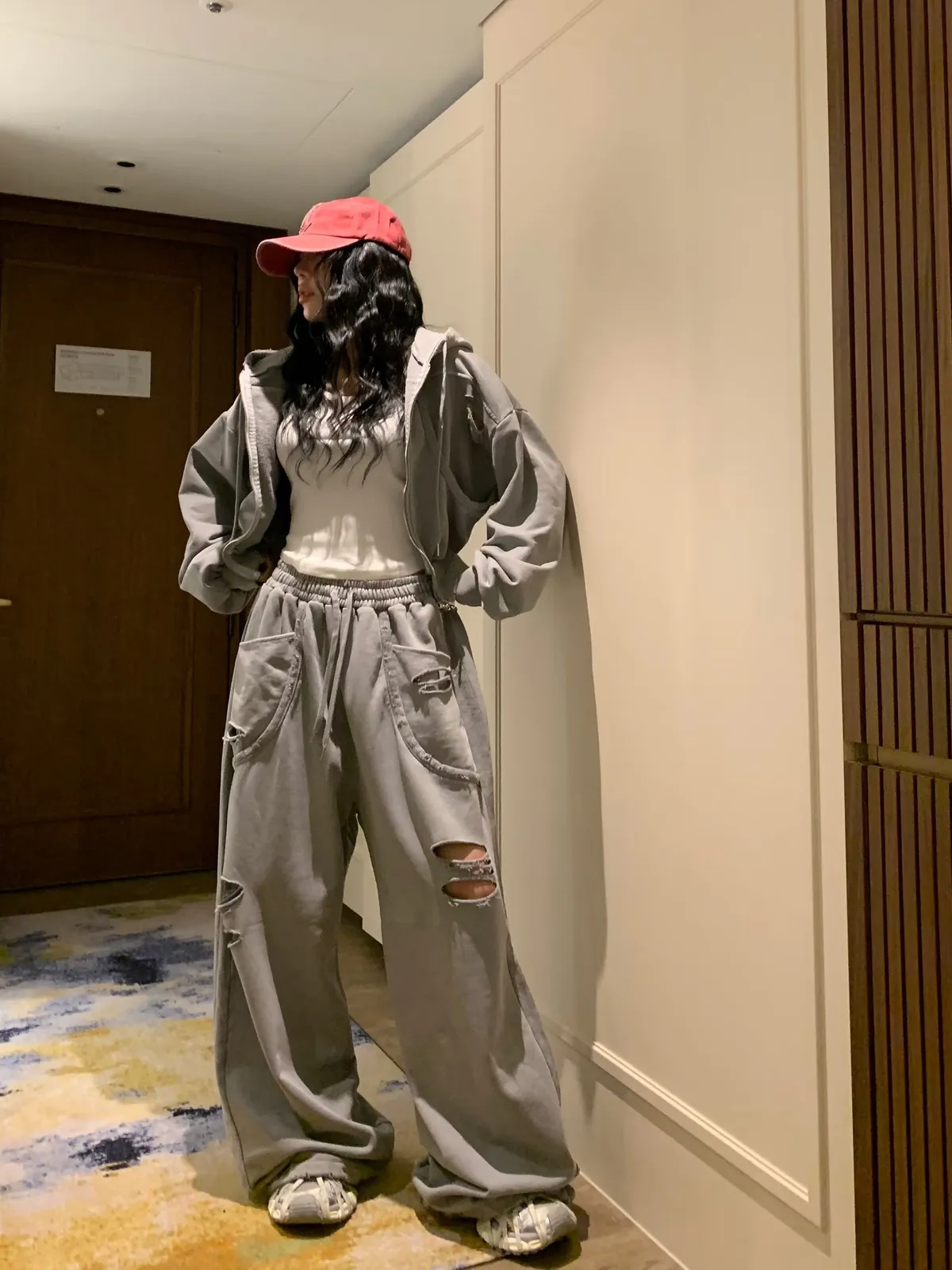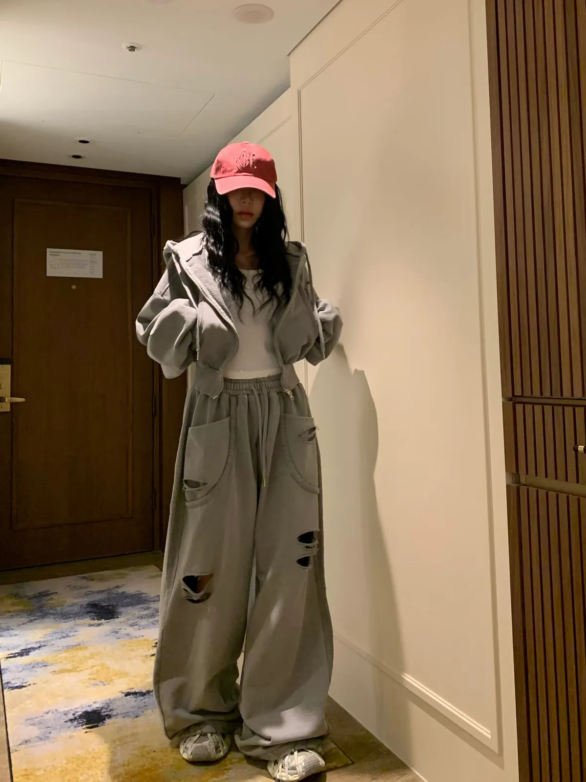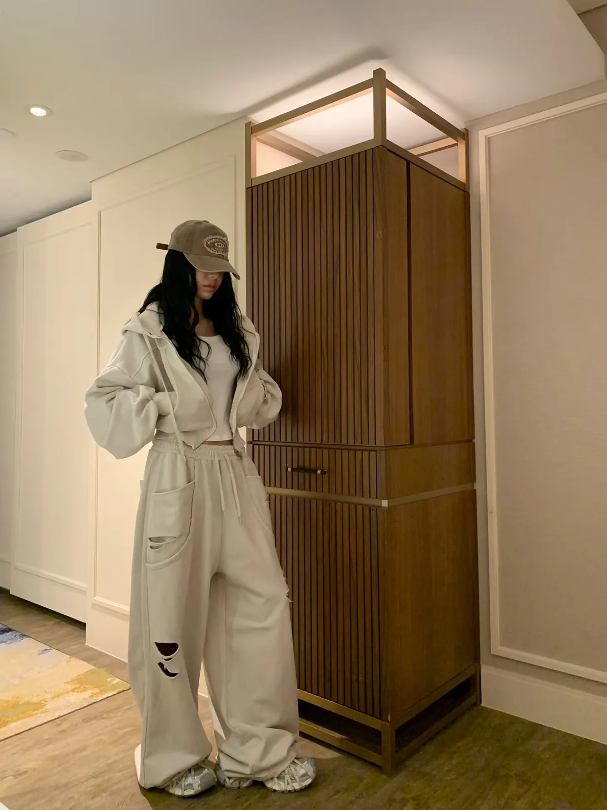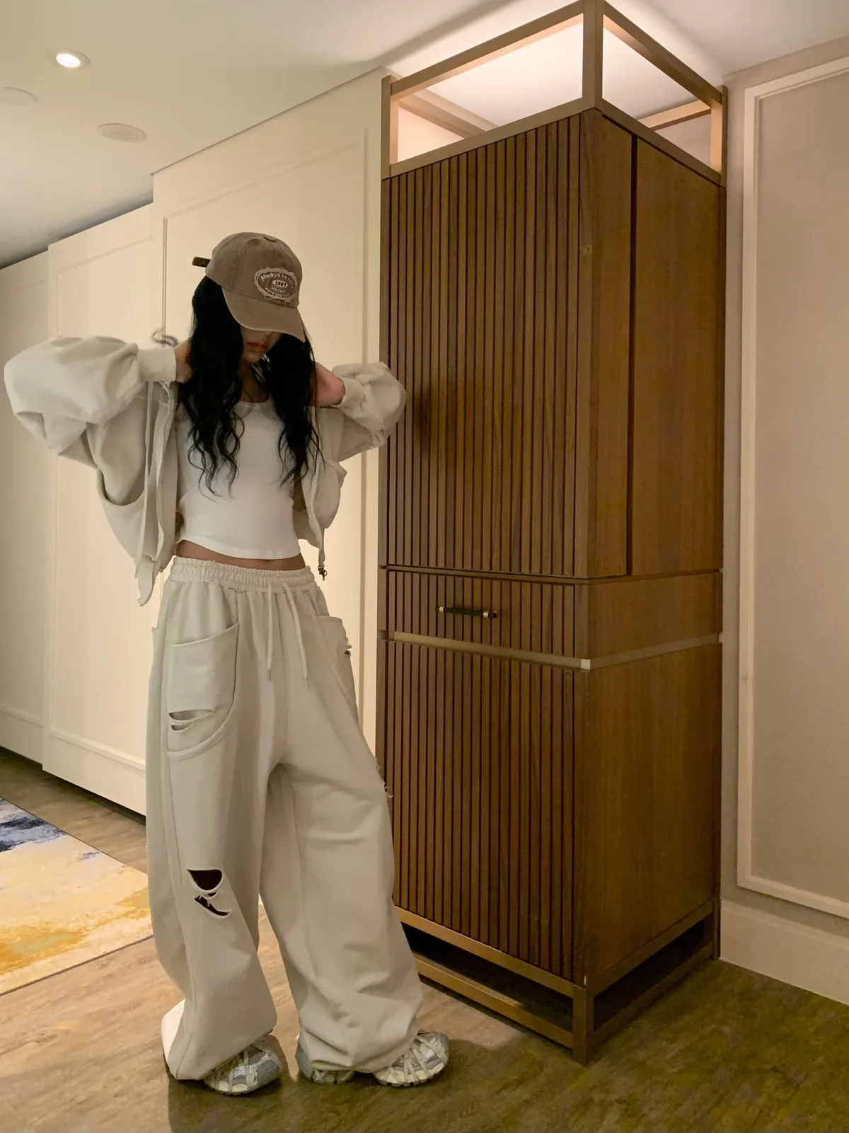 26BC04 破壞薄毛巾兩穿縮腳棉長褲 3色