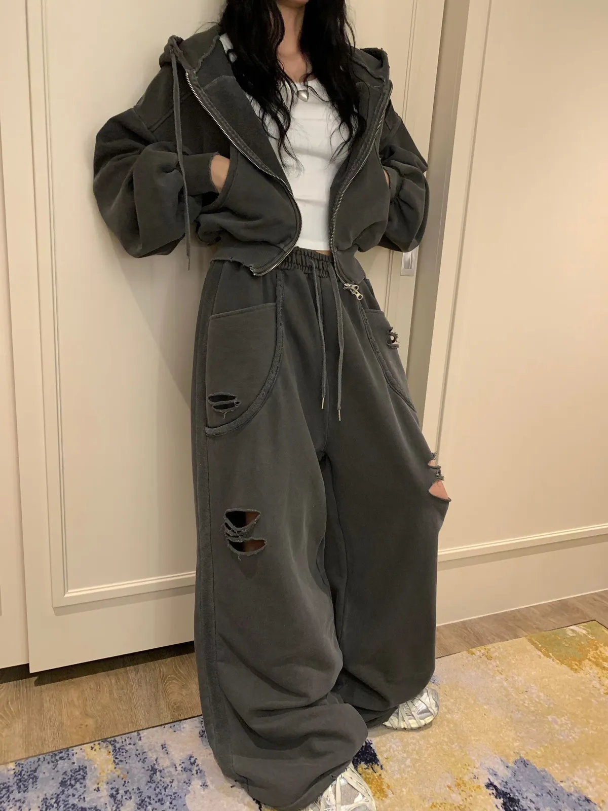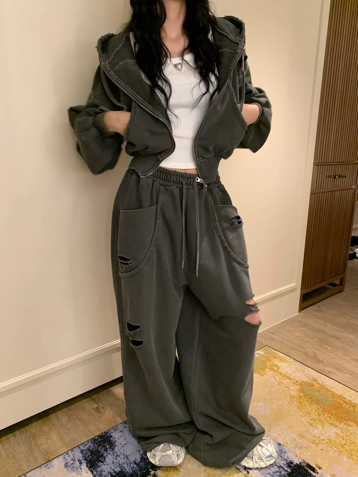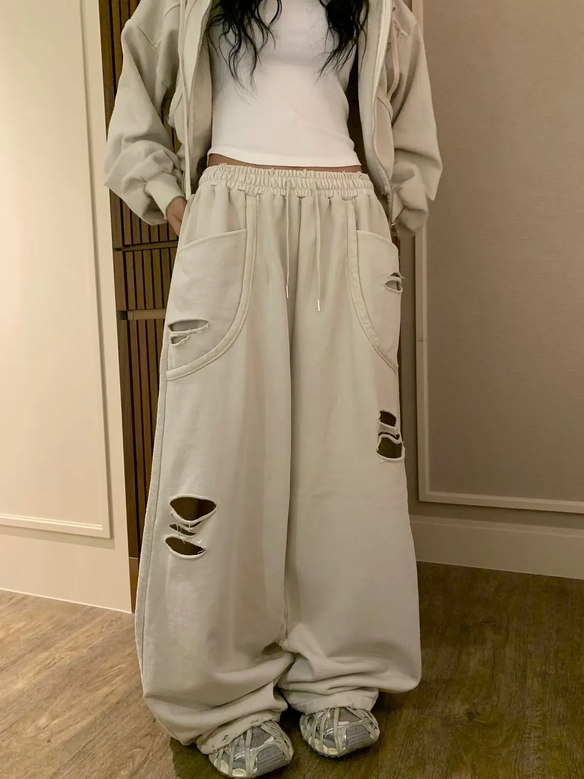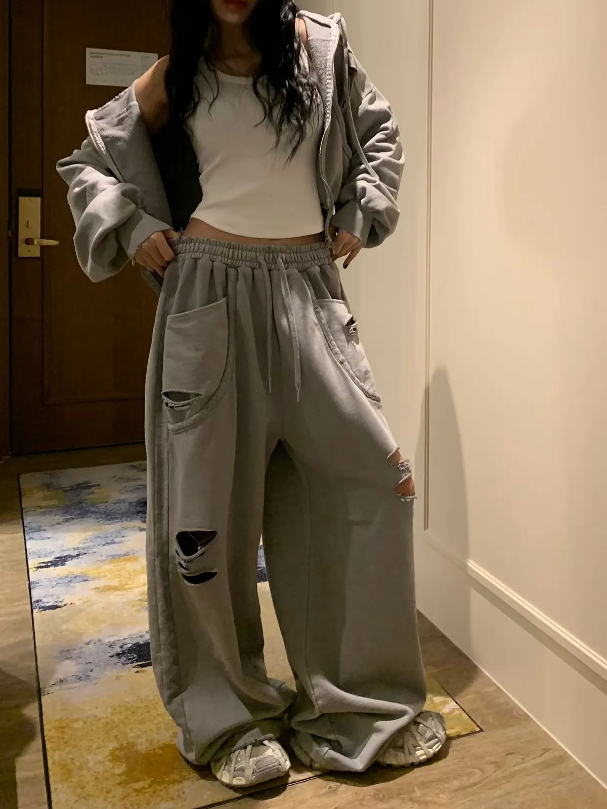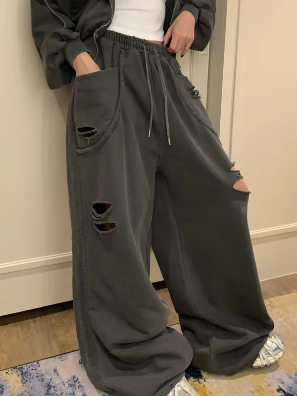 26BC04 破壞薄毛巾兩穿縮腳棉長褲 3色