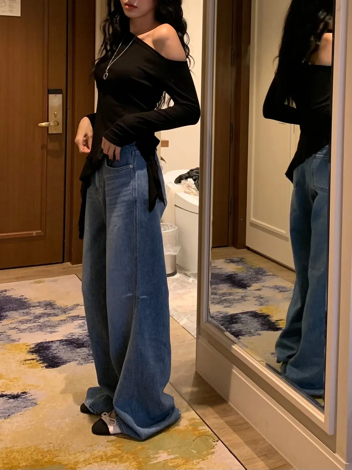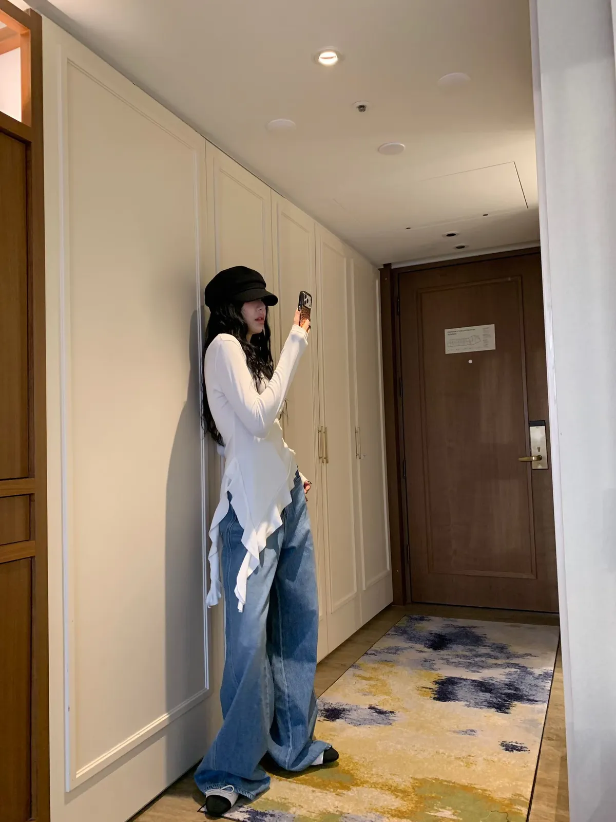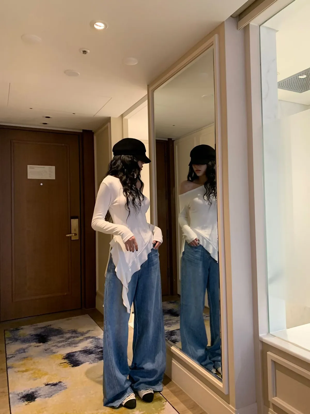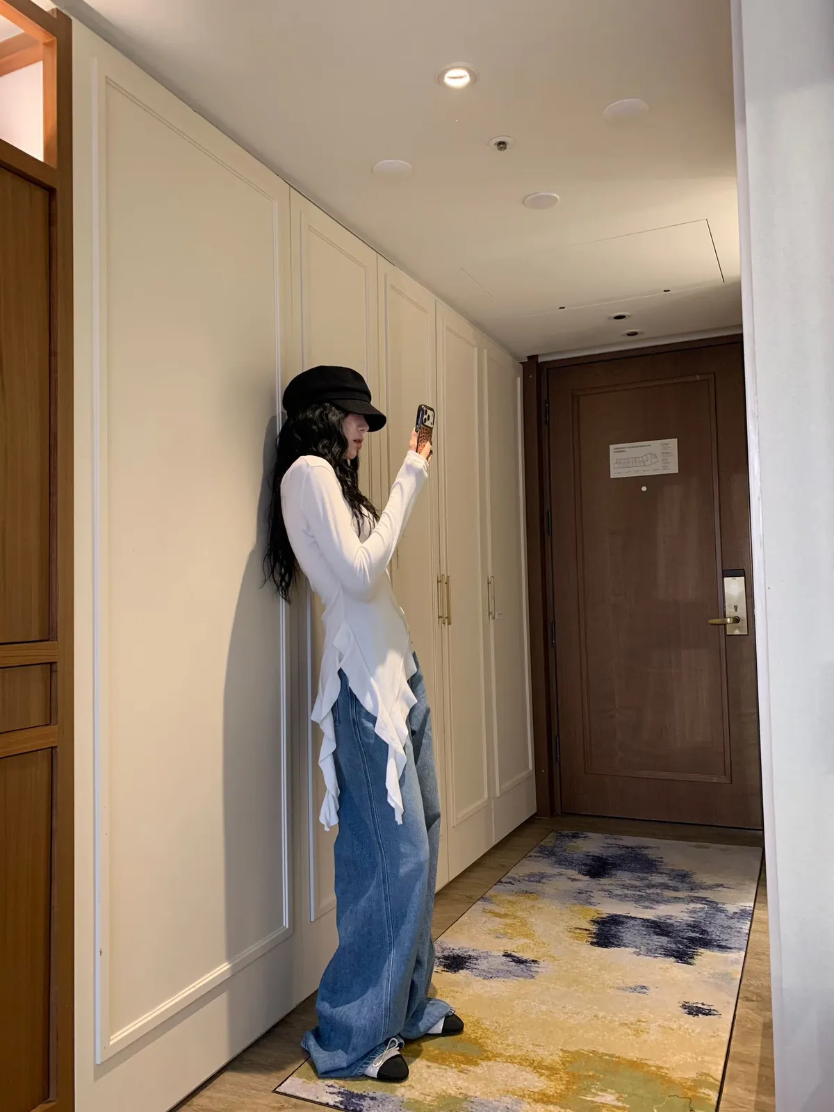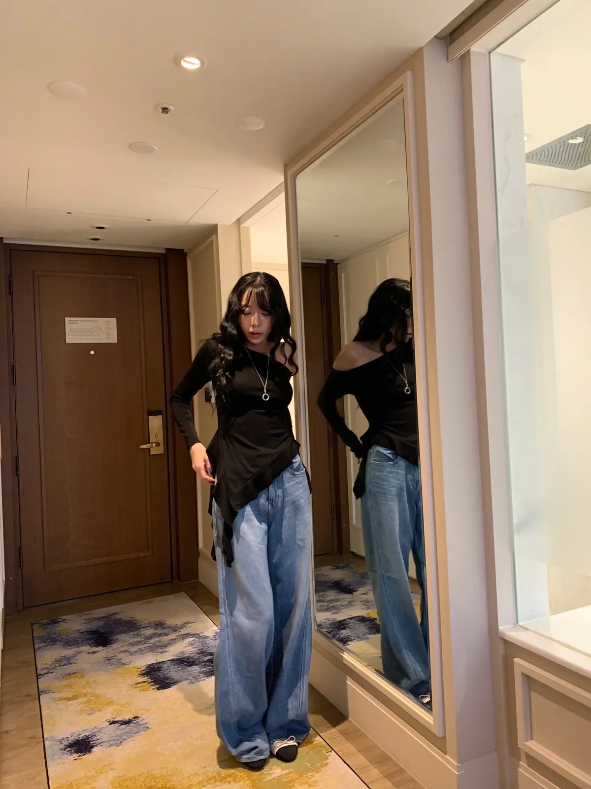 26BC07 斜肩荷葉下擺彈力造型長T 3色