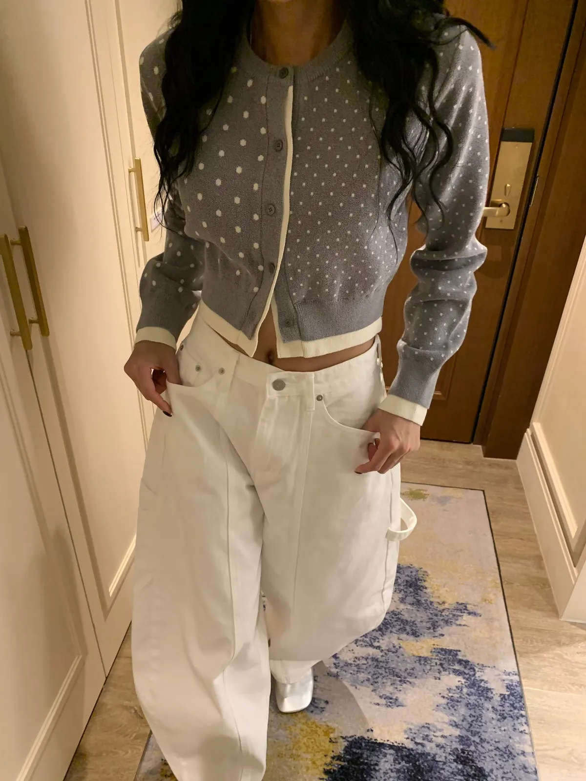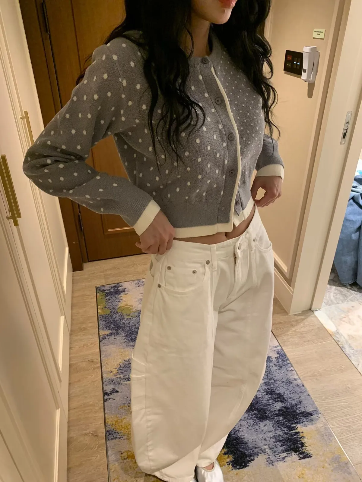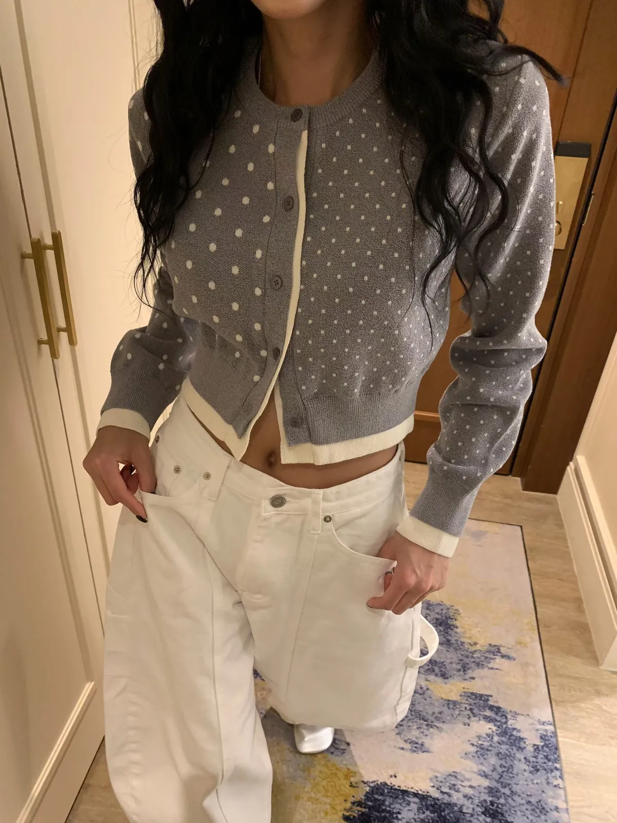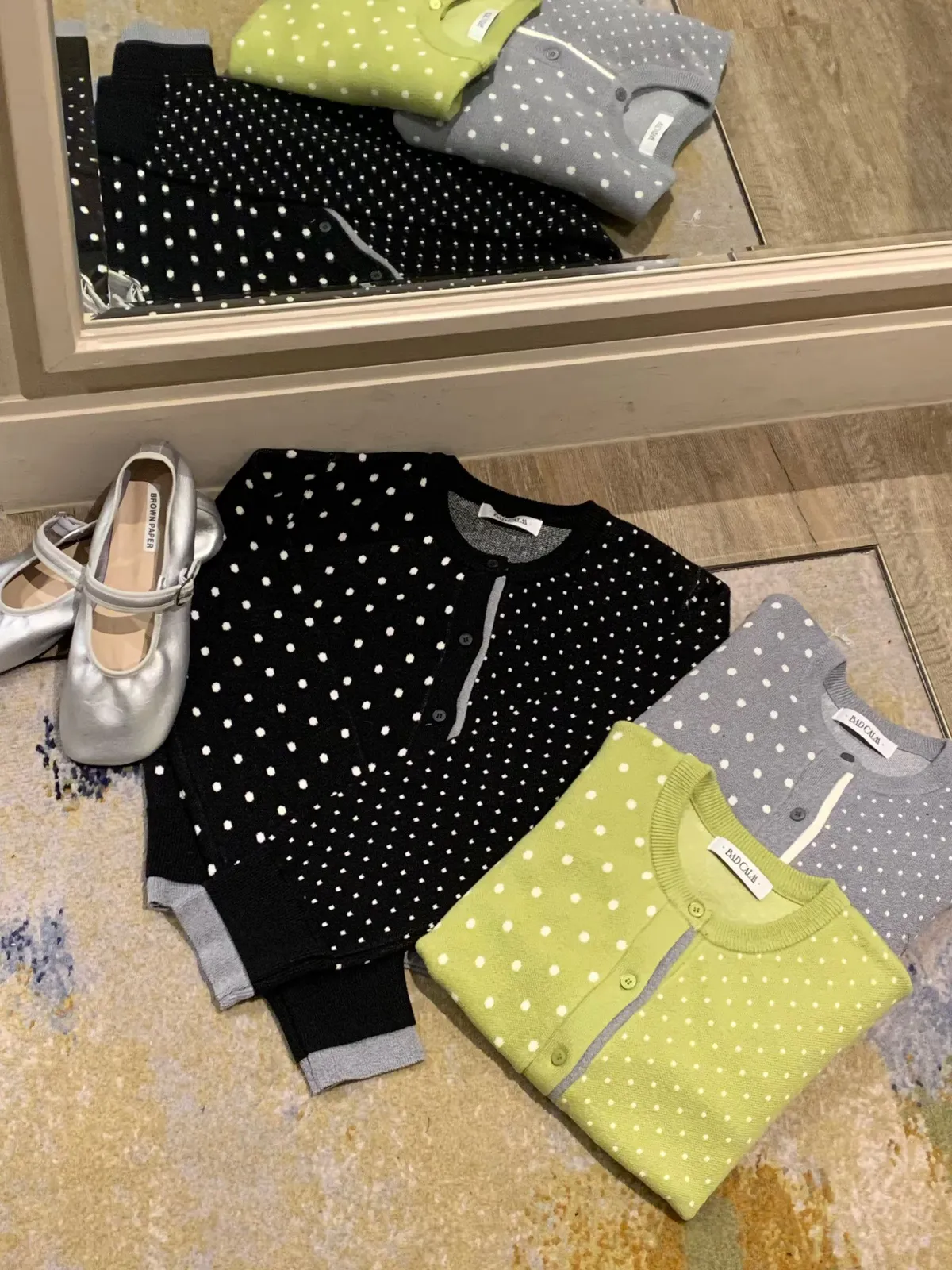 26BC13 點點針織織線排扣撞色邊短版罩衫 3色