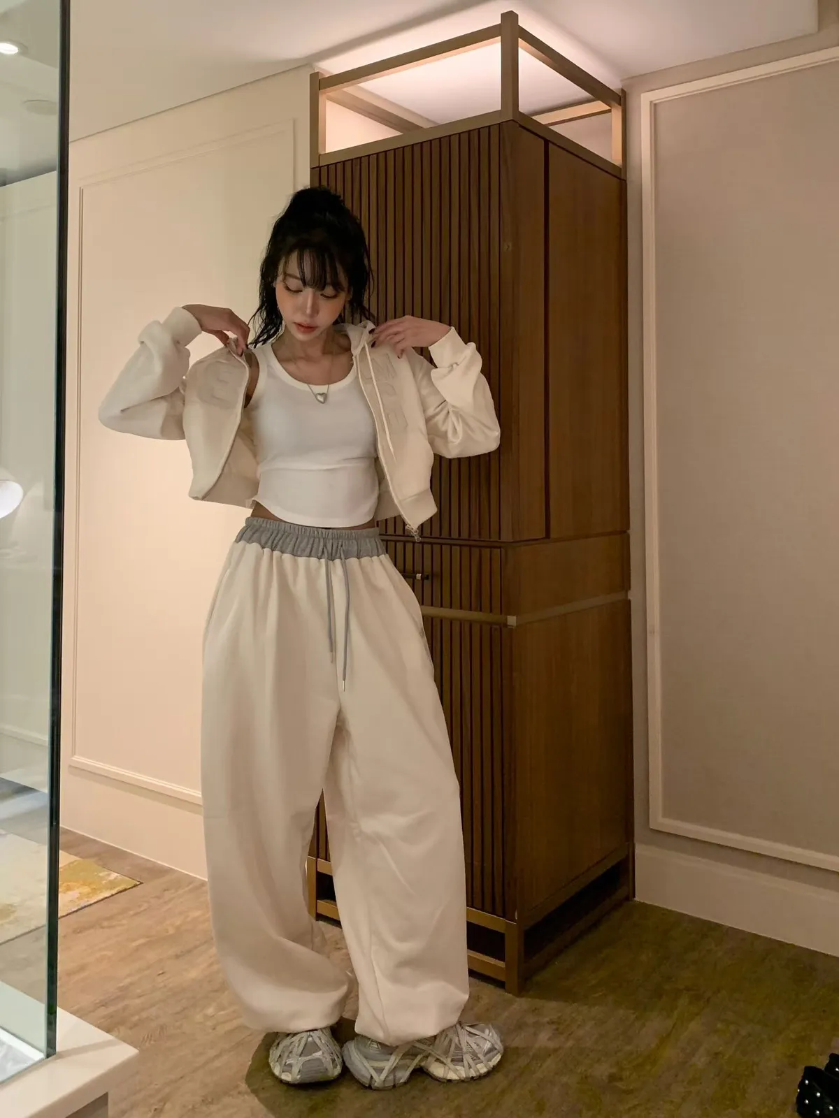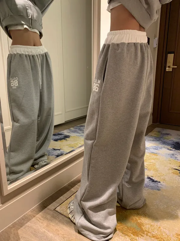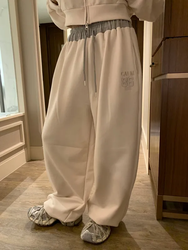 26BC18 86薄毛巾撞色褲頭兩穿縮腳棉長褲 3色