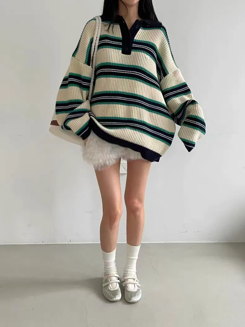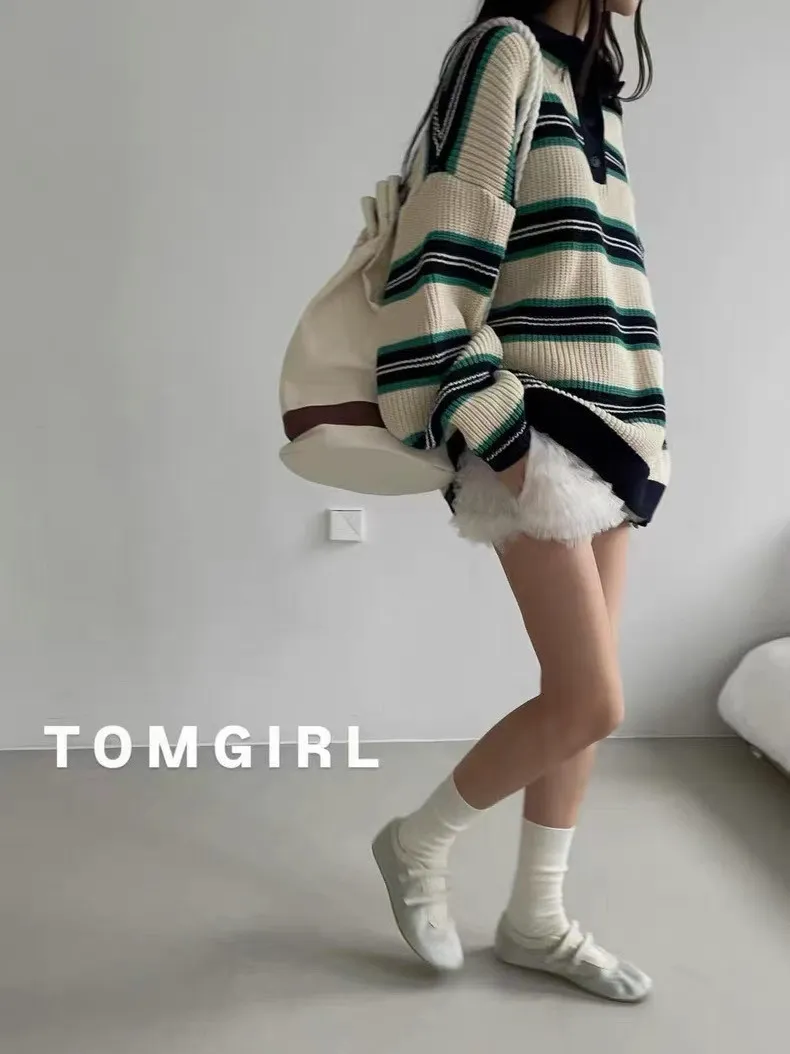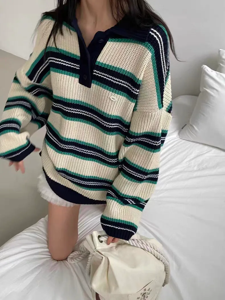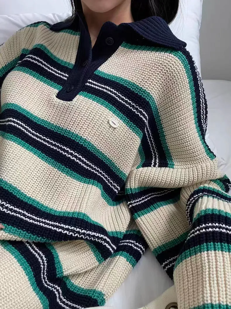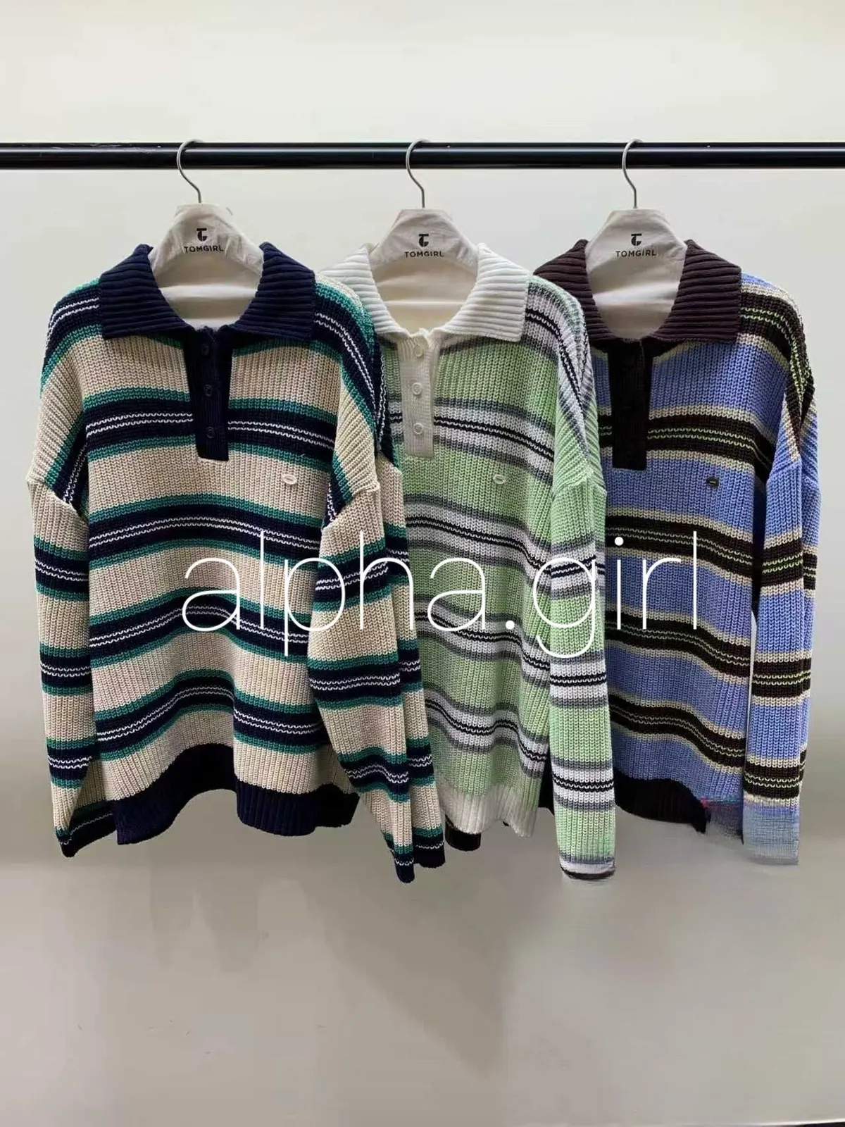 26BS03 撞色條紋V領針織POLO上衣 3色