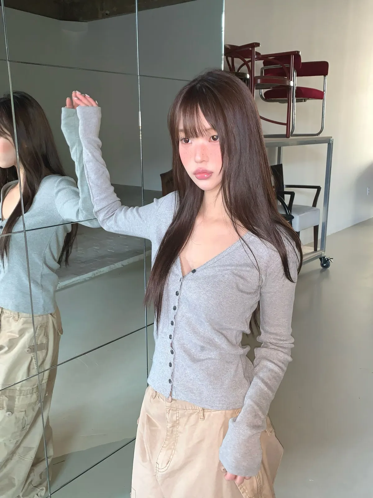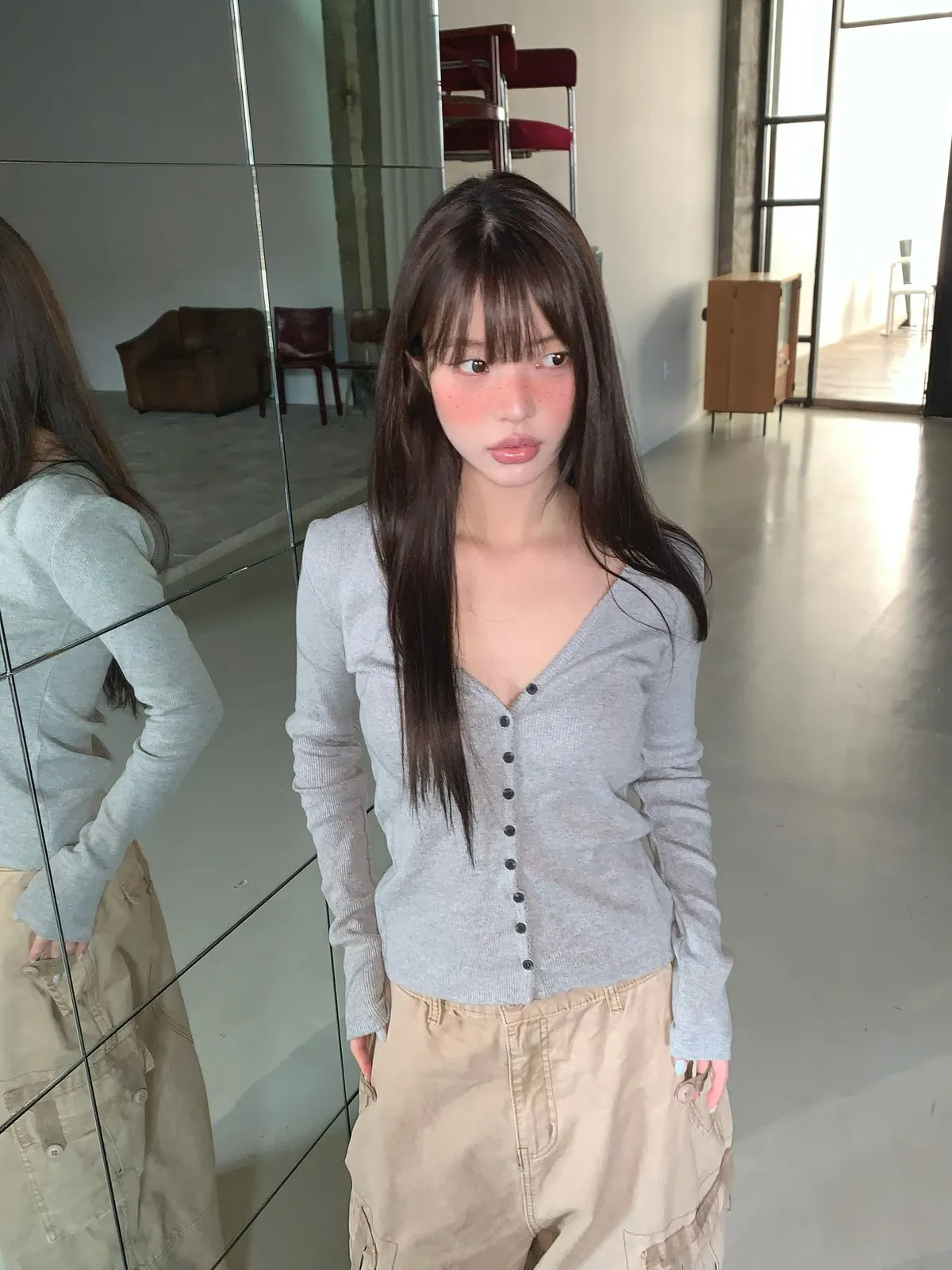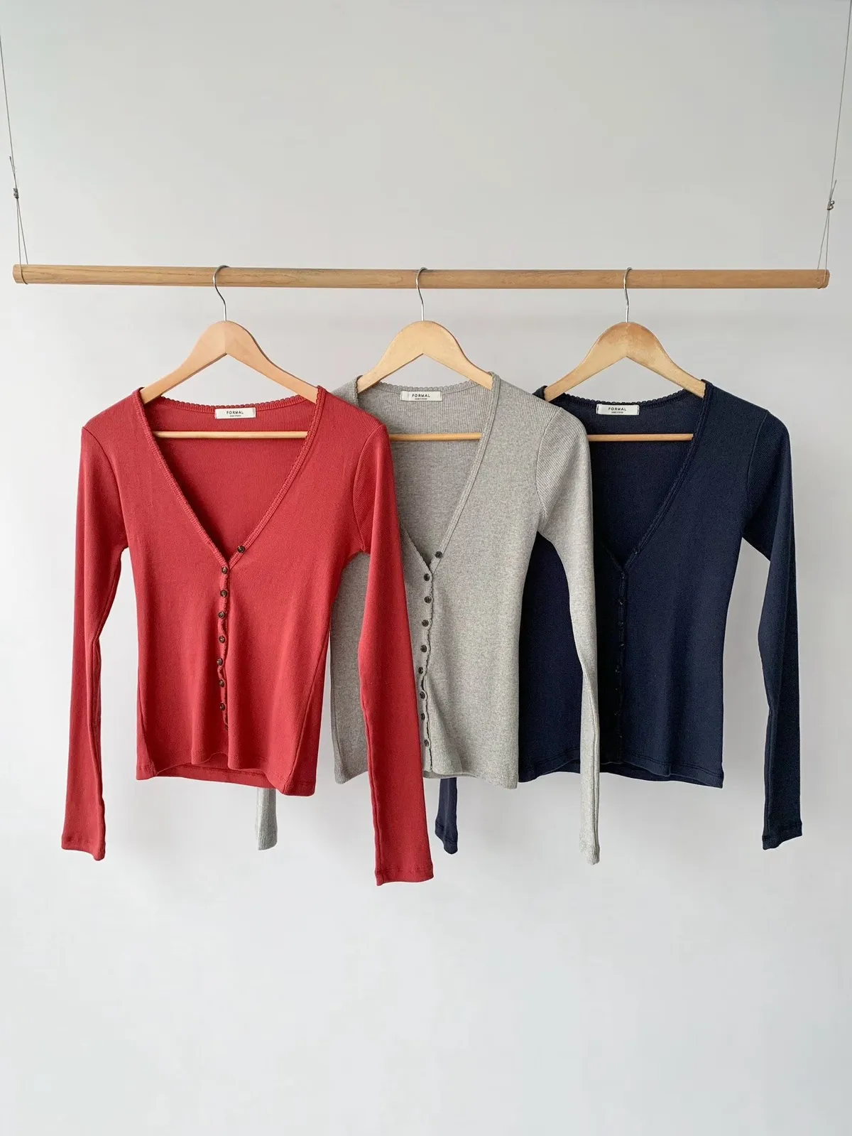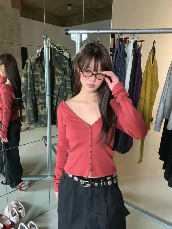 26BS09 V領排扣春款長T 3色