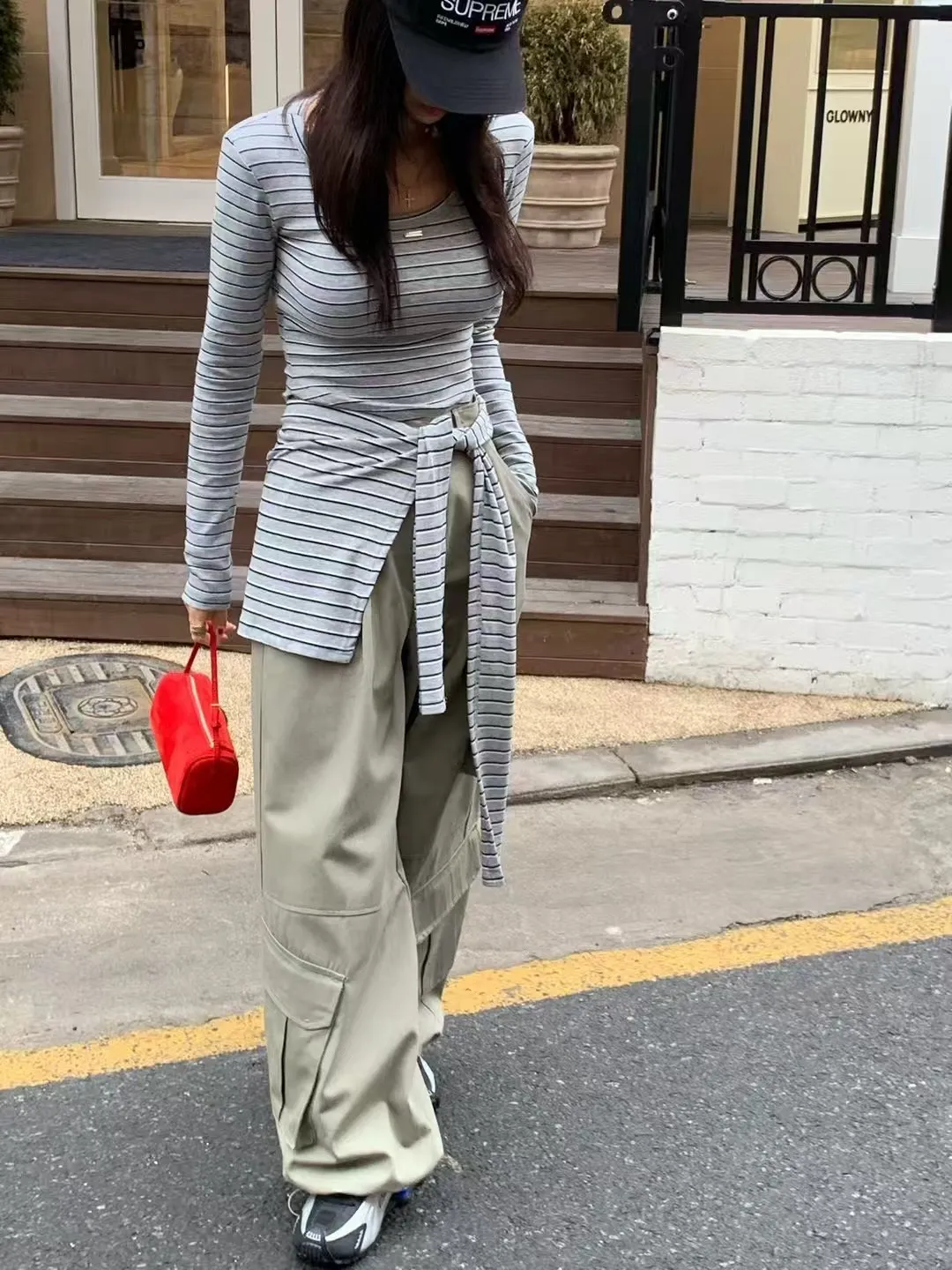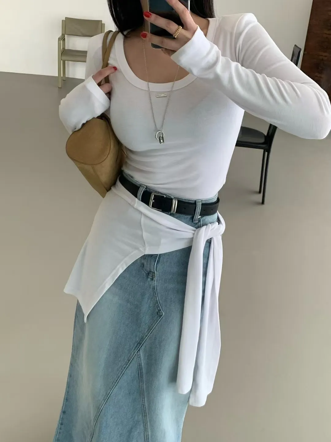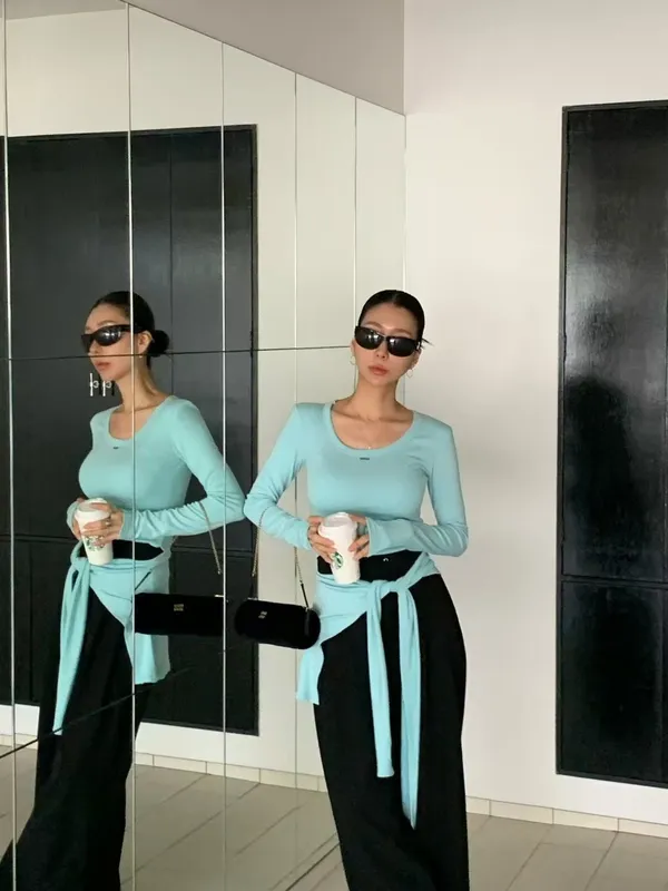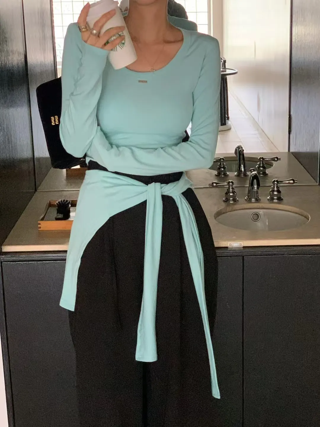 26CA05 小鐵牌Logo合身長T+綁帶披肩 set 4色