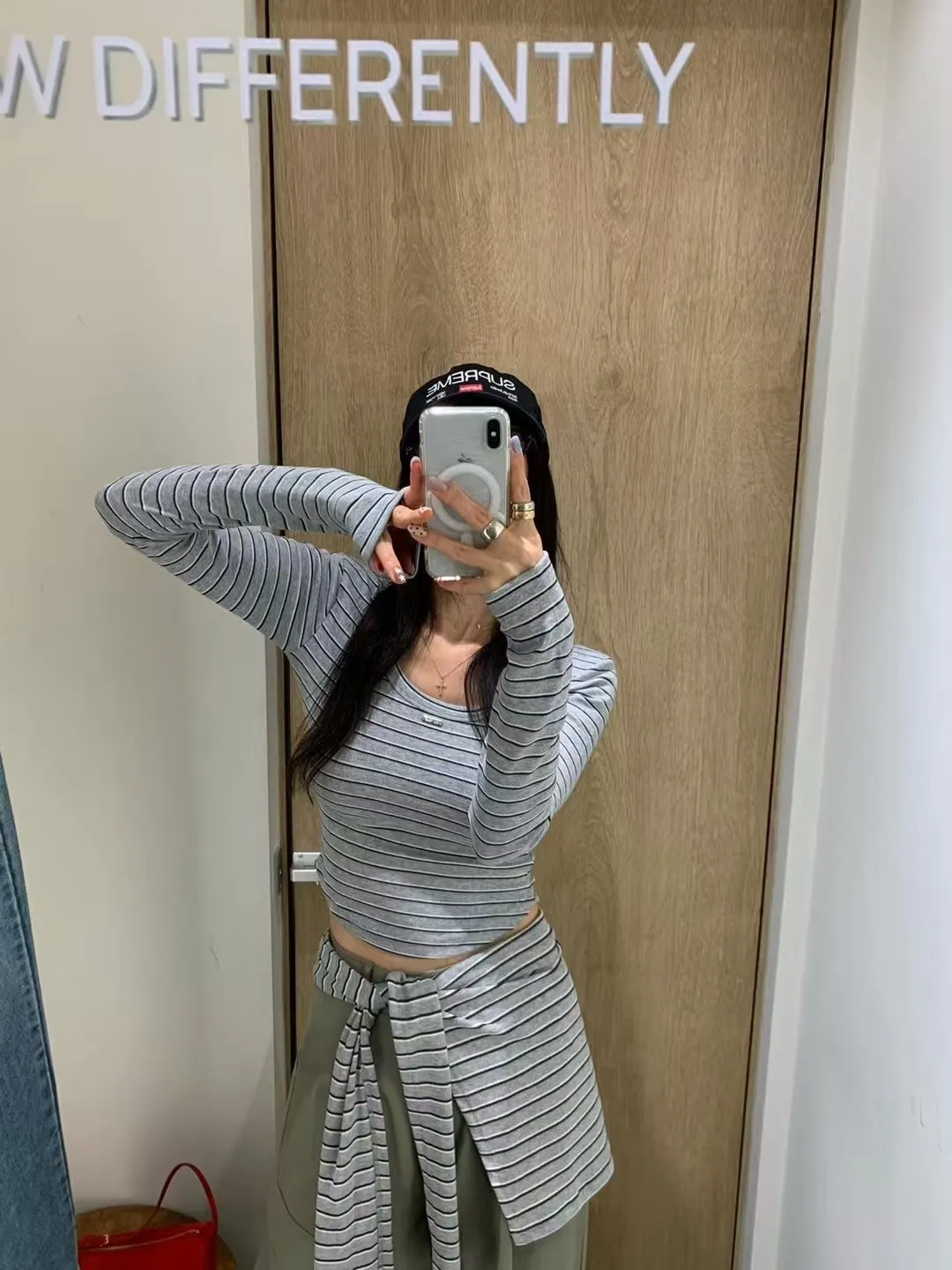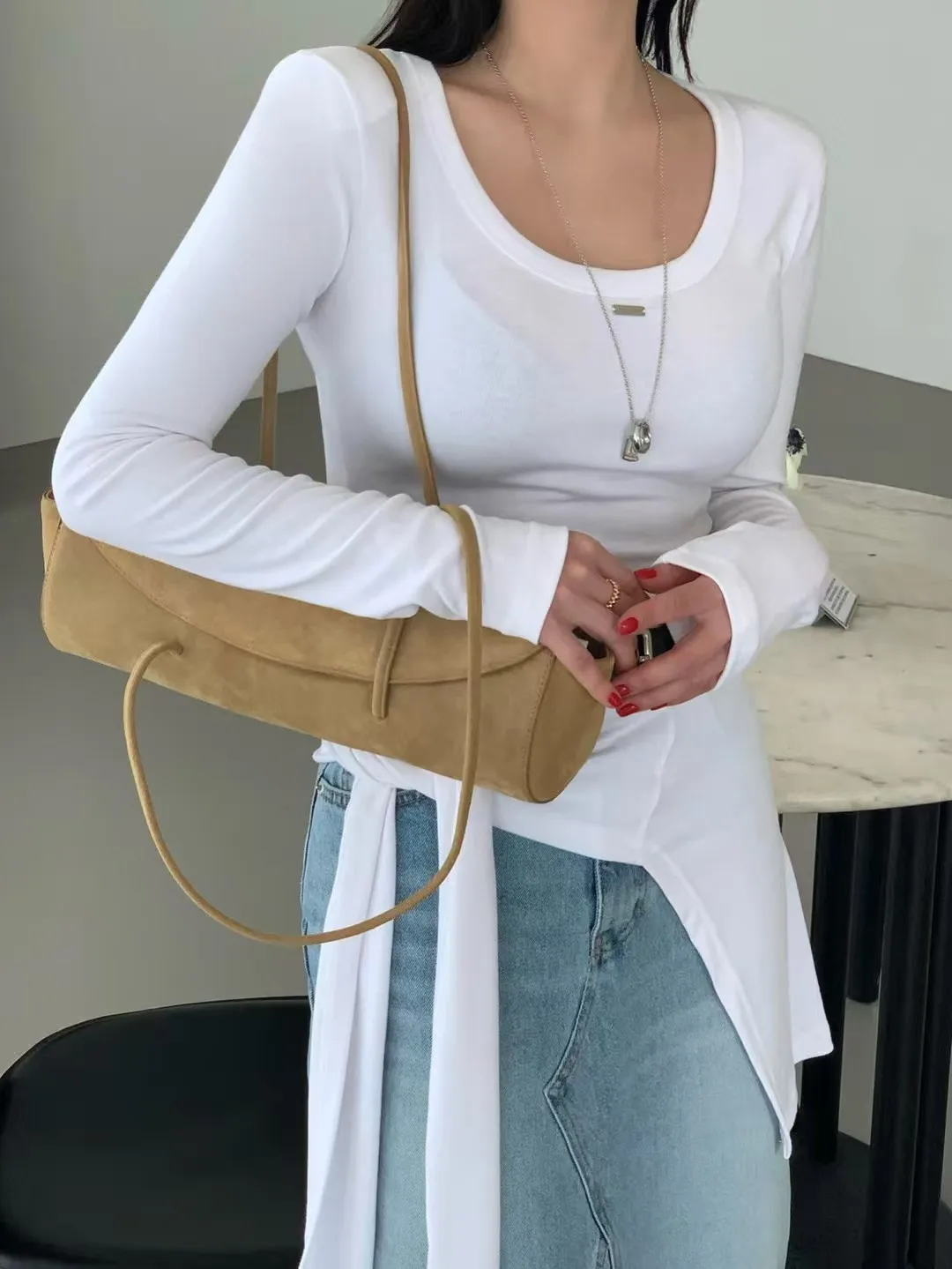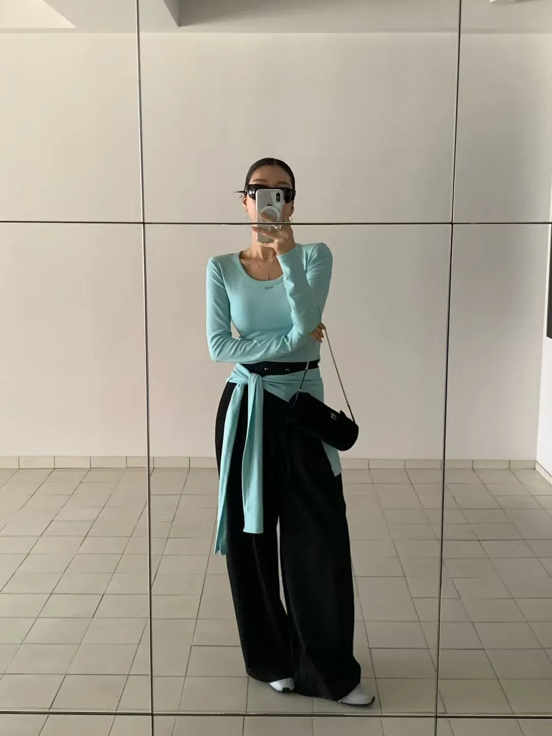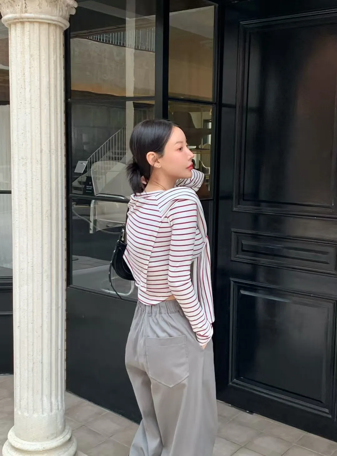 26CA05 小鐵牌Logo合身長T+綁帶披肩 set 4色