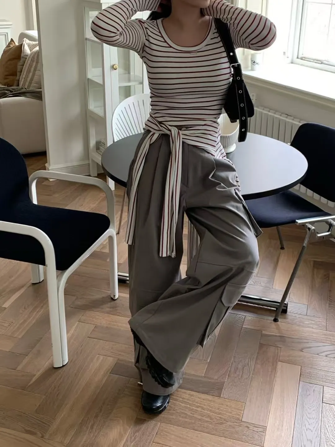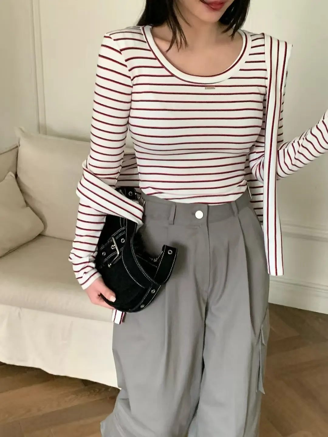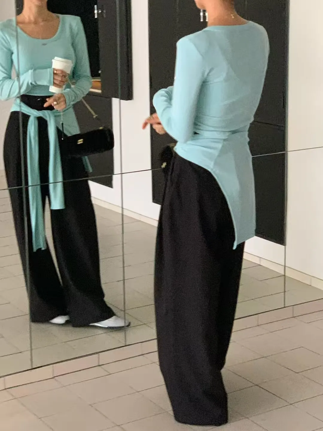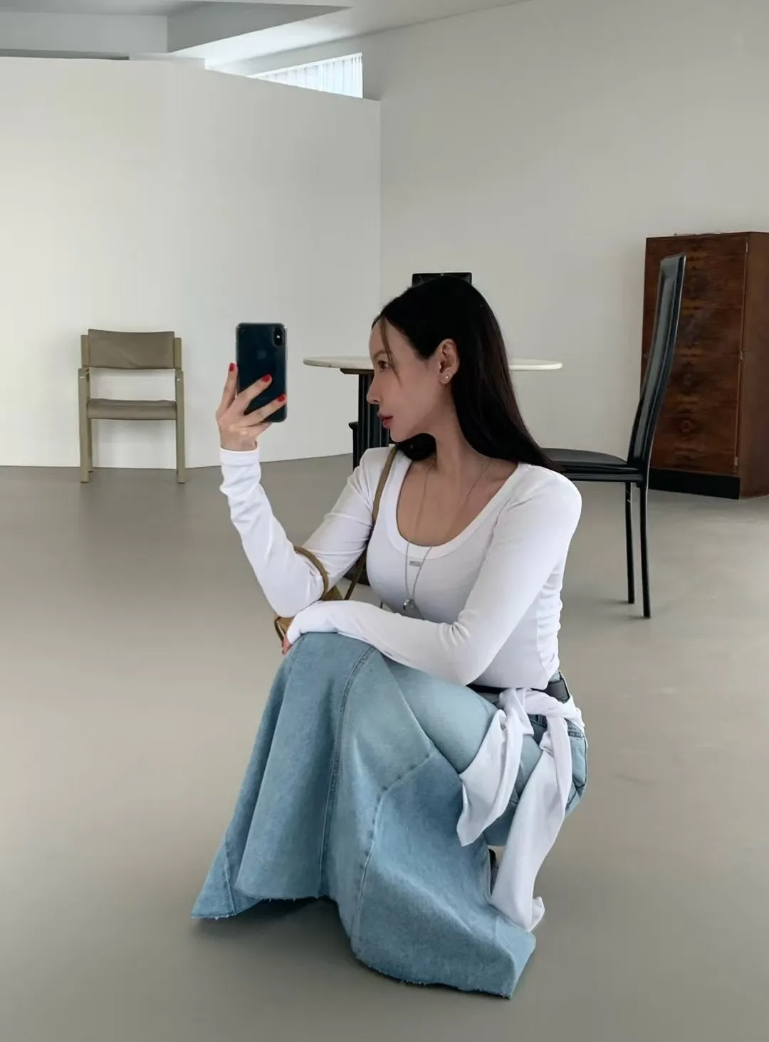26CA05 小鐵牌Logo合身長T+綁帶披肩 set 4色